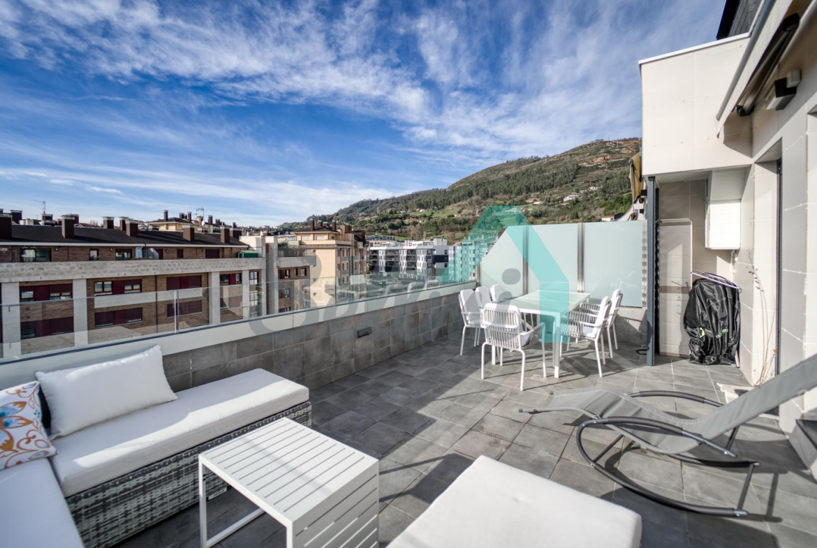 Ático en alquiler situado en Prados de la Fuente, a pocos minutos del centro de Oviedo. Se encuentra en la sexta planta de un edificio construido en 2024, sin barreras arquitectónicas y que cuenta con ascensor, pista de pádel, zona infantil y zona ajardinada.
