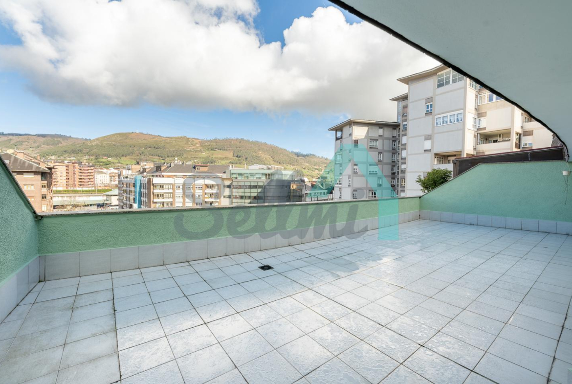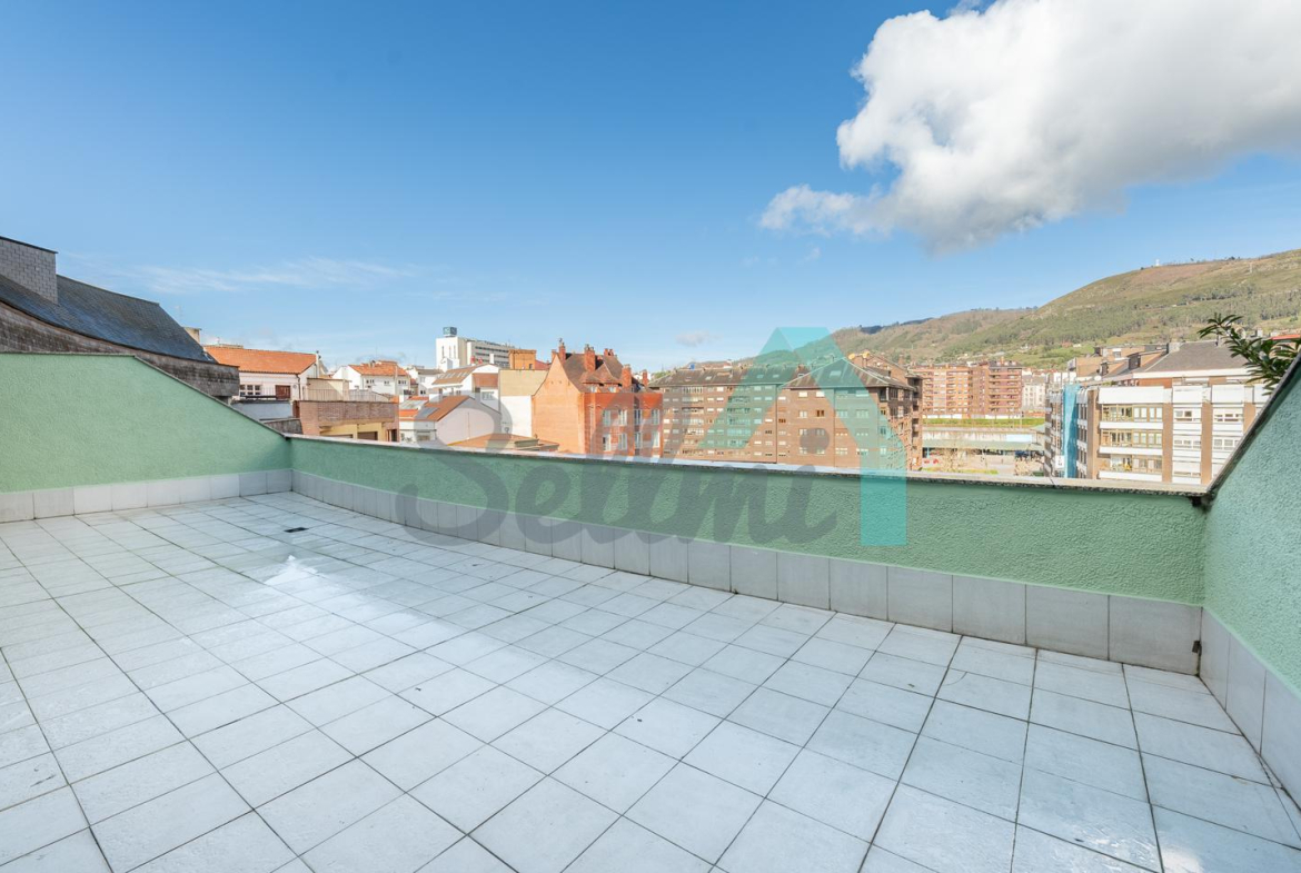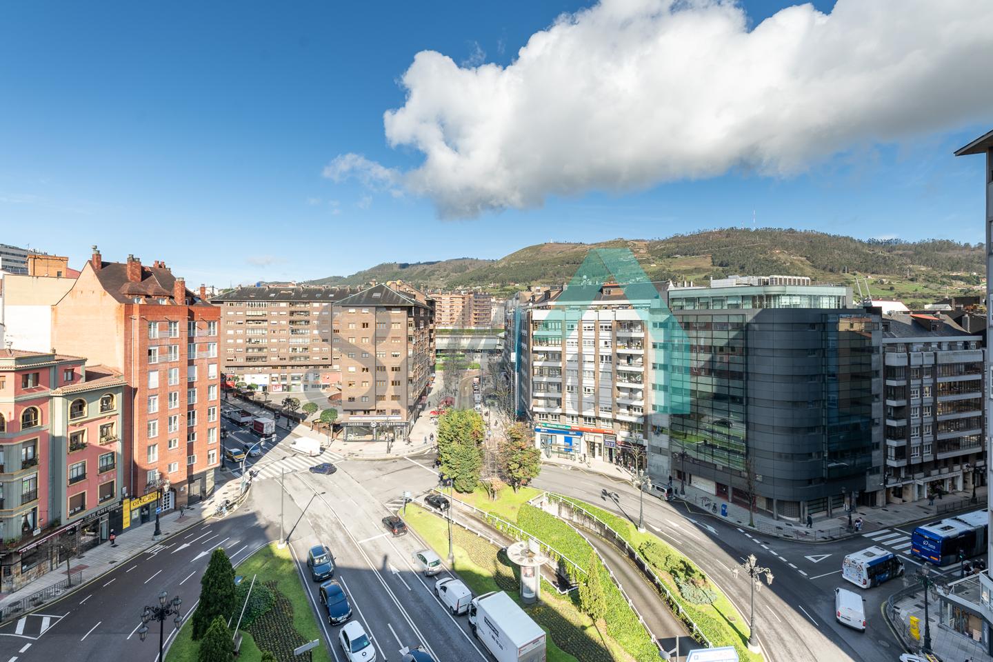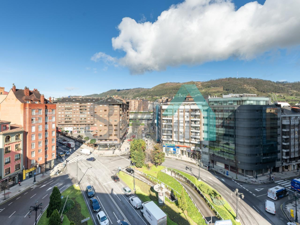 Ático en alquiler situado en la Plaza Primo de Rivera, Oviedo, cerca del centro de la ciudad y a un paso de las estaciones de tren y autobuses. Se encuentra en la octava planta de un edificio construido en 1978, sin barreras arquitectónicas y que cuenta con portero físico, cuatro ascensores y servicios centrales.