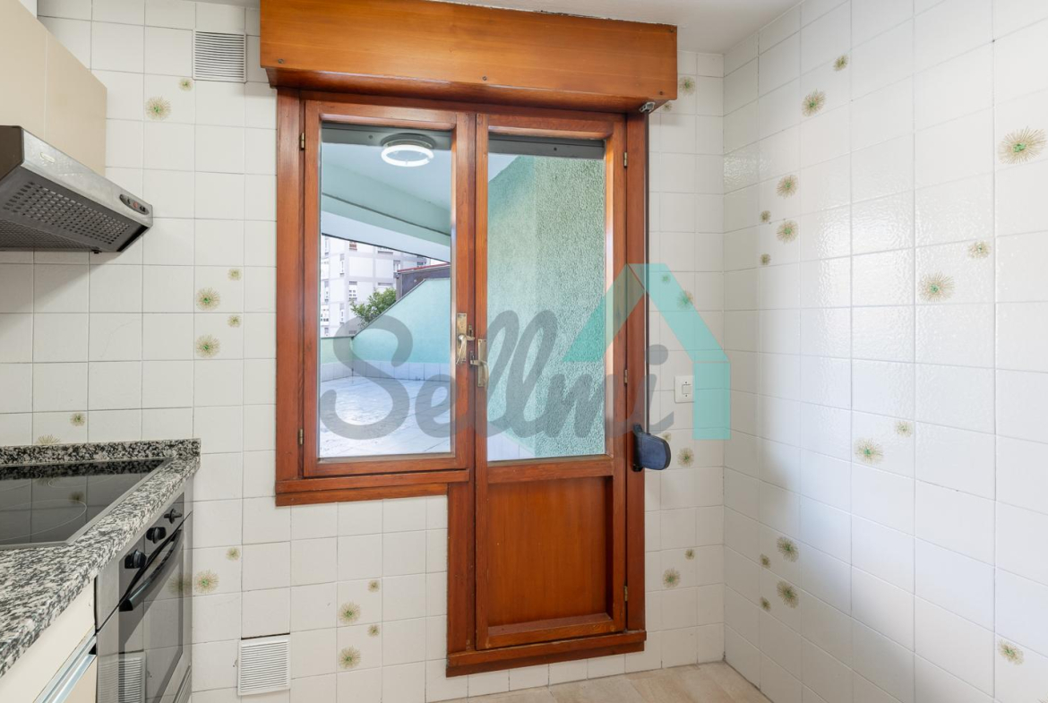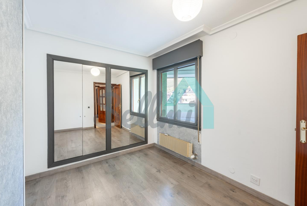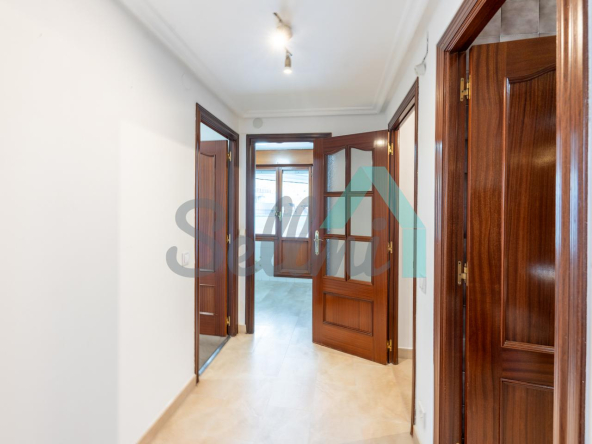 Dispone de calefacción central con contador individual, armarios empotrados, ventanas de madera, suelos de tarima y gres, puerta de seguridad, etc.