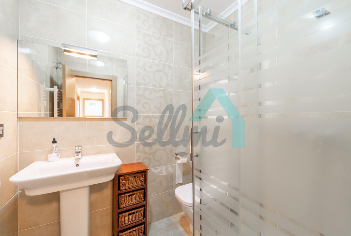 La vivienda, que se encuentra en perfecto estado, tiene una superficie construida de 73 m² distribuidos en hall de entrada, salón comedor con cocina amueblada y equipada, terraza, dos habitaciones y dos baños completos. Plaza de garaje incluida en el precio.