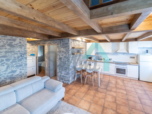 La vivienda, que ha sido reformada y se encuentra en perfecto estado, tiene una superficie construida de 120 m² distribuidos en dos plantas. Cuenta con amplio salón comedor con cocina amueblada y equipada, tres habitaciones y un baño completo.