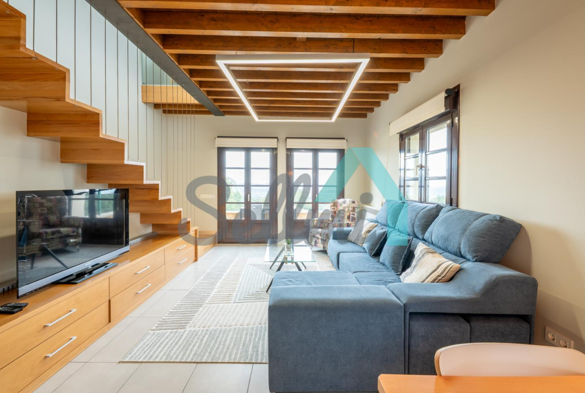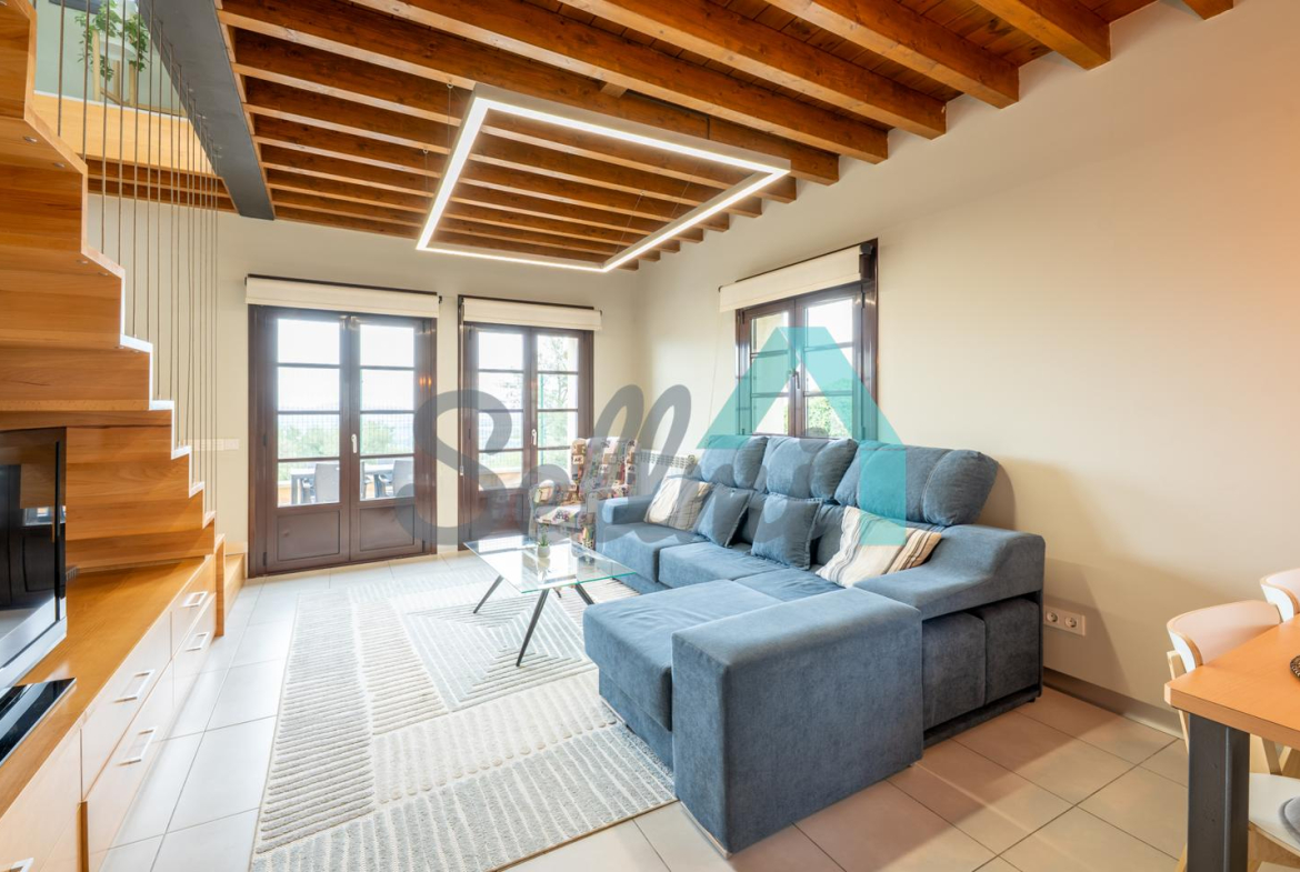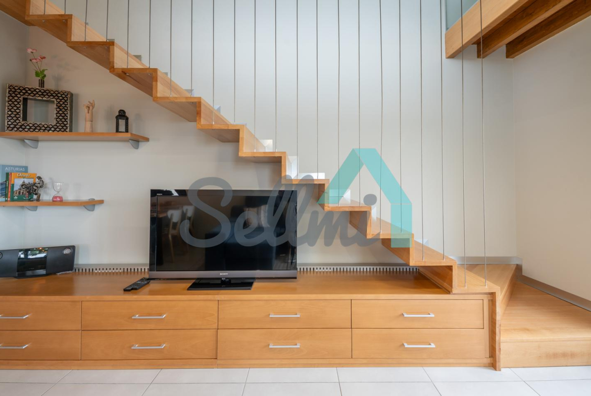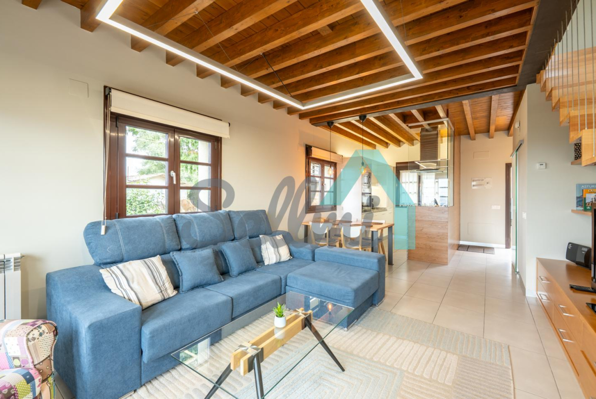 Planta principal: salón comedor, cocina amueblada y equipada y un aseo. Desde esta planta se accede a la terraza orientada al noroeste y con vistas a Oviedo.