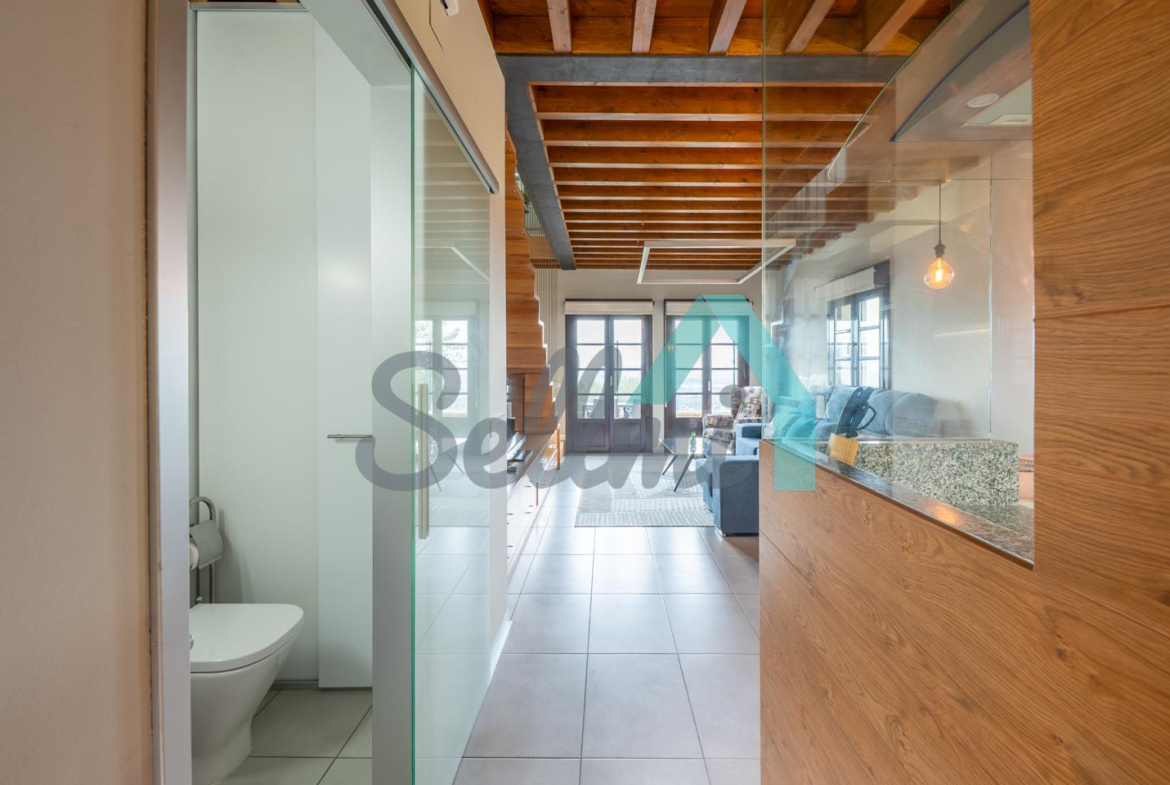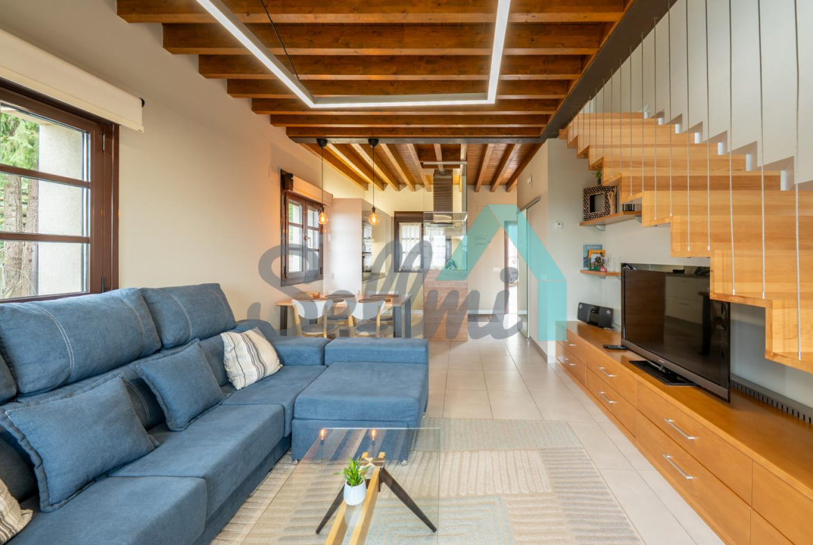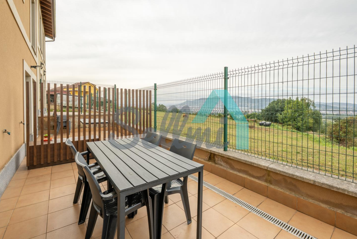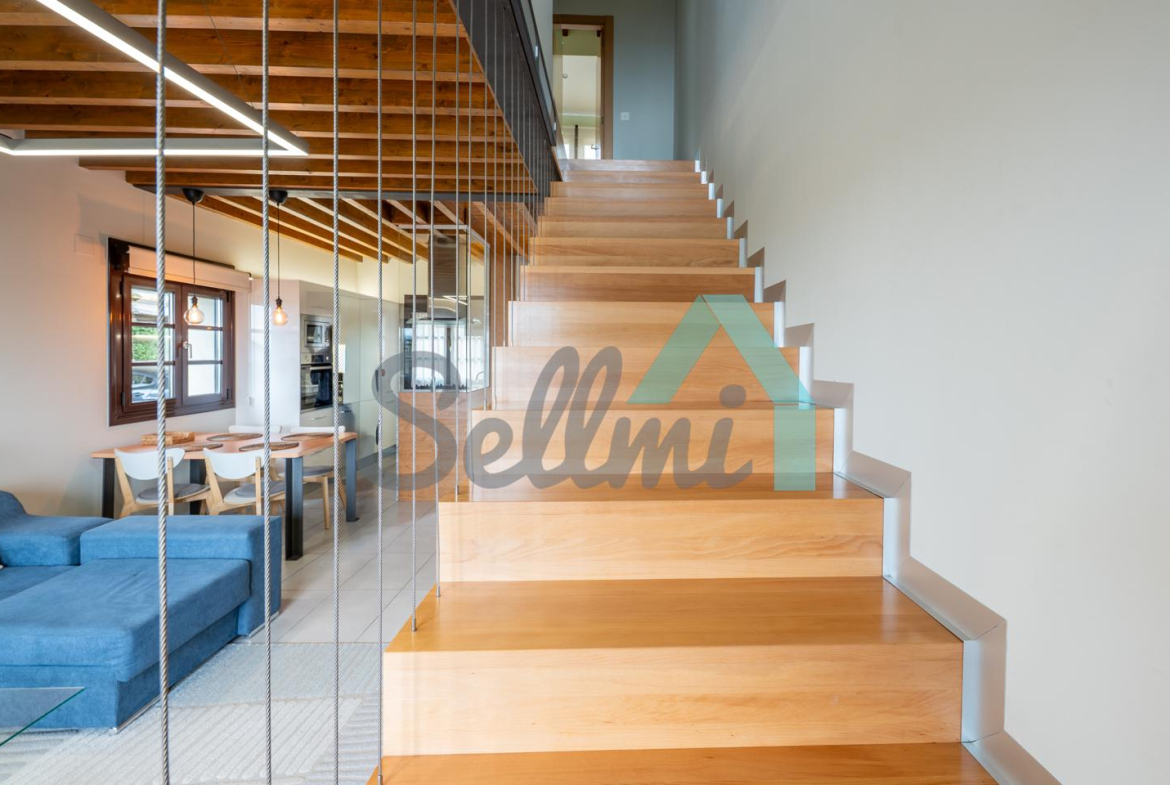 Planta principal: salón comedor, cocina amueblada y equipada y un aseo. Desde esta planta se accede a la terraza orientada al noroeste y con vistas a Oviedo.