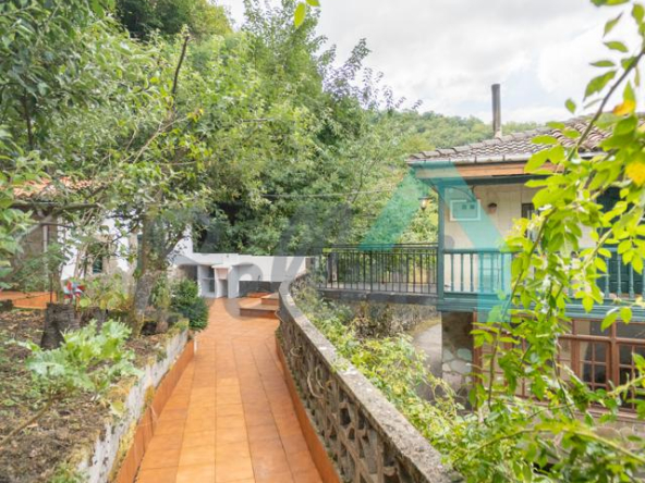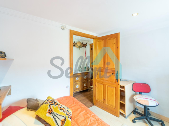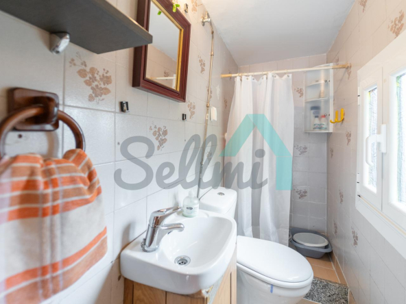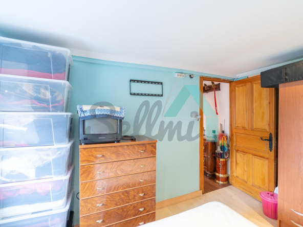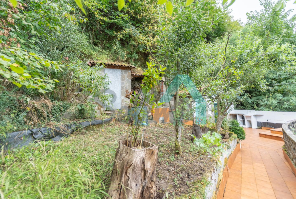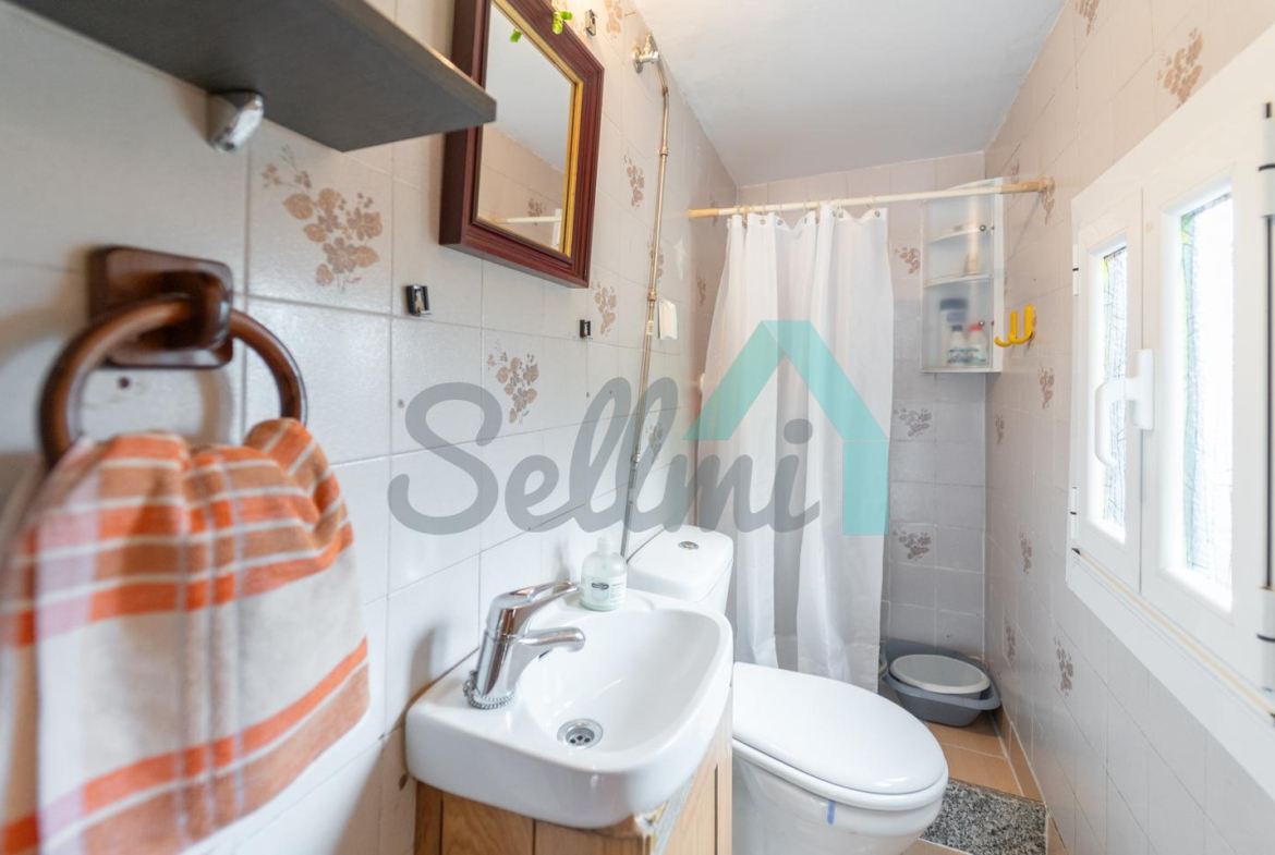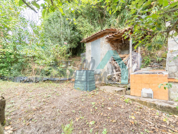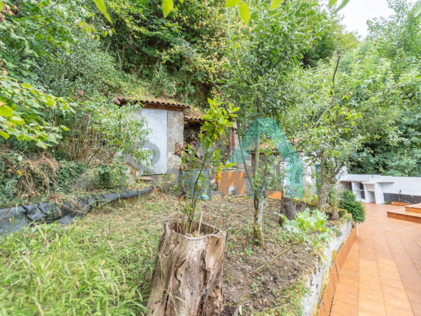 Este puente conecta con la entrada de la parcela, en la que cuenta con un terreno de 37,5 m2 que puede ser utilizado como jardín o huerto. Cuenta también con una casina pequeña con chimenea y que se puede transformar en habitación o salón. En el exterior cuenta con parrilla, leñero y cobertizo para almacenaje.