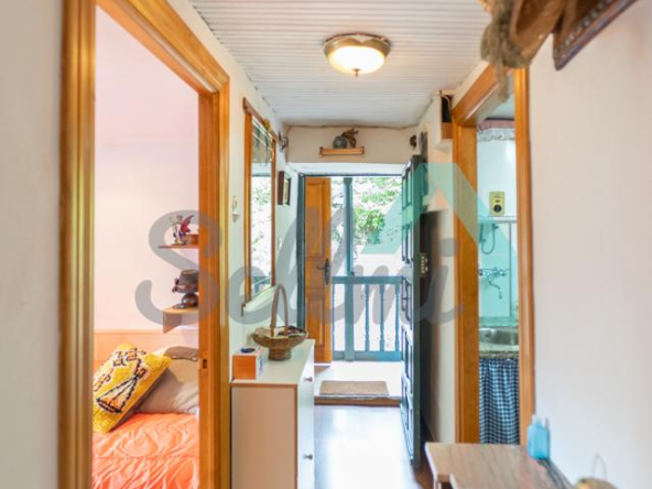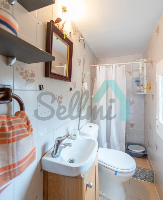 La vivienda, que se encuentra en muy buen estado, tiene una superficie construida de 48 m2 distribuidos en recibidor-pasillo, salón con cocina, dos habitaciones, un baño completo y un corredor (balcón) por el que se accede a la casa a través de un puente.