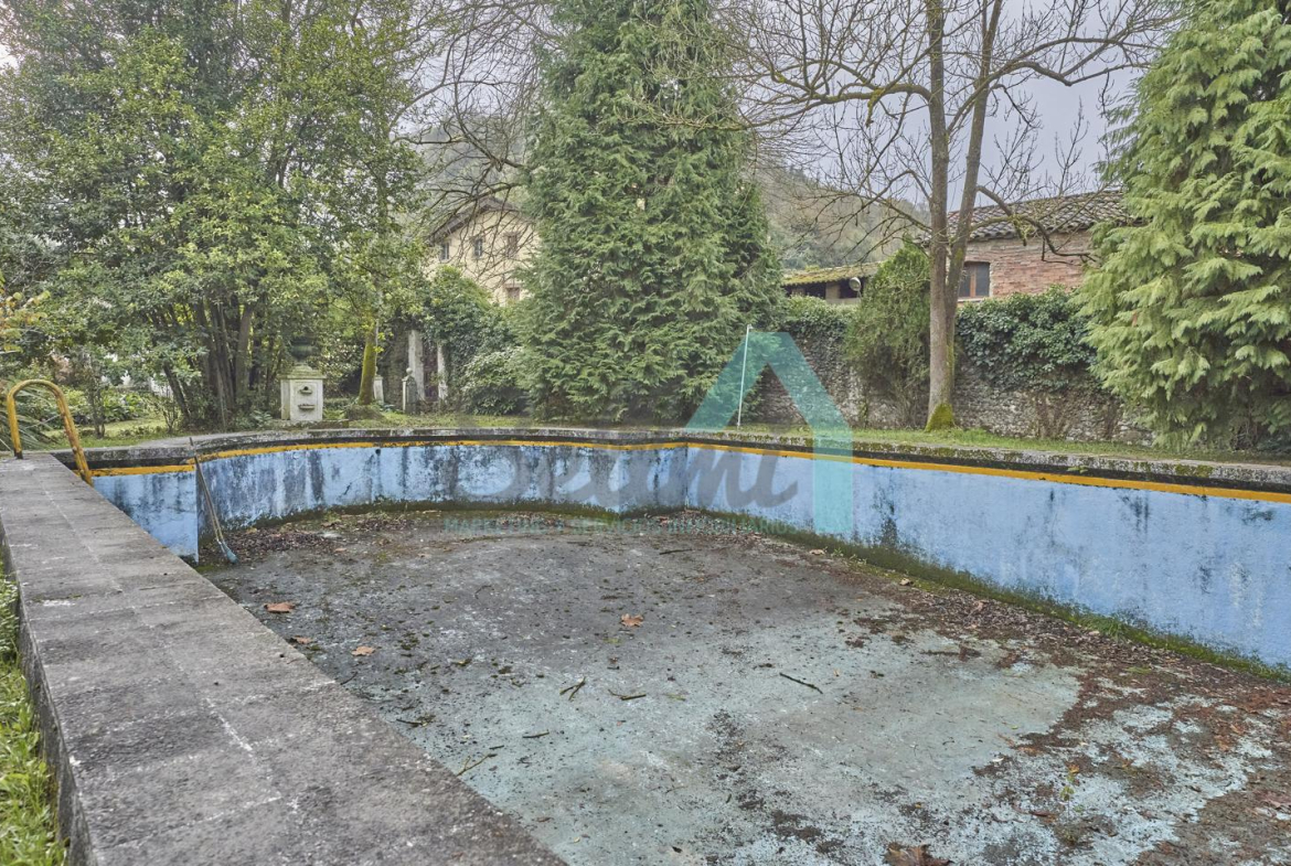 Repartidas por toda la finca dispone de varios elementos como piscina, estanques, fuentes, mirador, cenador y numerosos arboles ornamentales y frutales.