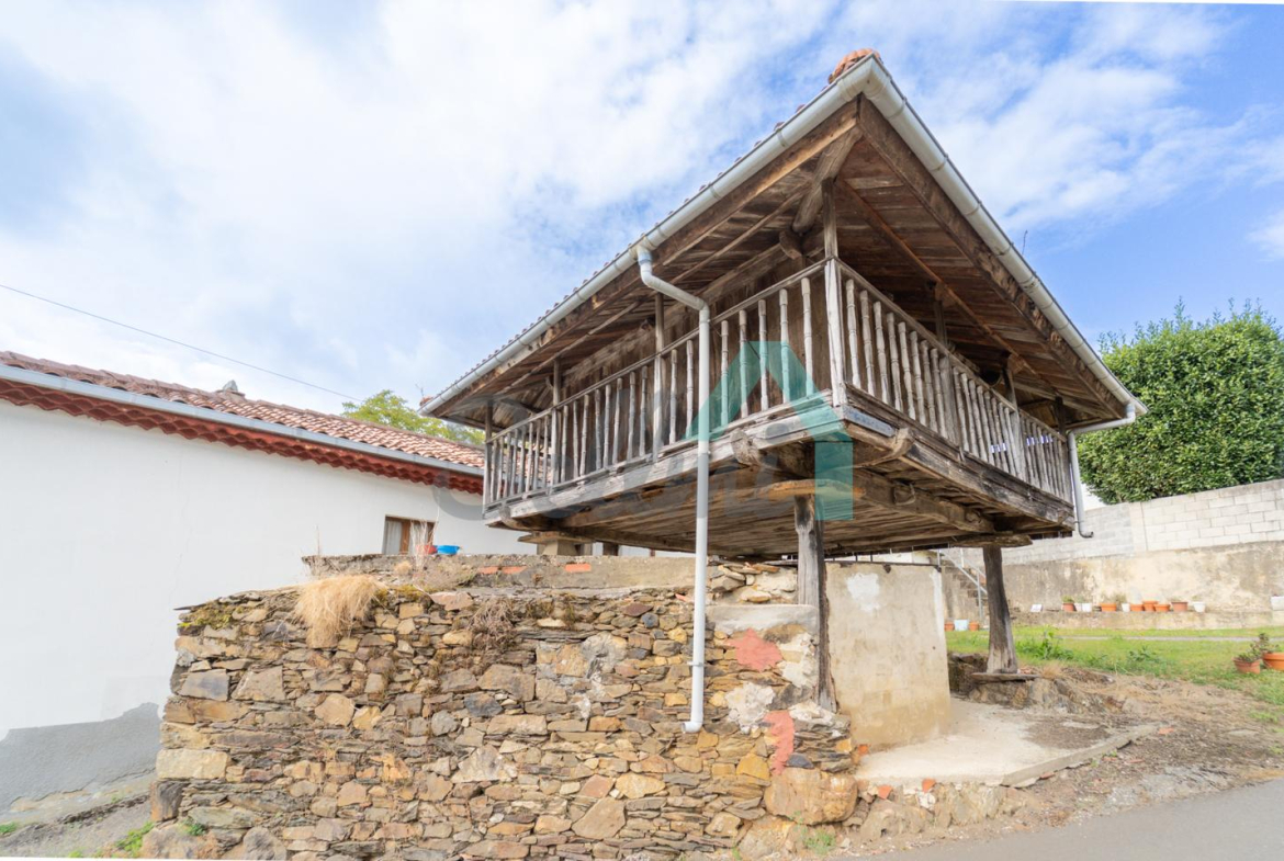 En el exterior cuenta con un hórreo tradicional (recientemente reparado), un pajar, una cuadra y una parcela de 21.307 m².