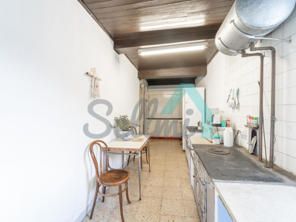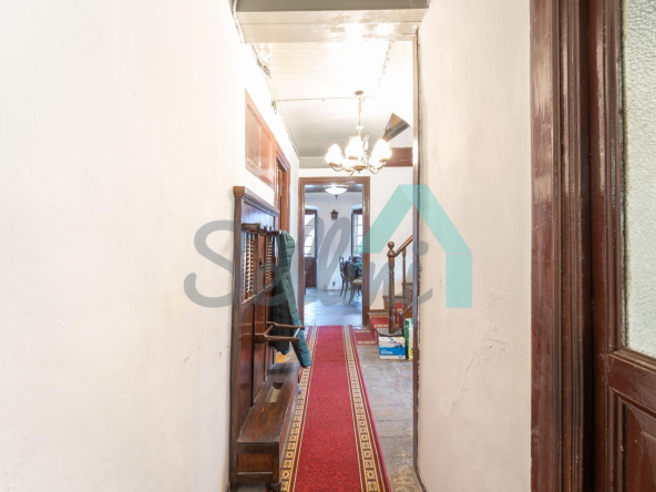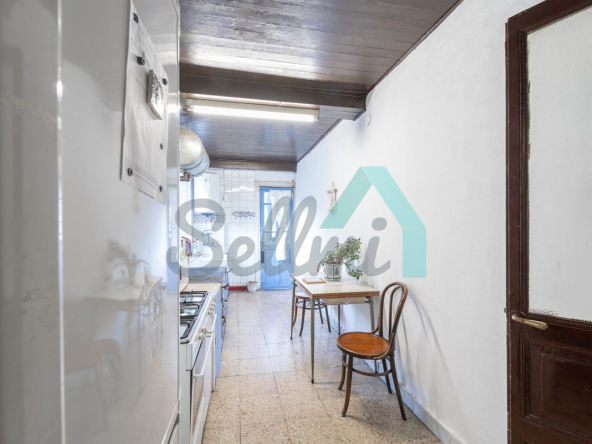 Al entrar, vestíbulo y puerta hacia planta baja diáfana (antigua oficina de correos del pueblo), con techos muy altos, ventanas a galería con orientación sur y vistas. Desde esta sala salen las escaleras al sótano, también de techos altos, con ventana y portón a la calle de abajo (que es practicable en coche). Tiene una pequeña antojana privada por fuera de la puerta.