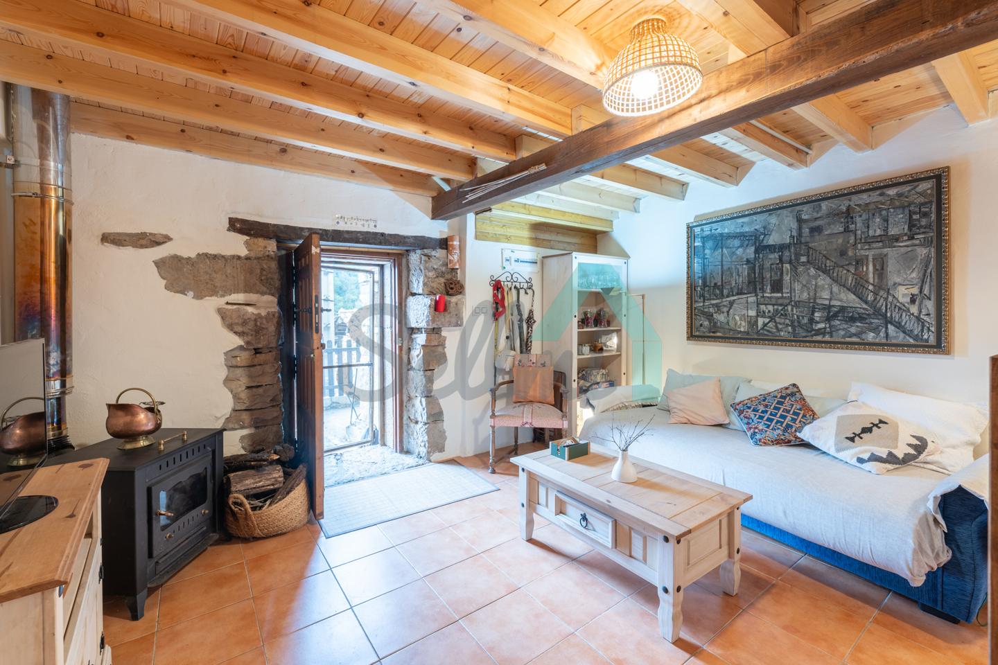 Se vende amueblada y cuenta con suelos de parqué y gres, ventanas de madera, calefacción con estufa de leña, ACS por termo eléctrico, etc.