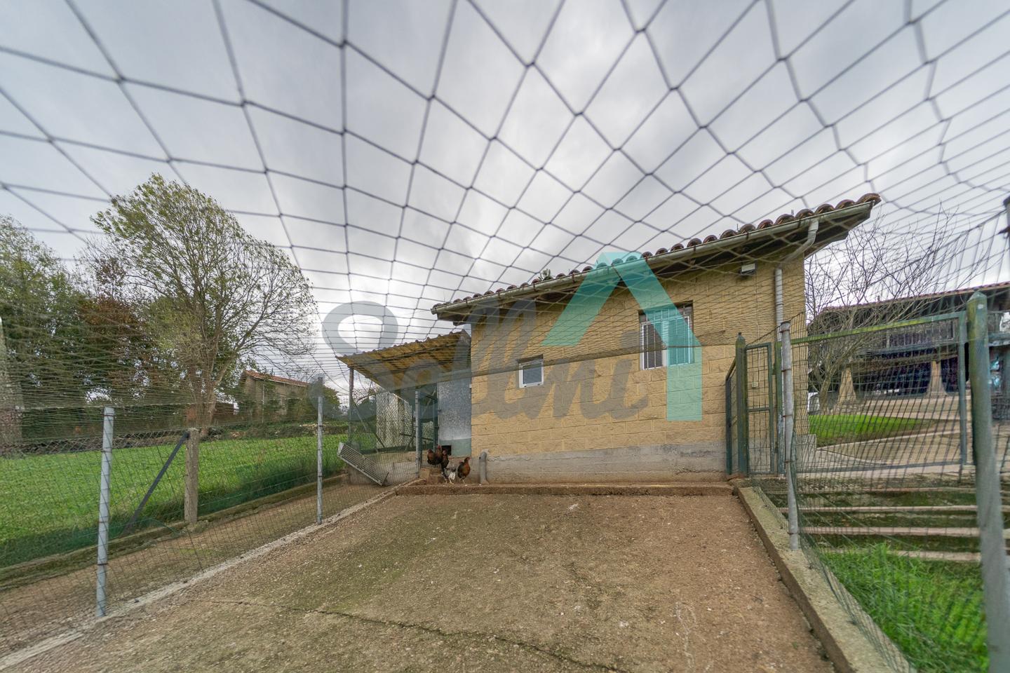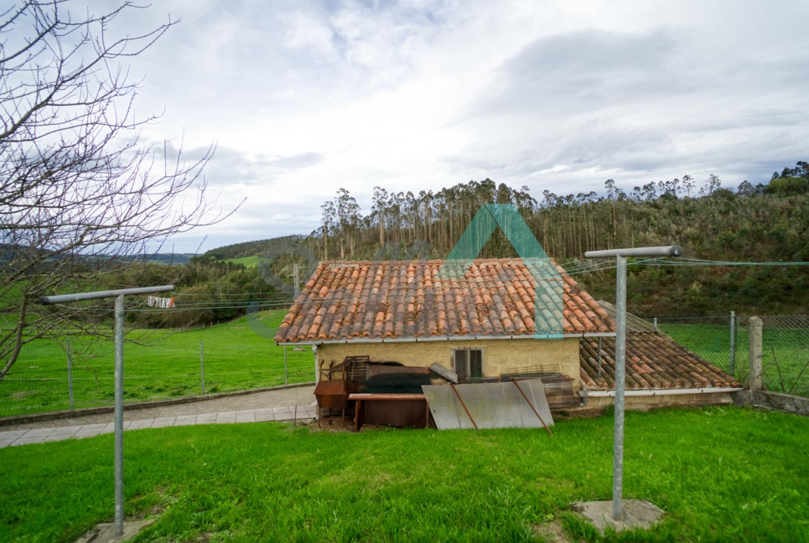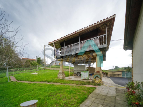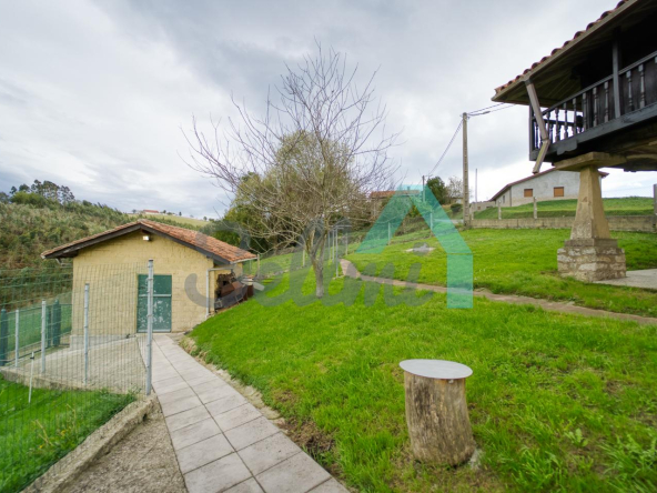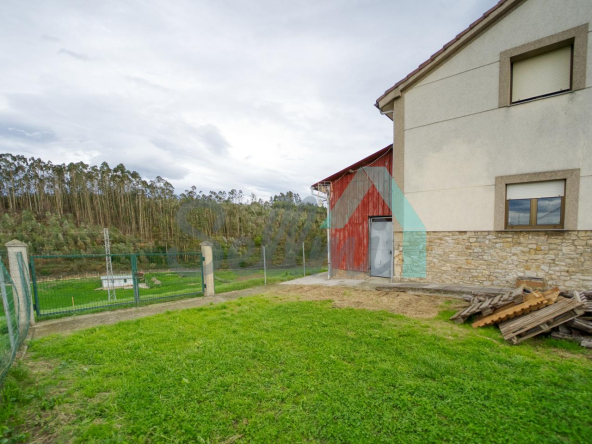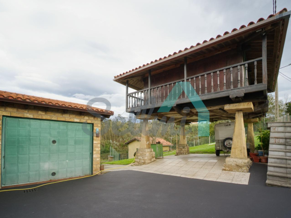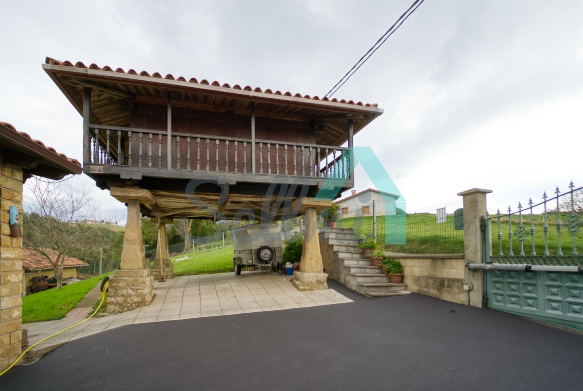 Se ubica sobre una parcela de 8.735 m2 en la que, además de la casa, cuenta con garaje, hórreo en muy buen estado, dos cuadras, gallinero, amplia zona ajardinada y aparcamiento exterior.