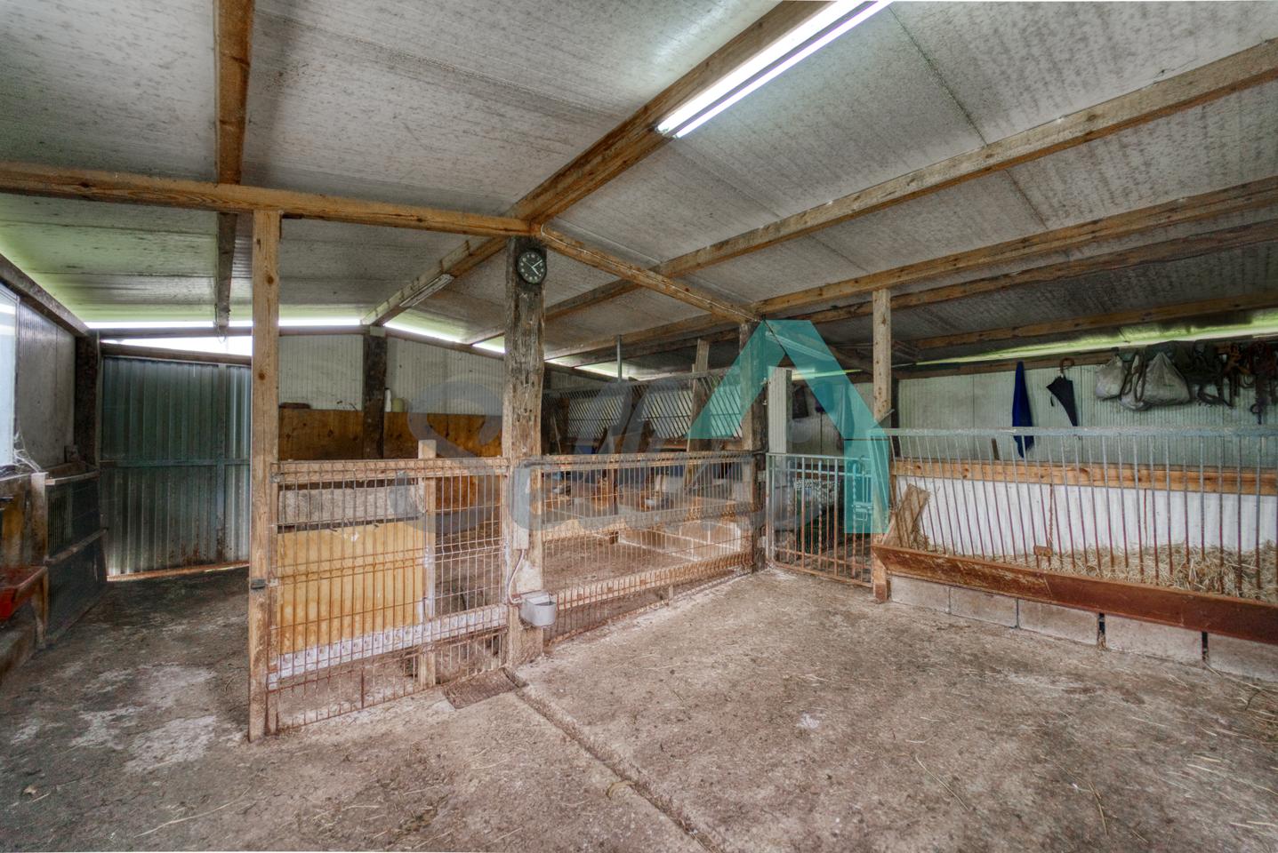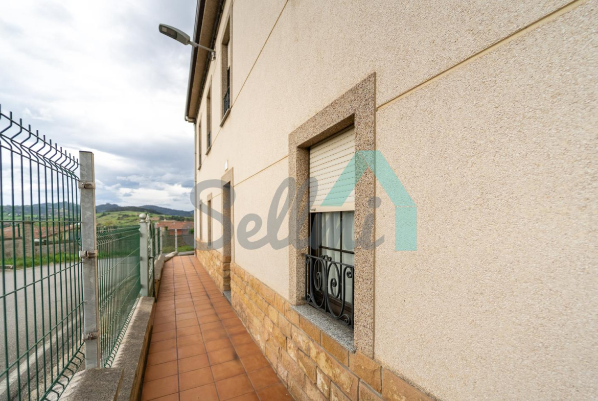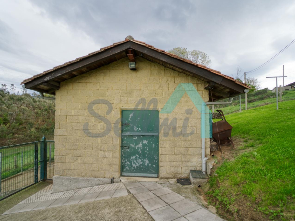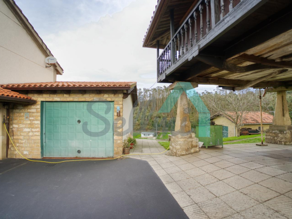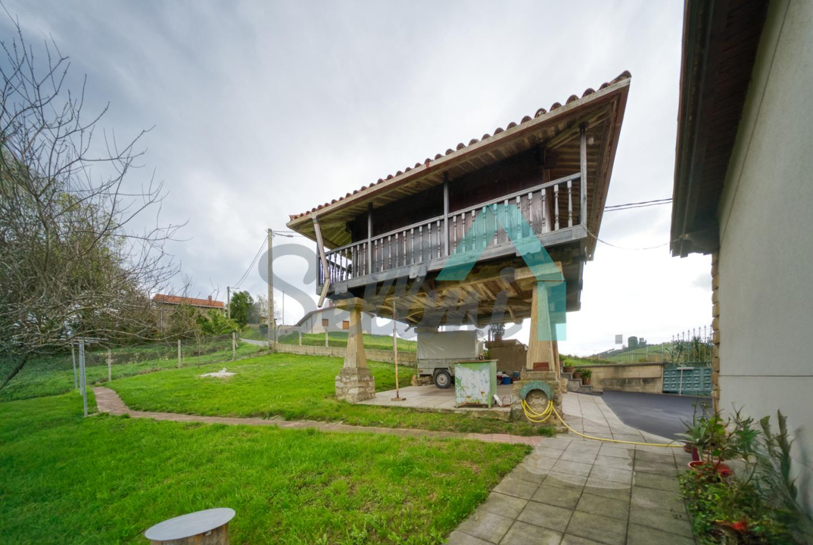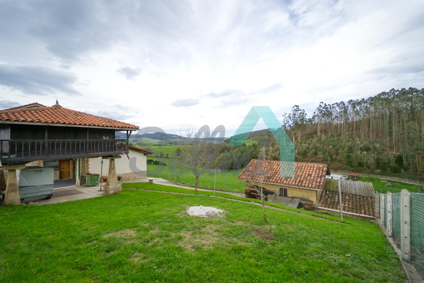 Se ubica sobre una parcela de 8.735 m2 en la que, además de la casa, cuenta con garaje, hórreo en muy buen estado, dos cuadras, gallinero, amplia zona ajardinada y aparcamiento exterior.