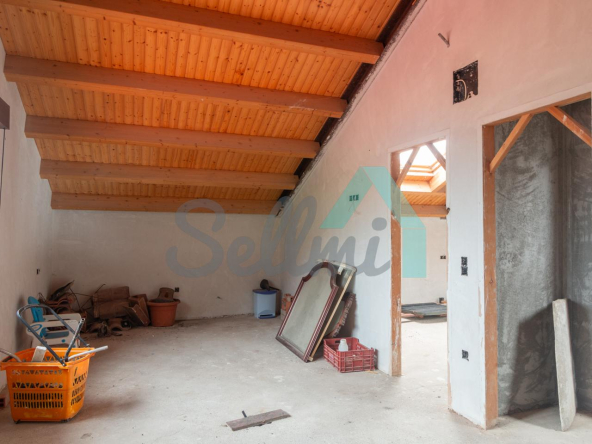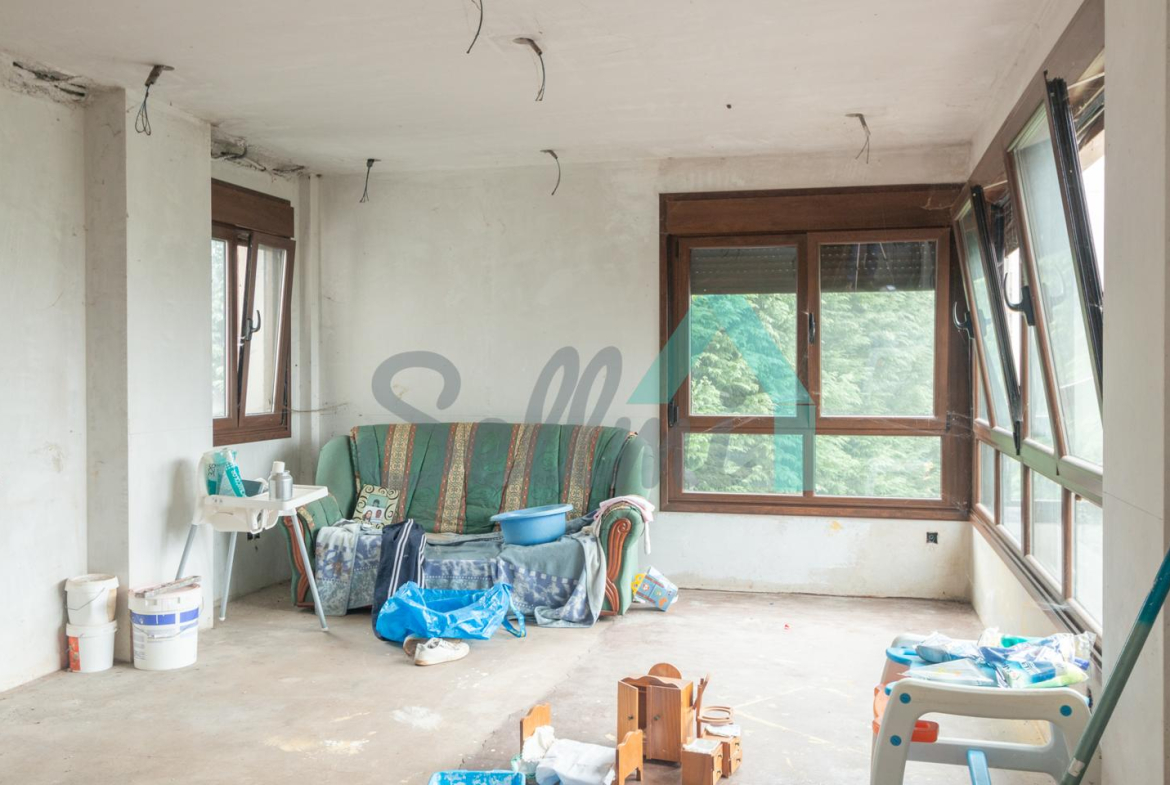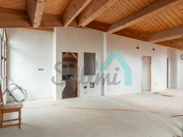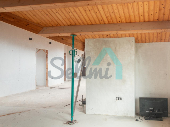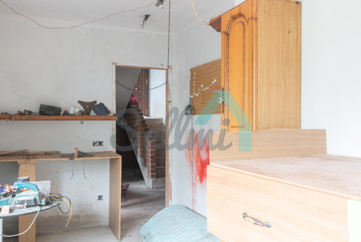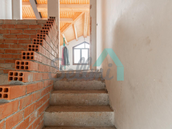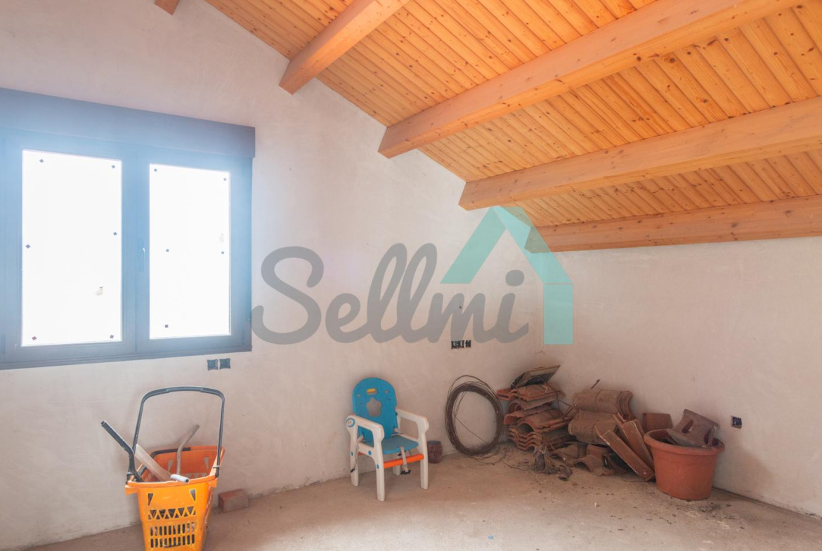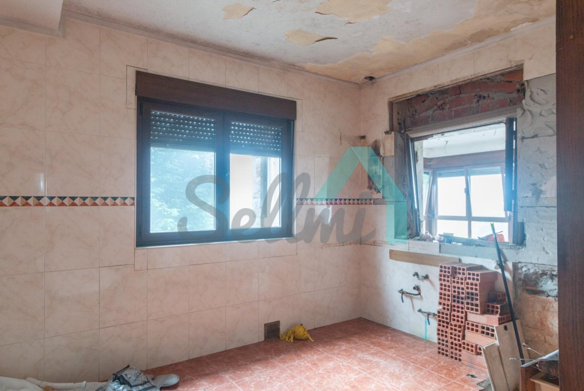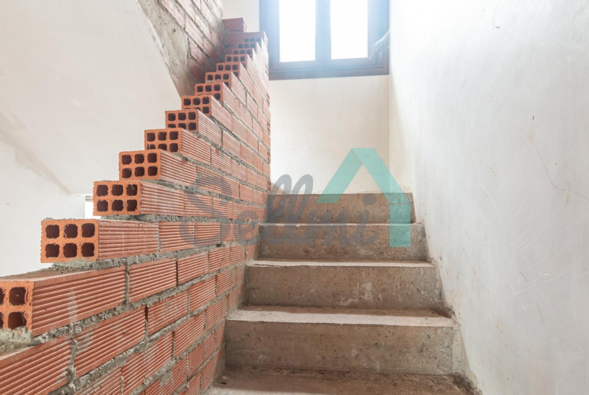 El interior está sin acabar, con las distribuciones hechas y con suelos de hormigón. Falta terminar los baños, cocina y colocar las puertas. Cuenta con ventanas de doble acristalamiento y calefacción de gasoil con depósito de 1.000 litros. Estructura y tejado reformados en 2009.
