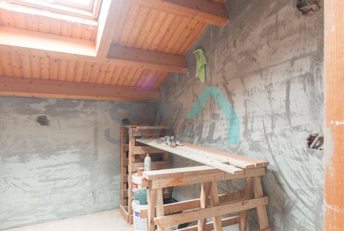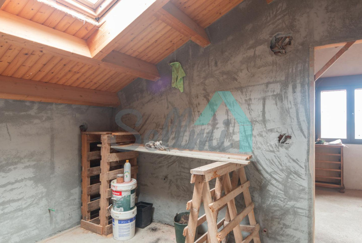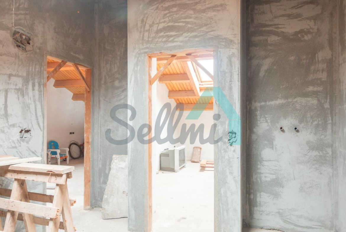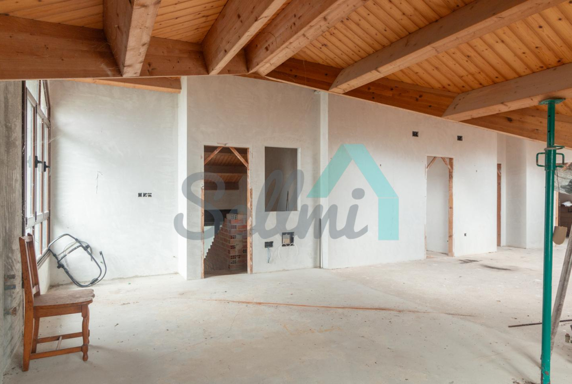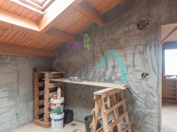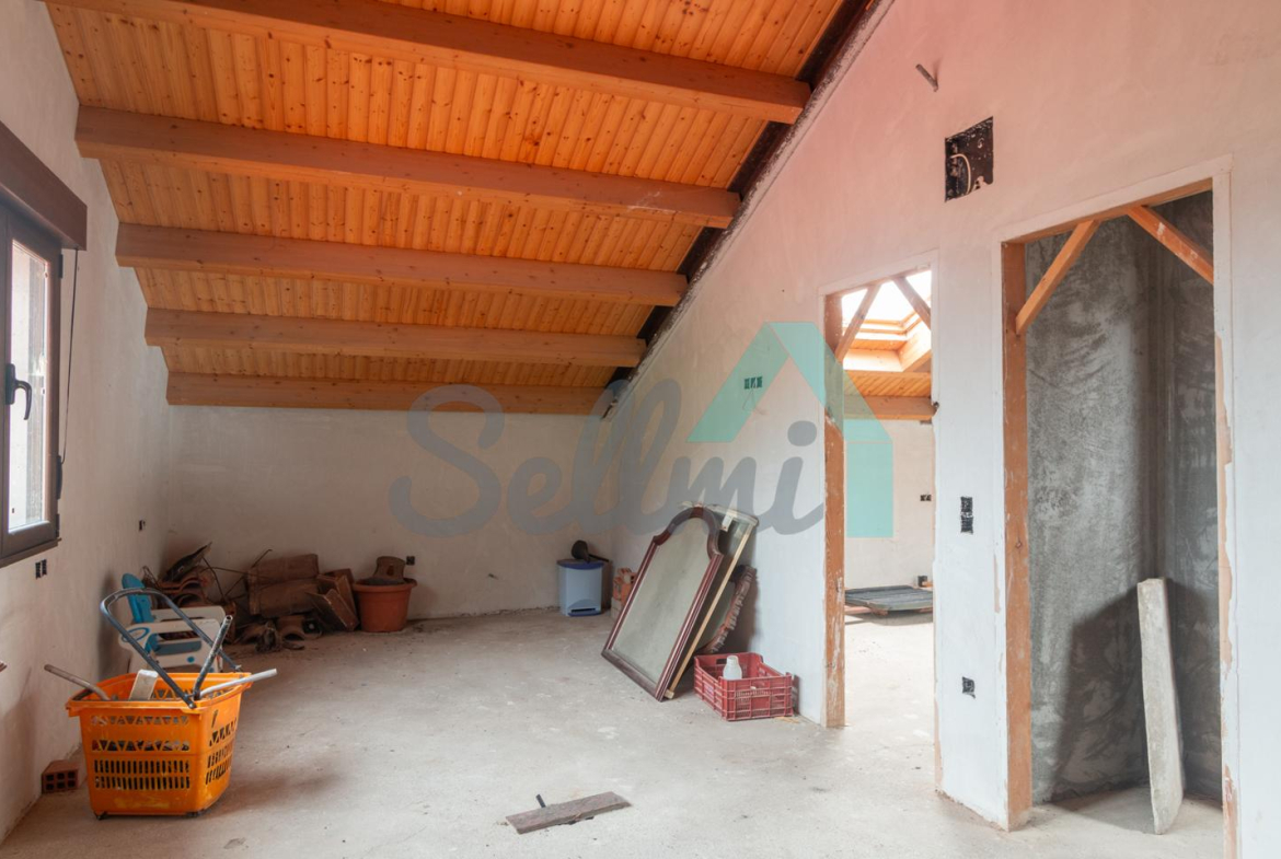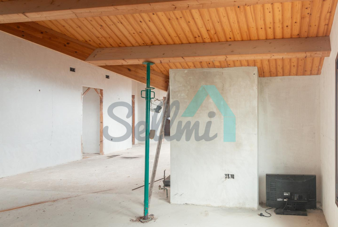 El interior está sin acabar, con las distribuciones hechas y con suelos de hormigón. Falta terminar los baños, cocina y colocar las puertas. Cuenta con ventanas de doble acristalamiento y calefacción de gasoil con depósito de 1.000 litros. Estructura y tejado reformados en 2009.