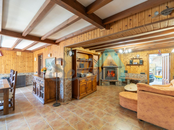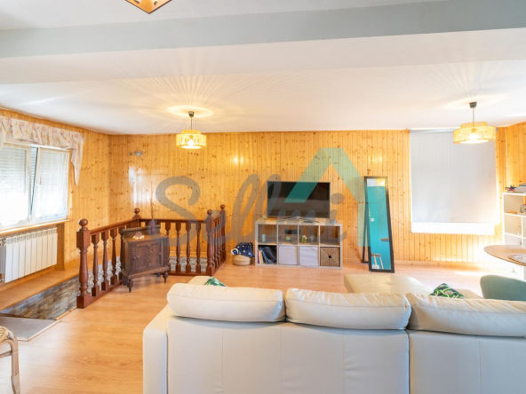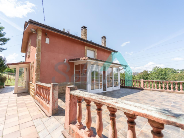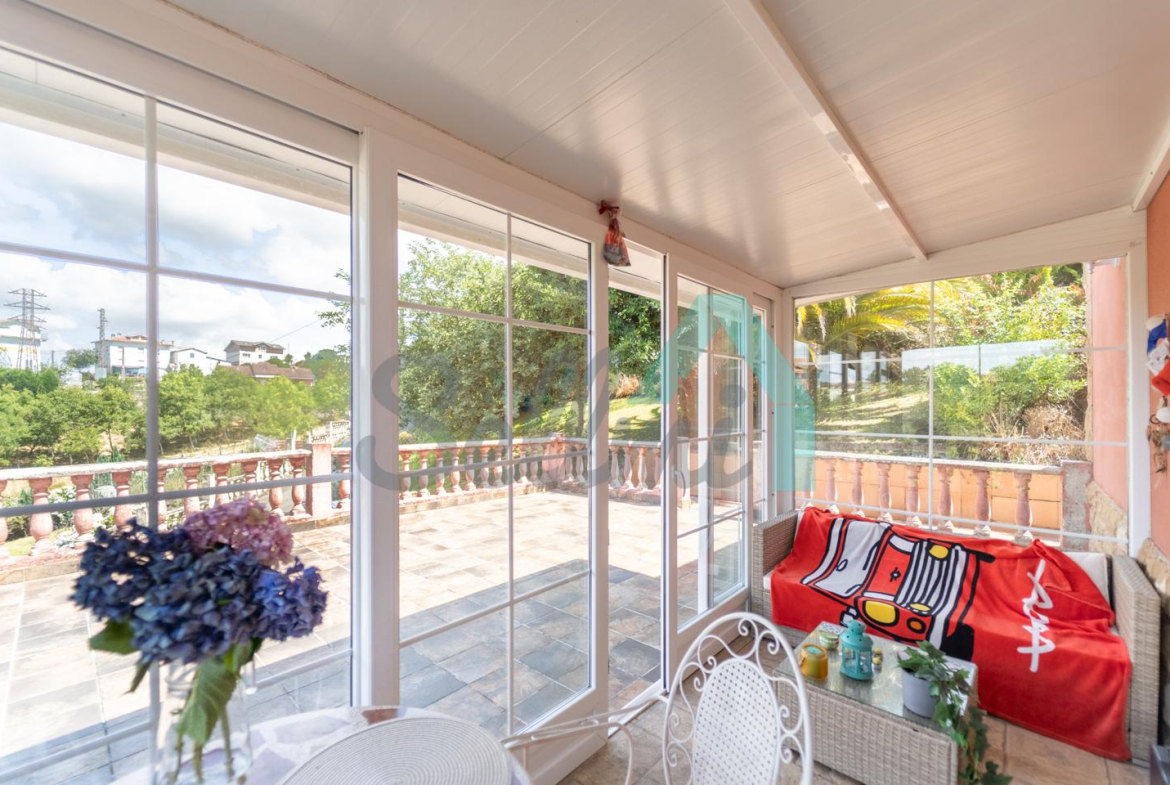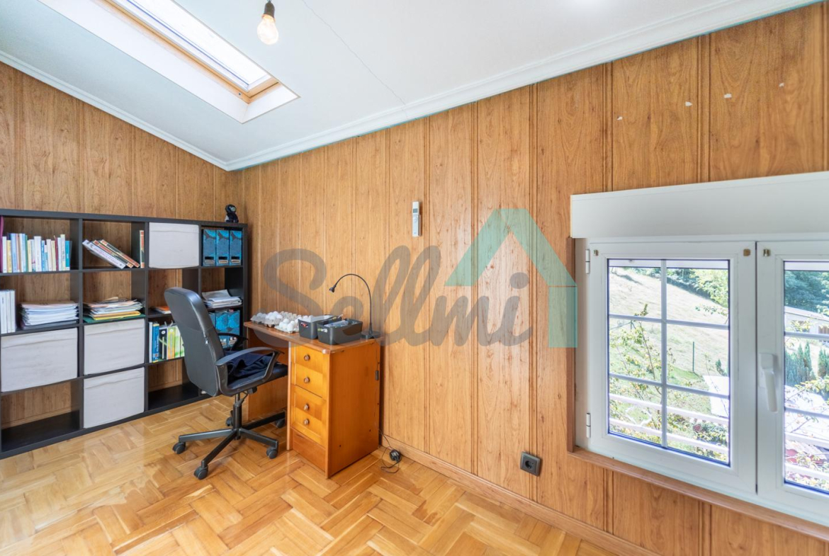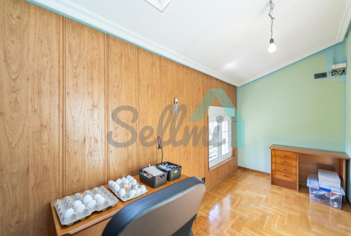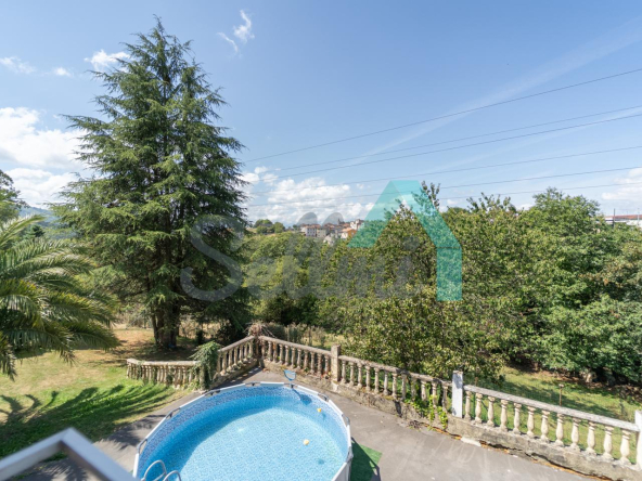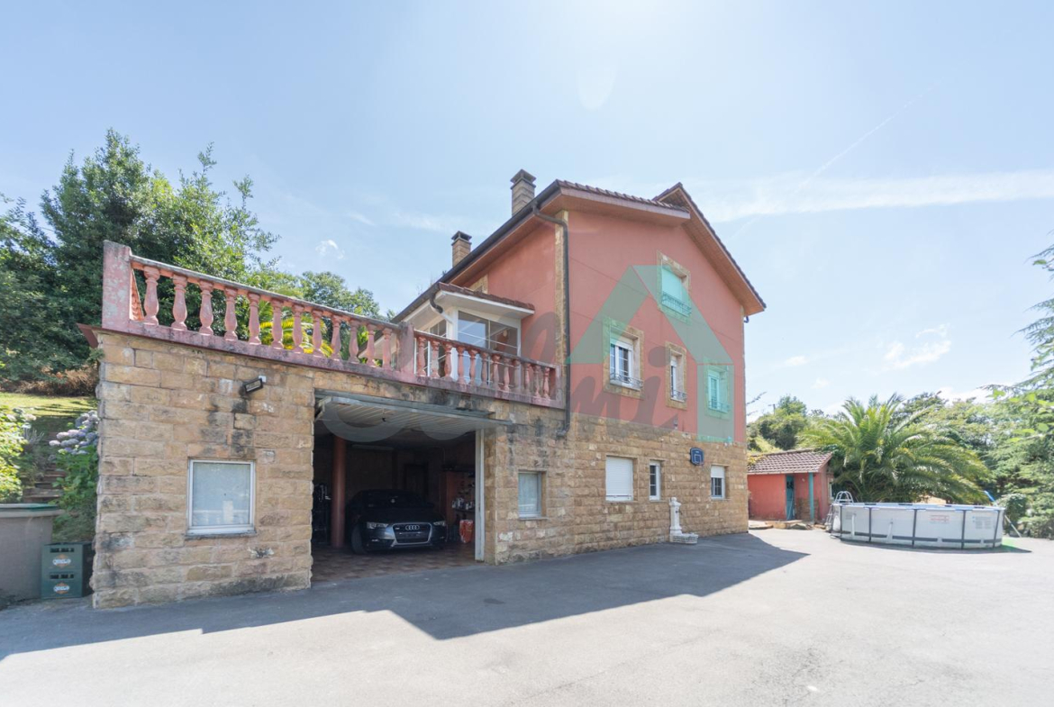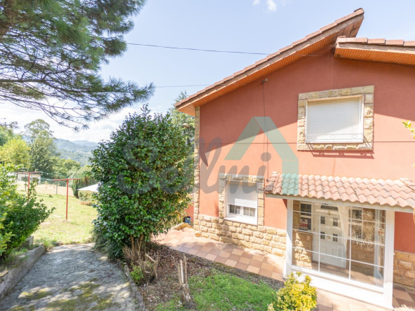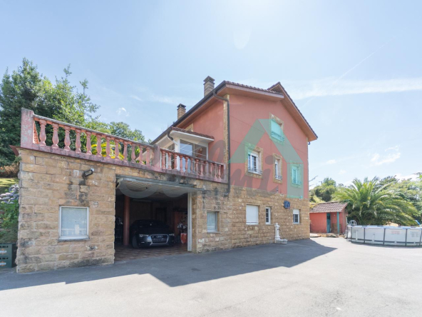 Chalet independiente en venta en Carbayín, Siero. Se ubica sobre una parcela de 5.812 m2 (son dos fincas de 1.295 m2 y 4.517 m2 respectivamente) con amplia zona ajardinada, aparcamiento exterior, cochera, cenador con parrilla y tres casetas para almacenaje.