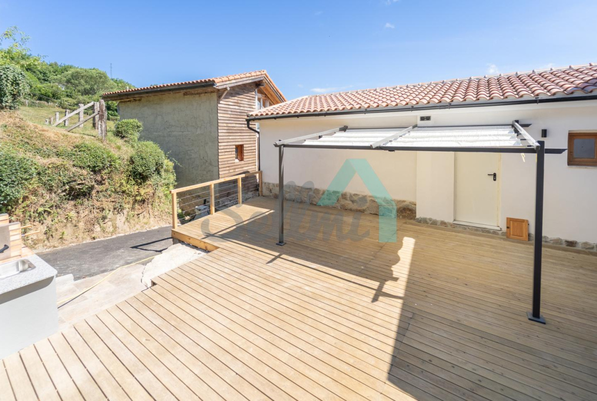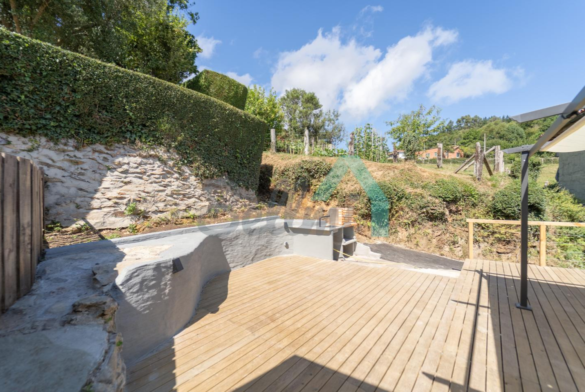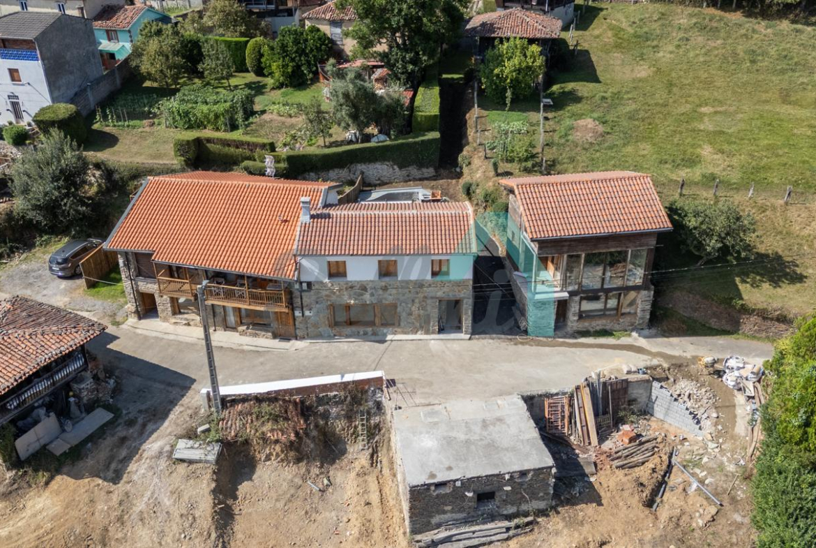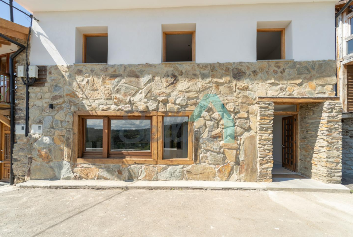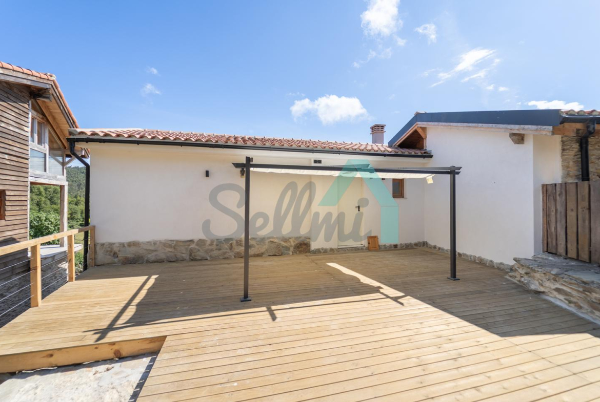 La casa cuenta con suelos de tarima y gres, ventanas de PVC con doble acristalamiento, calefacción por estufa de pellets, puerta de seguridad, agua de manantial, etc. Tejado nuevo, instalaciones de electricidad y fontanería nuevas, todo rehabilitado integralmente a estrenar.