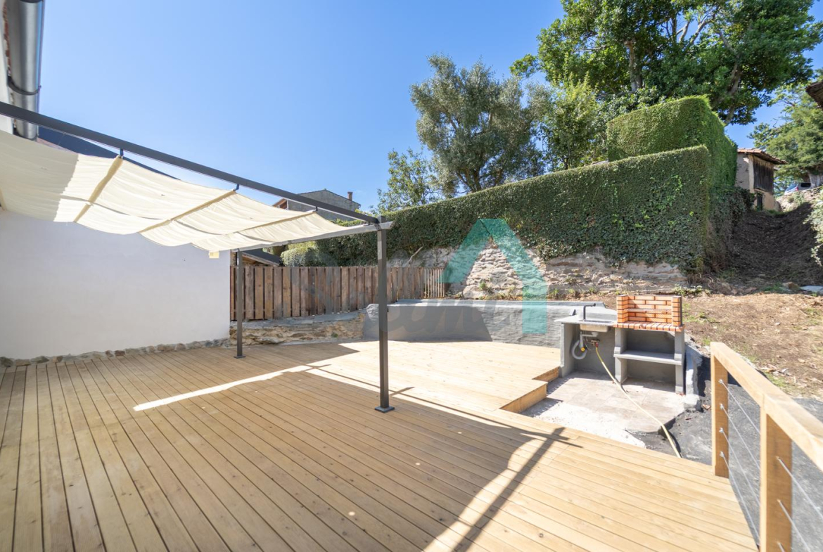 En la parte trasera cuenta con una terraza (deck de madera) de unos 60 m2 con parrilla.