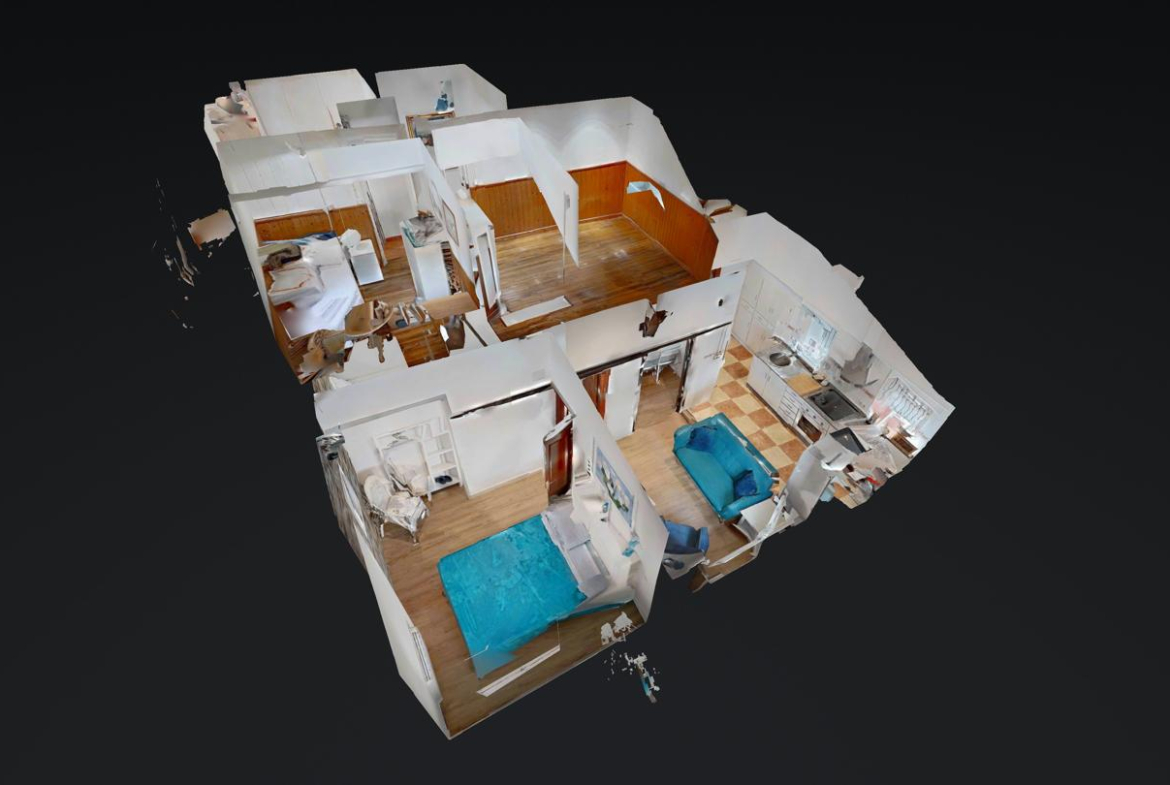 Planta baja: hall de entrada, salón con cocina amueblada y equipada, comedor independiente, dos habitaciones y un baño completo.