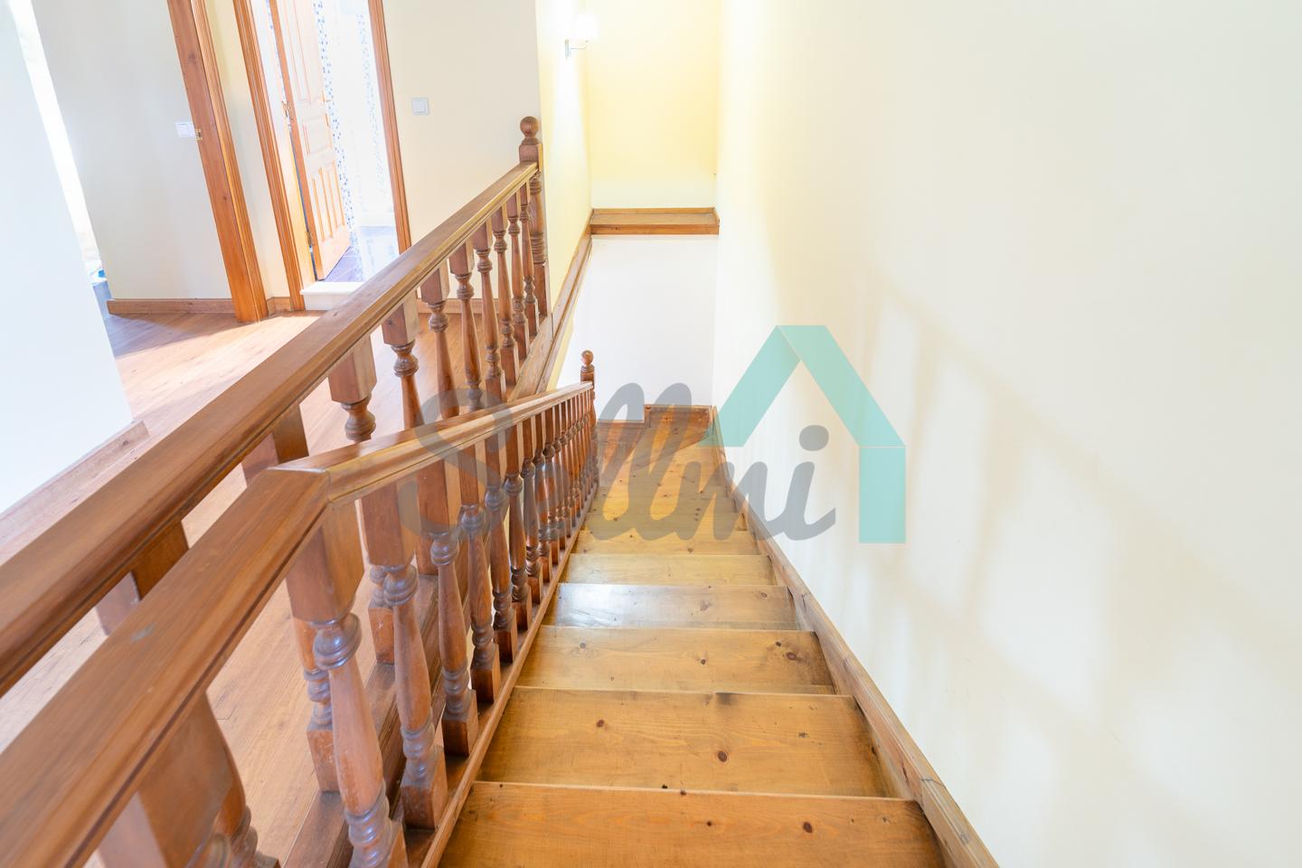 Planta alta con distribuidor, galería, tres habitaciones y dos baños completos.
