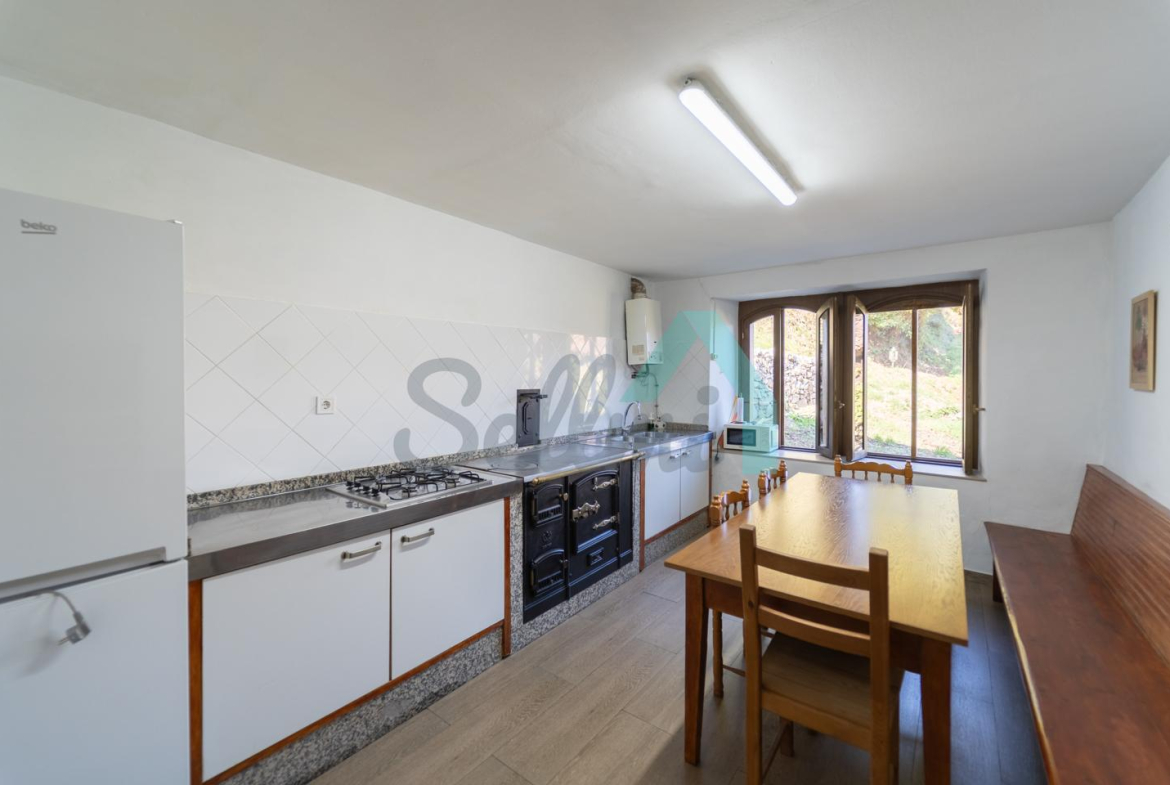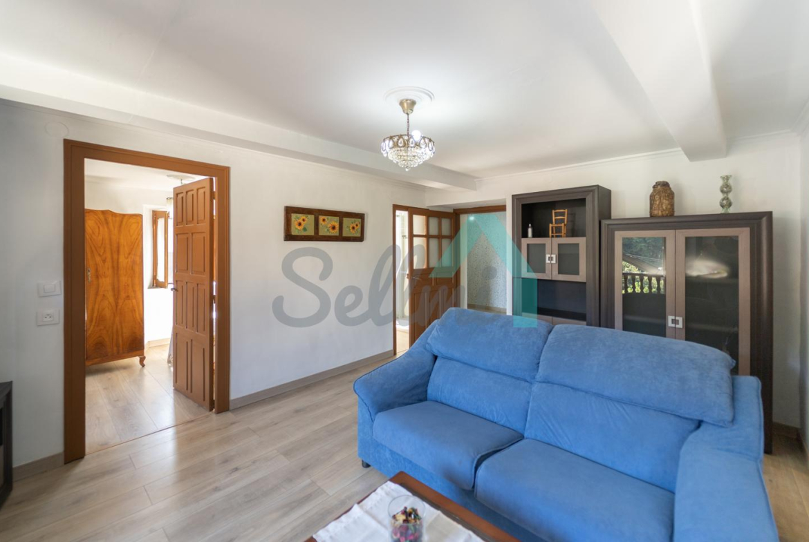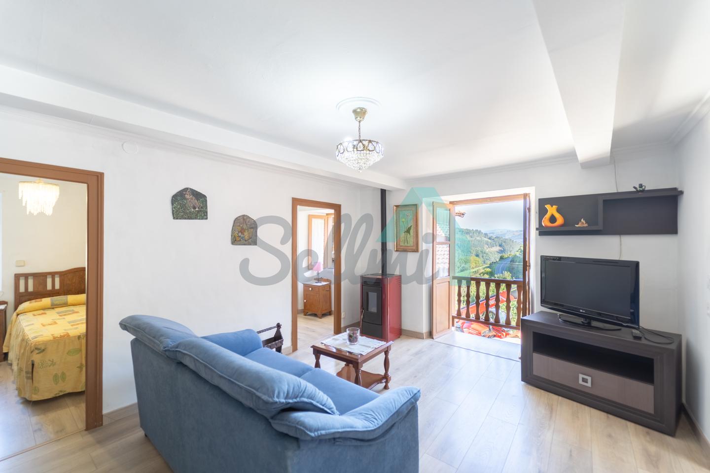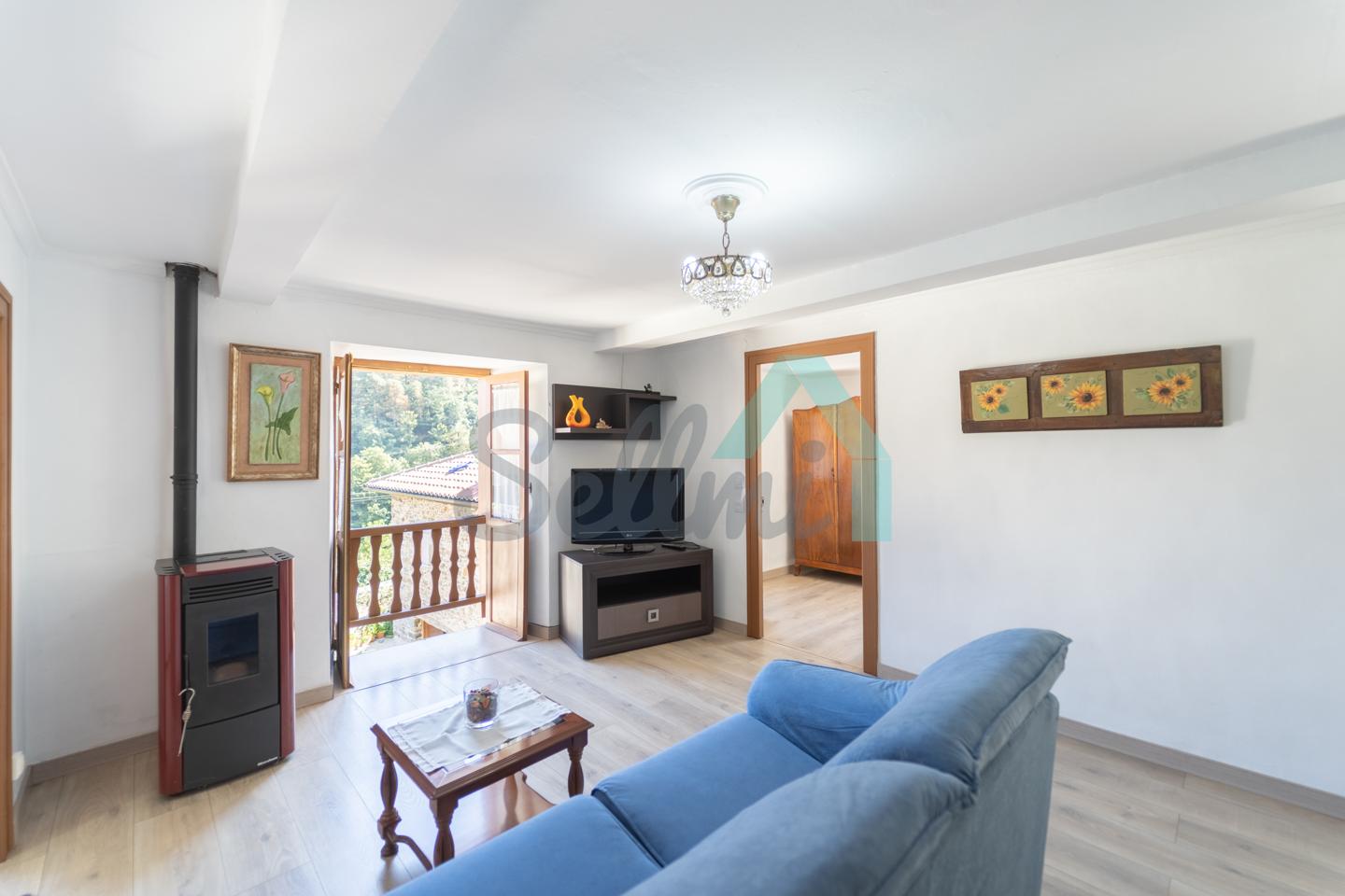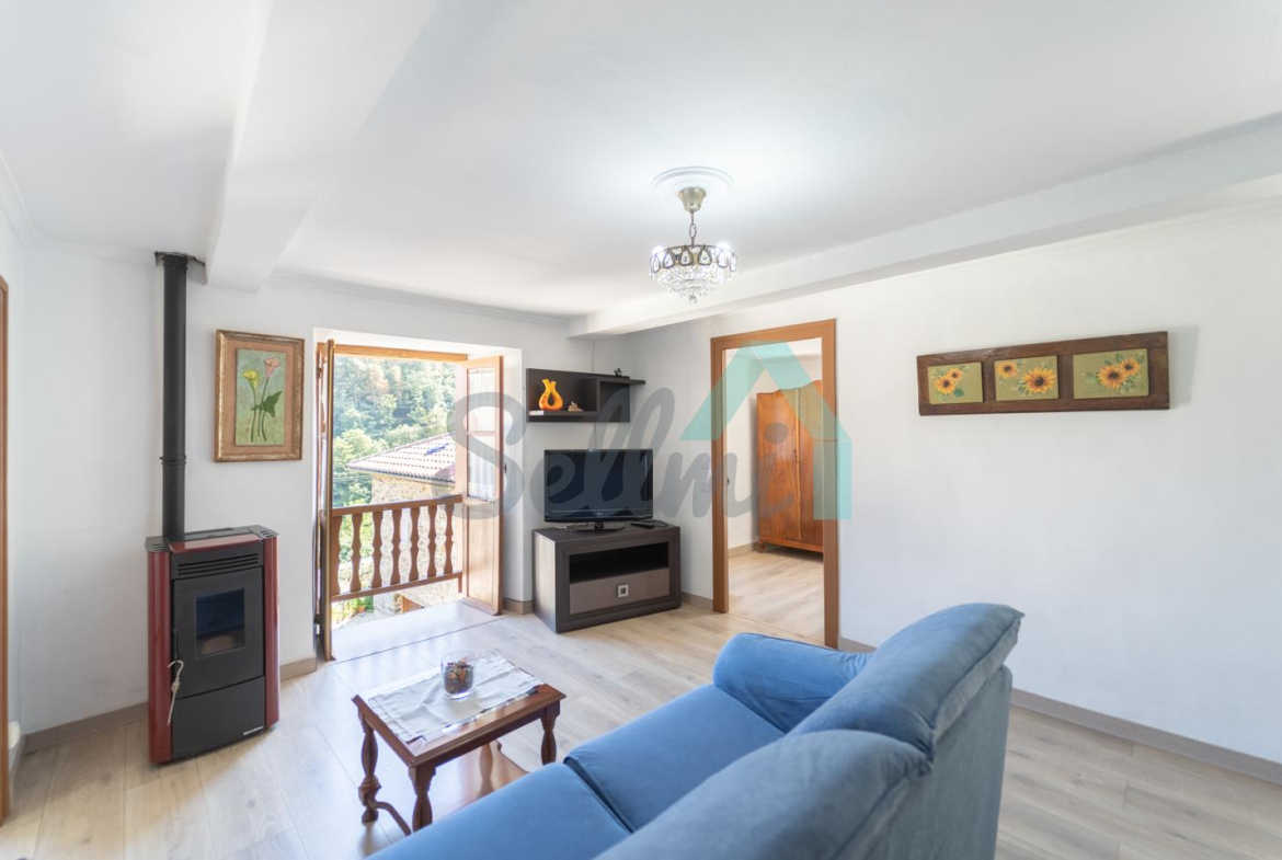 La planta totalmente reformada está formada por un amplio hall de entrada, salón comedor con estufa de pellets y balcón, cocina amueblada (con cocina de leña), tres habitaciones y un baño completo.