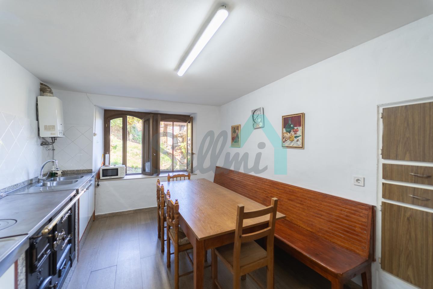 La edificación principal, que se encuentra parcialmente reformado, cuenta con una superficie de 240 m2 distribuidos en tres plantas.