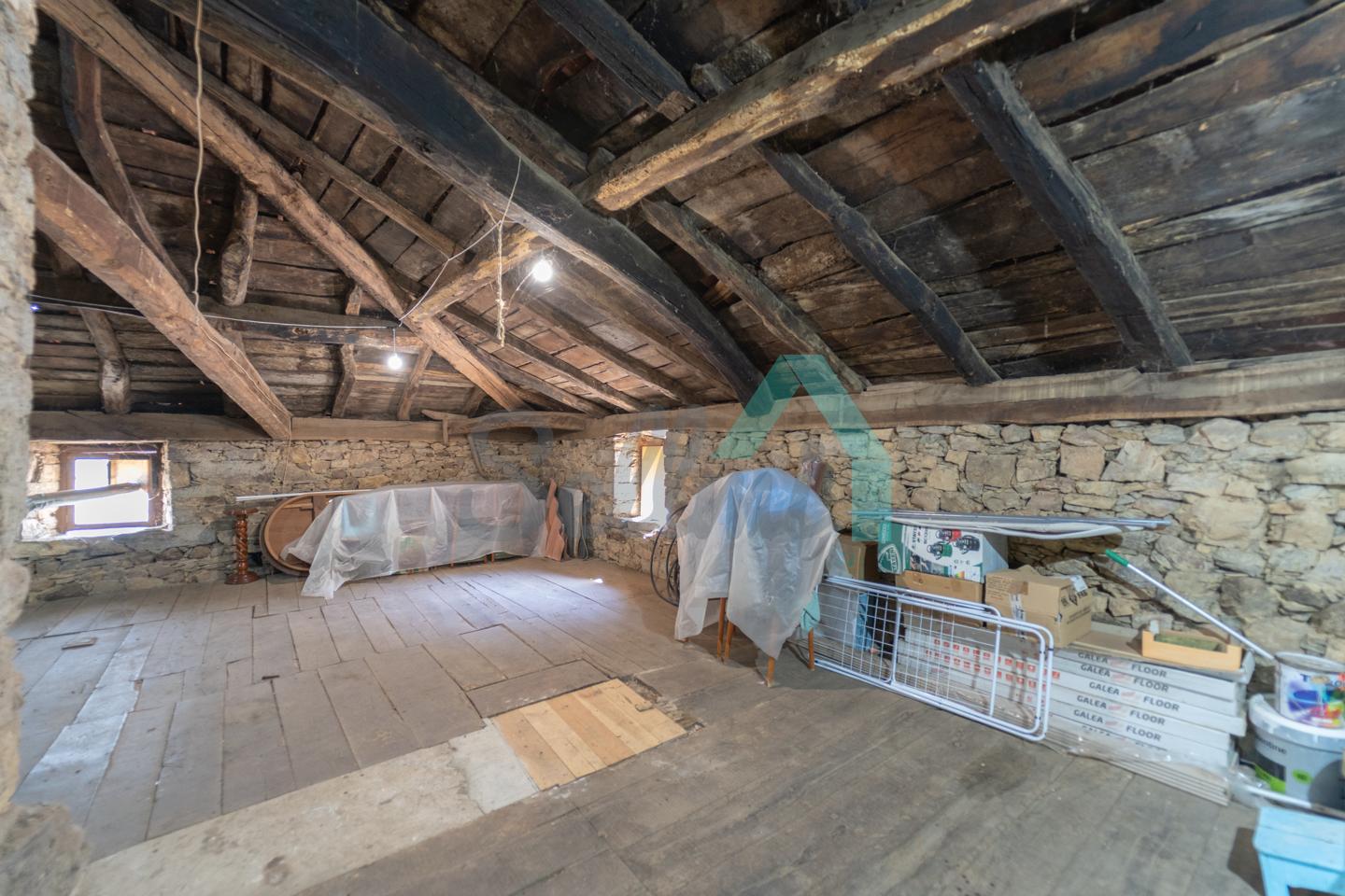 El desván (el antiguo pajar), también sin rehabilitar, destaca por su espacio diáfano y la altura aprovechable, con acceso interior a la vivienda y con acceso exterior a la parte trasera de la casa.