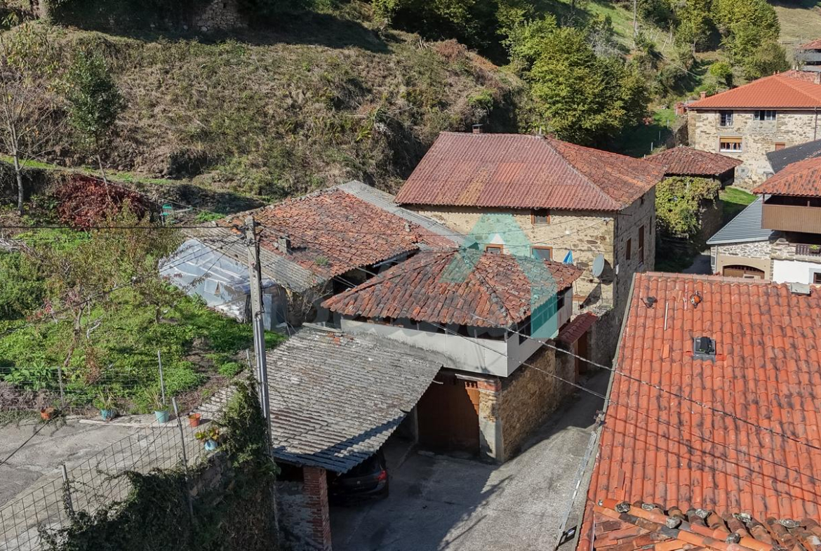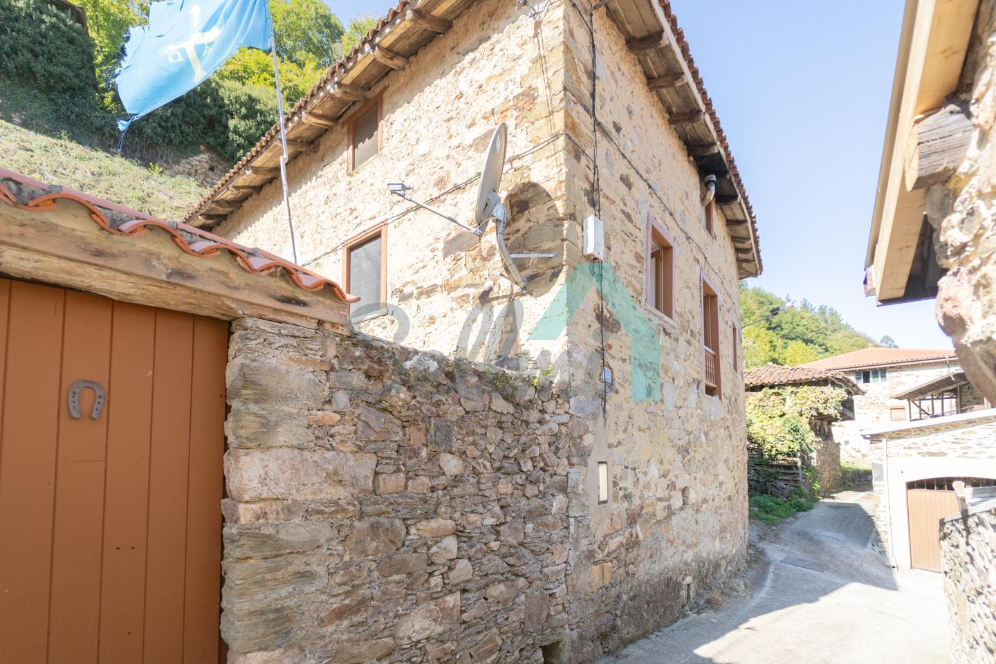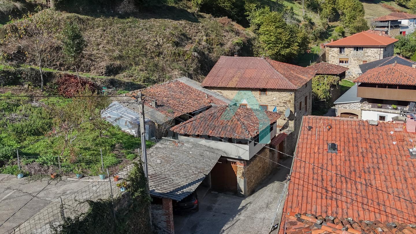 Casa independiente en venta en Ese de San Vicente, una pequeña localidad perteneciente a Tineo. Se ubica sobre una parcela de 514 m2 y está compuesta por varias edificaciones que suman una superficie construida total de 285 m2.