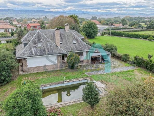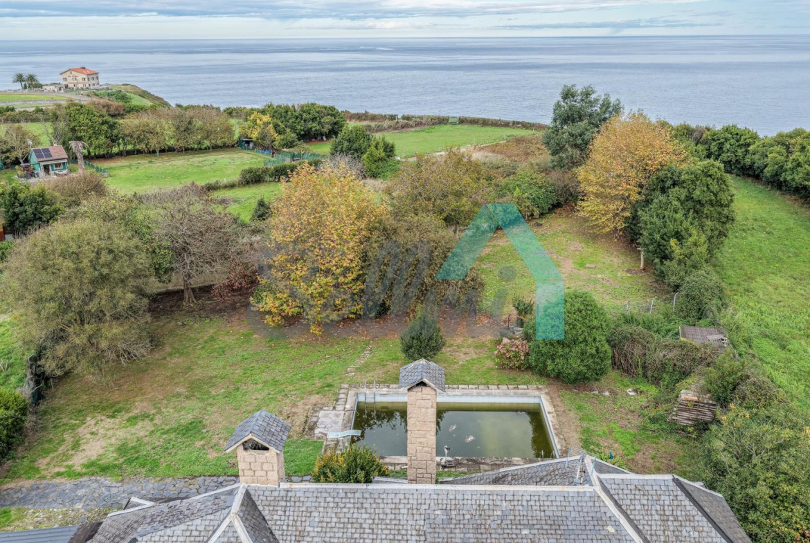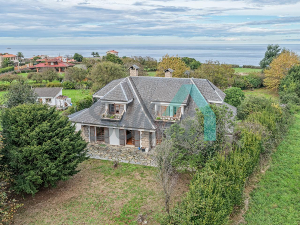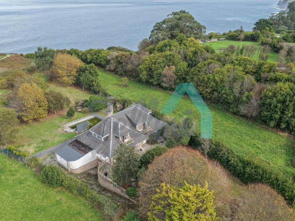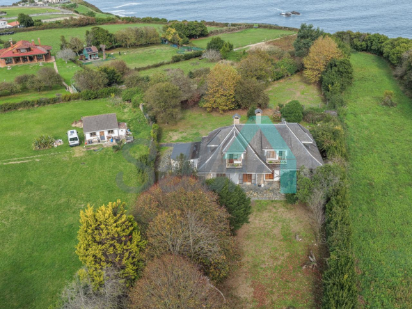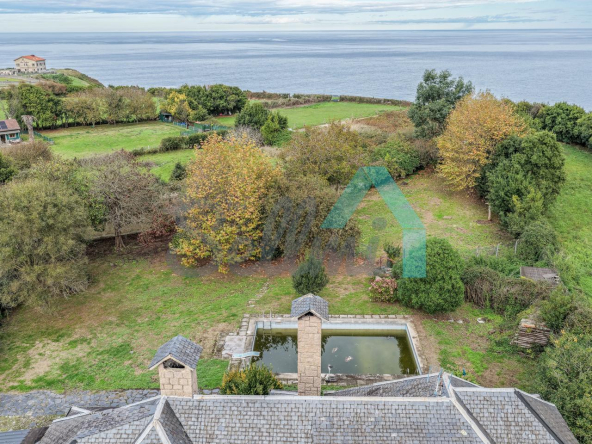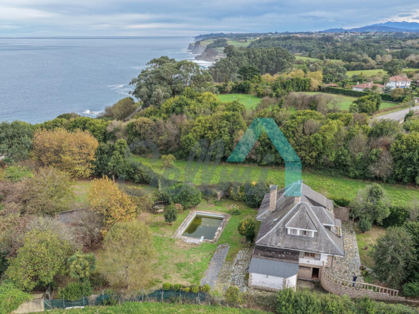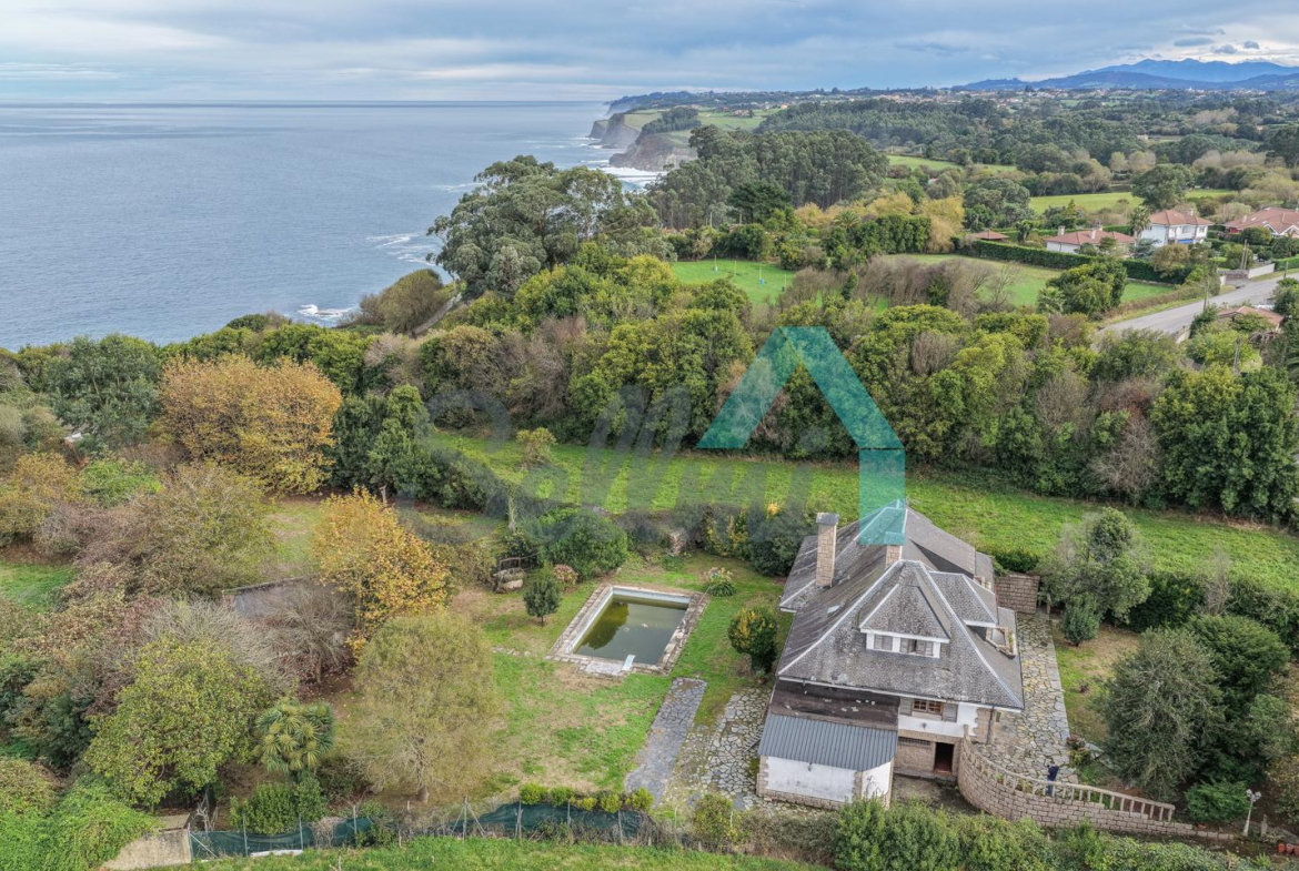 Chalet independiente en venta en La Providencia, Gijón, en primera línea de la costa. Se ubica sobre una parcela de 3.521 m2 con amplia zona ajardinada, piscina, parrilla, garaje para dos coches y una casa de invitados de unos 40 m2.