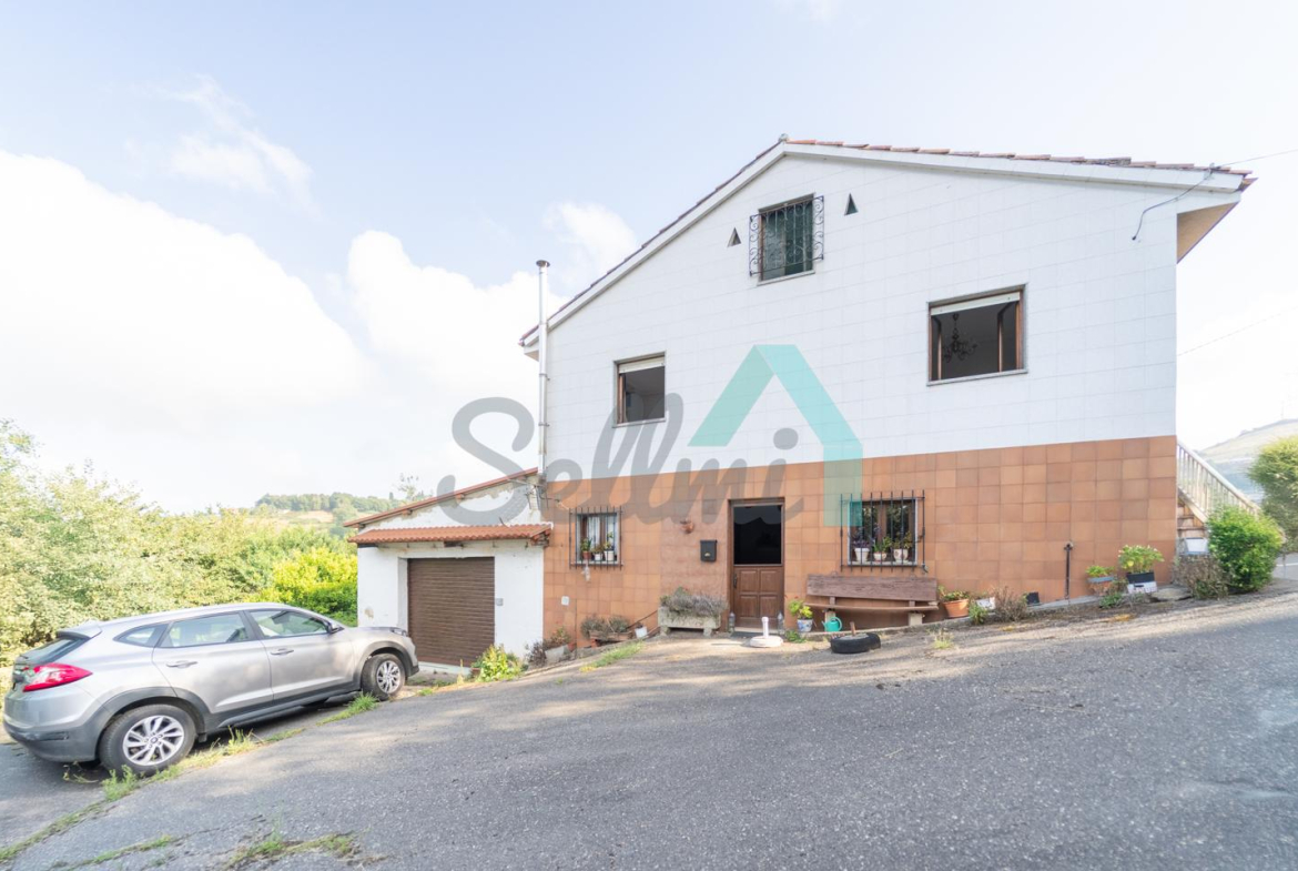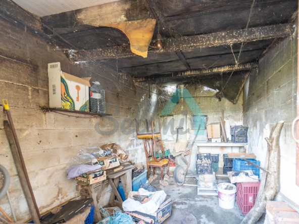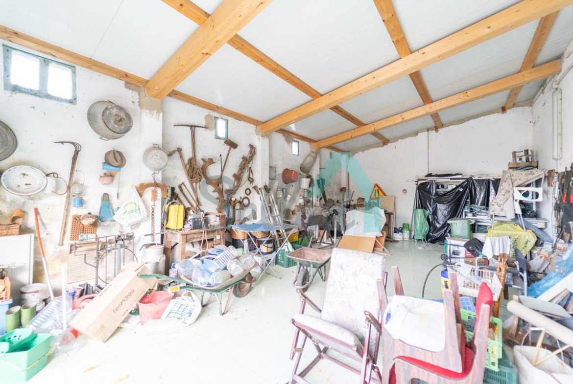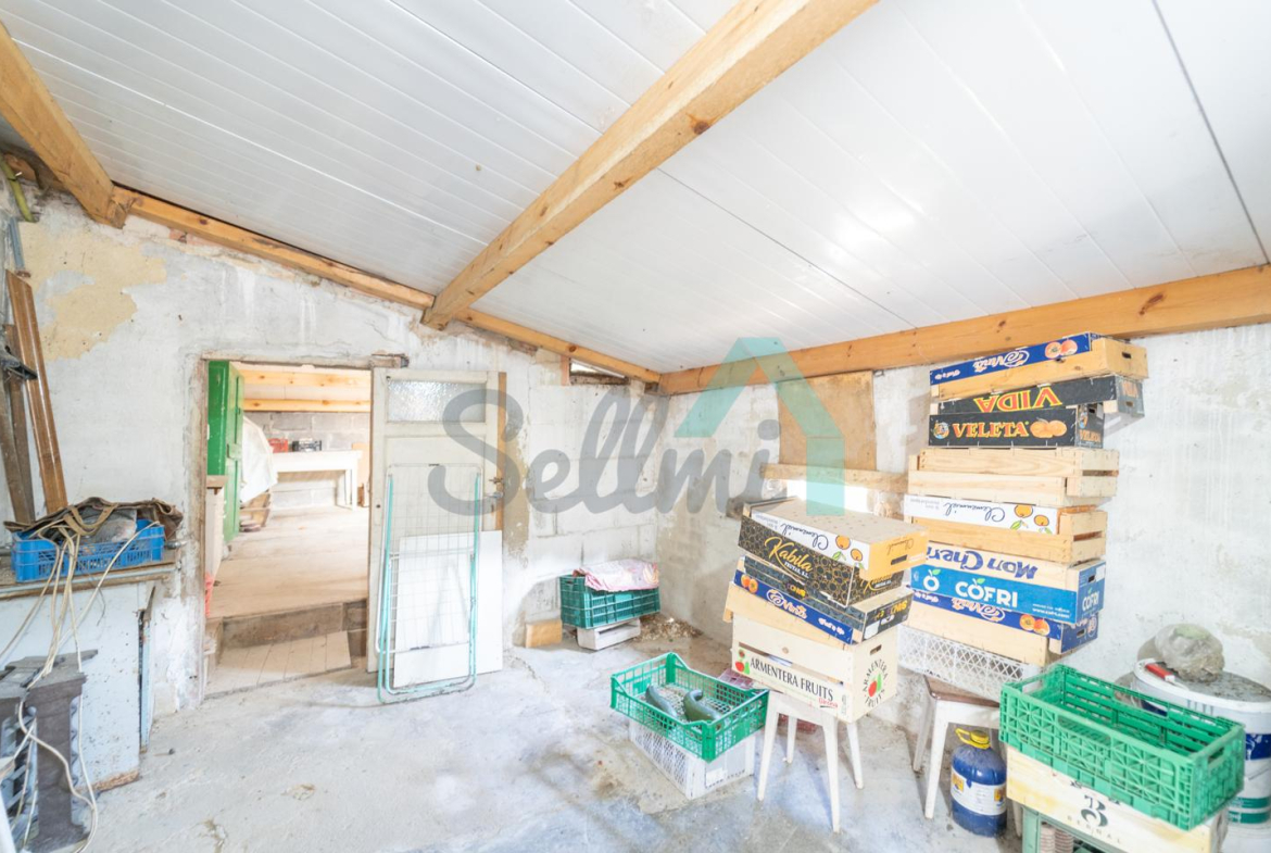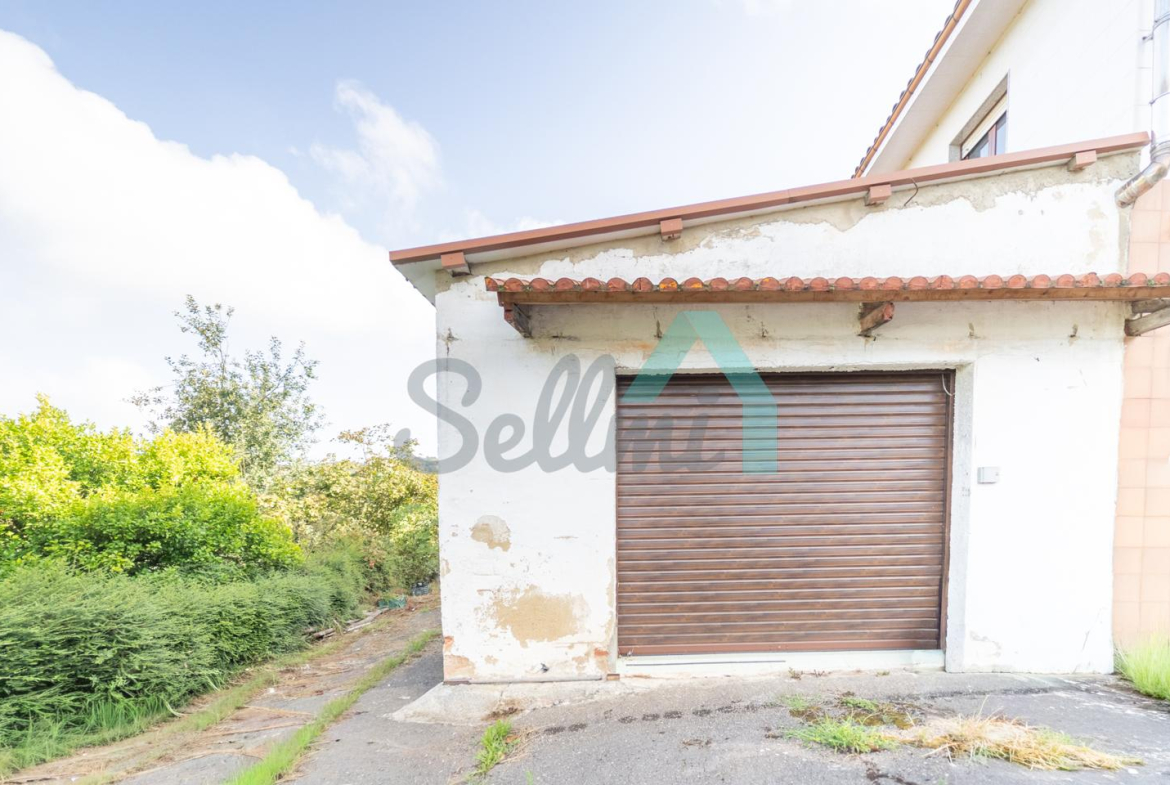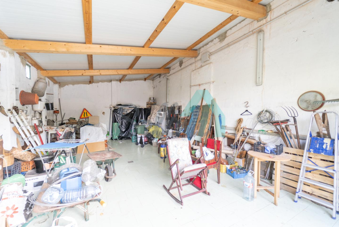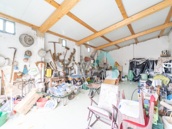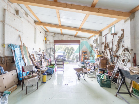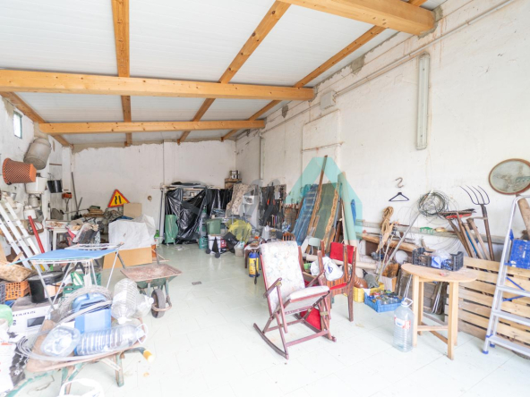 Adosado a la casa hay un garaje con capacidad para tres coches. Las paredes son de bloque, el suelo cerámico y el tejado de panel sándwich (cambiado en 2022). También cuenta con una caseta que se destinaba a ahumar chorizos.