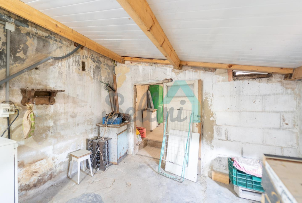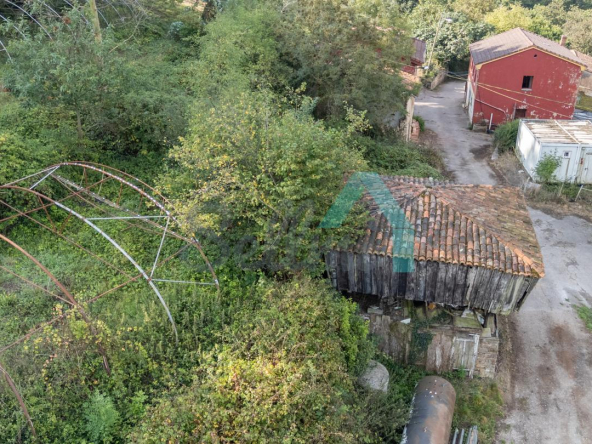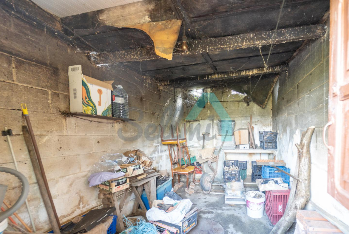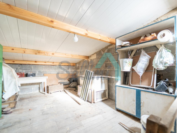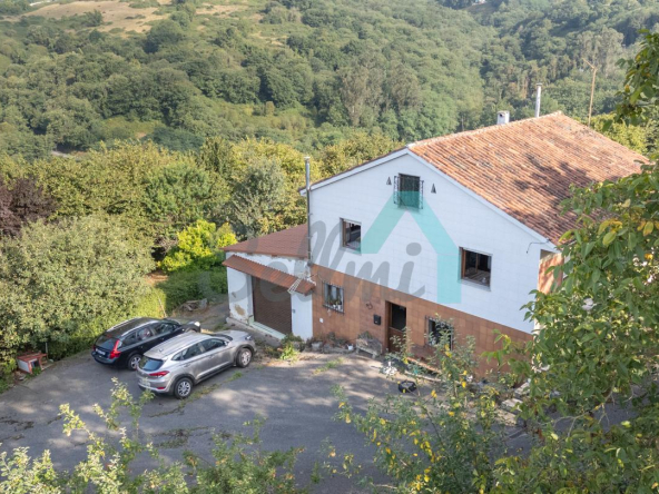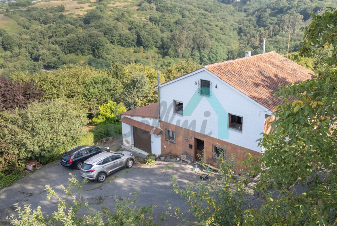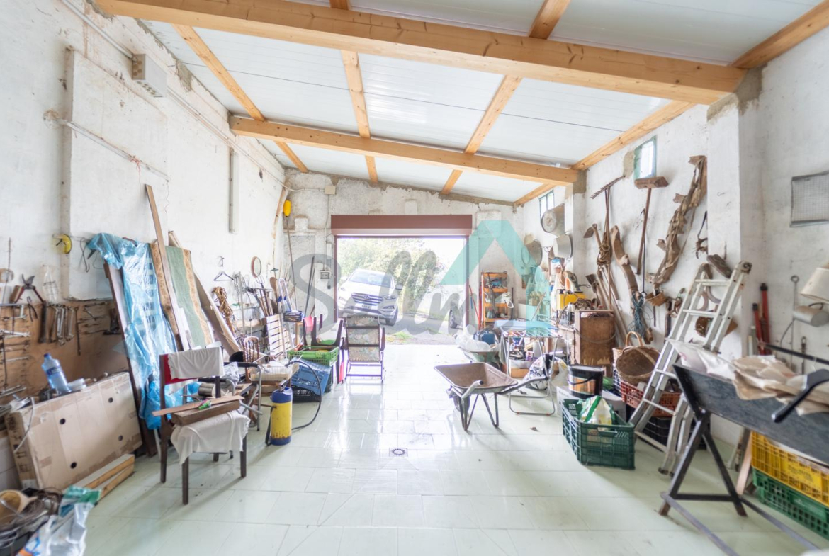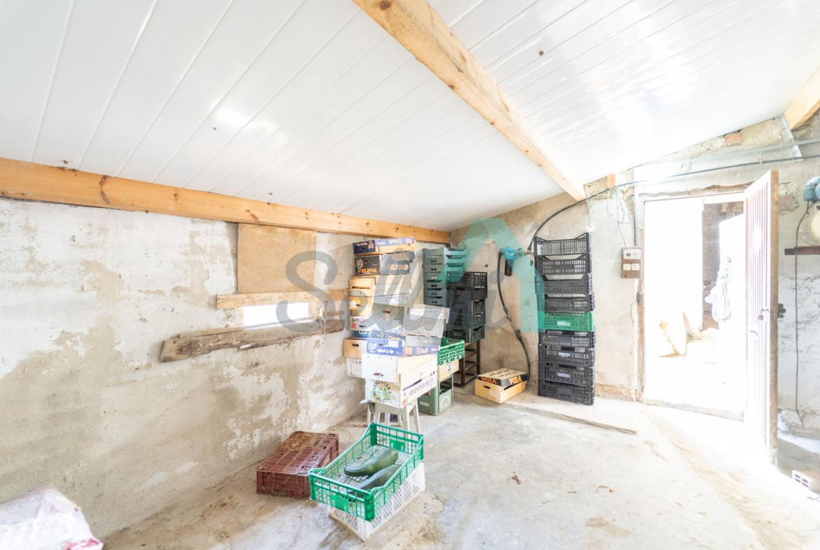 Adosado a la casa hay un garaje con capacidad para tres coches. Las paredes son de bloque, el suelo cerámico y el tejado de panel sándwich (cambiado en 2022). También cuenta con una caseta que se destinaba a ahumar chorizos.
