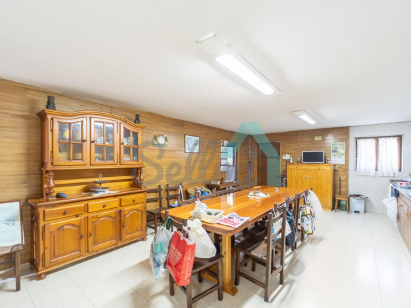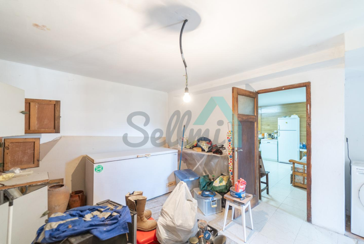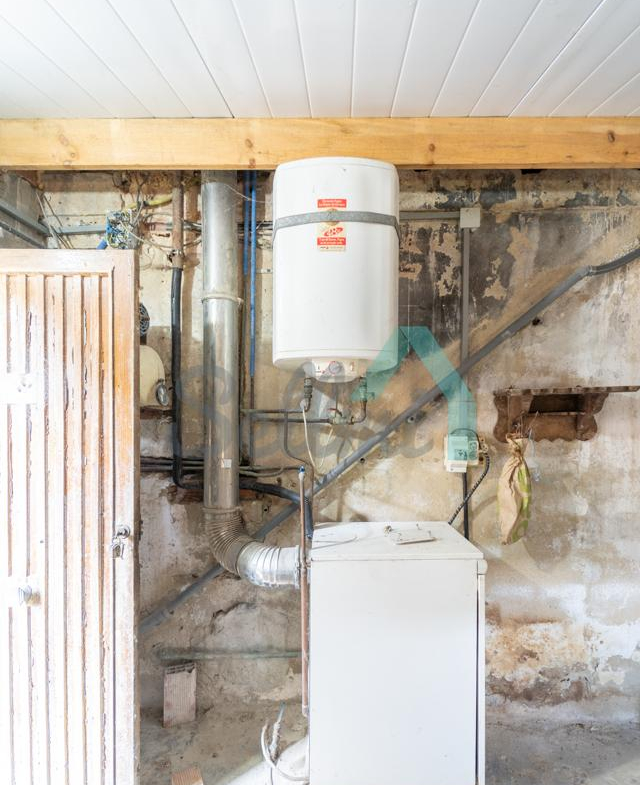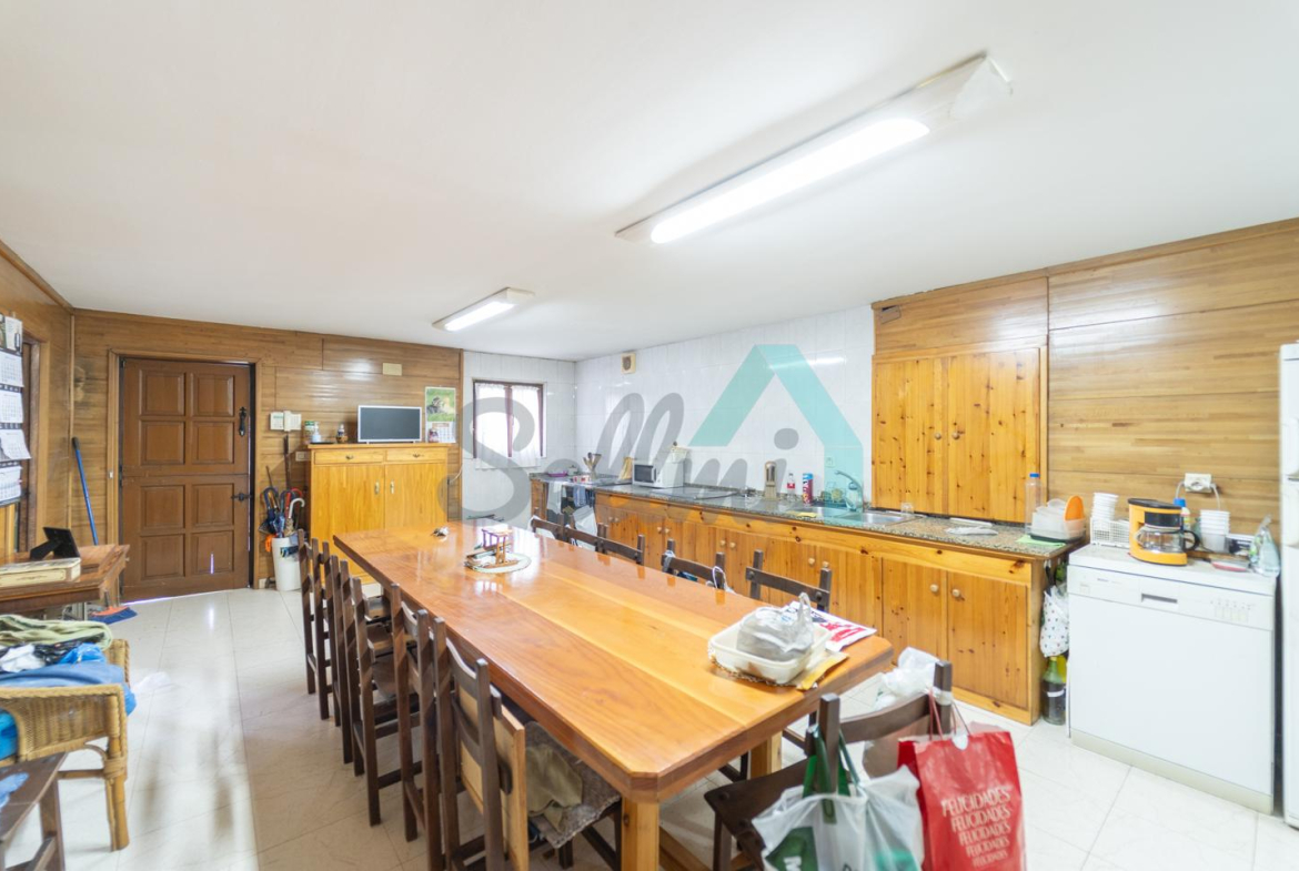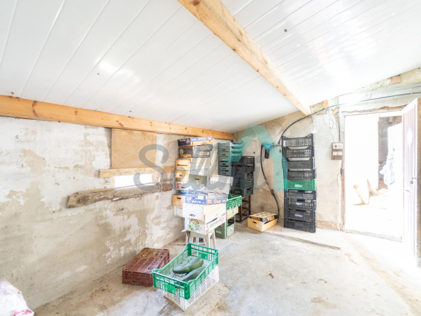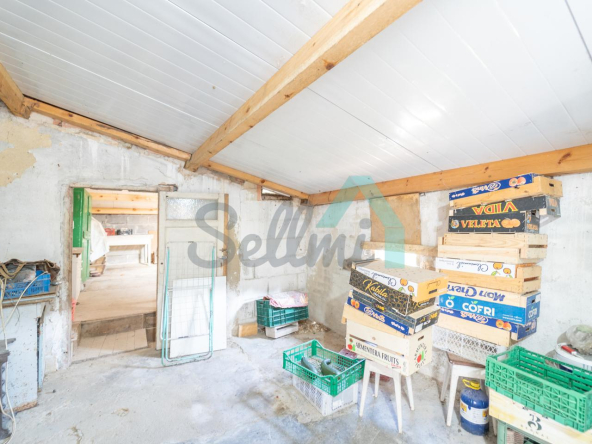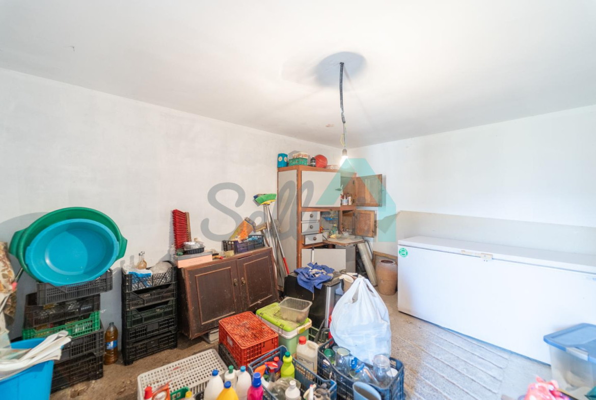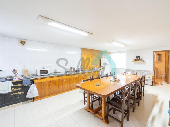 Planta baja: un gran salón con cocina amueblada (cocina de carbón y vitrocerámica funcionando), una habitación, un baño completo y tres espacios destinados a trastero y cuarto de caldera con suelo de hormigón.
