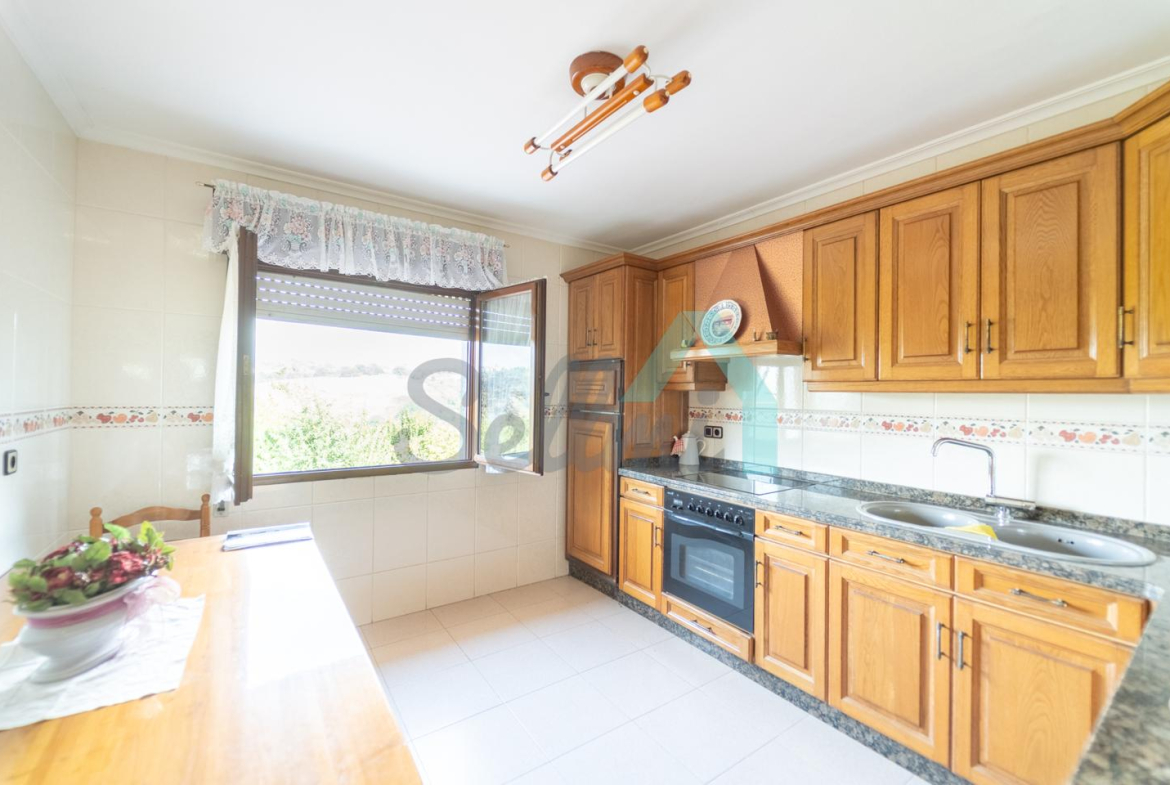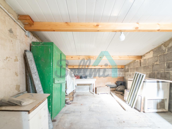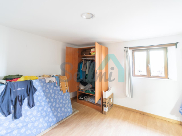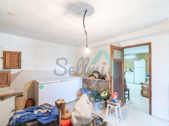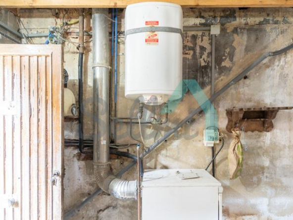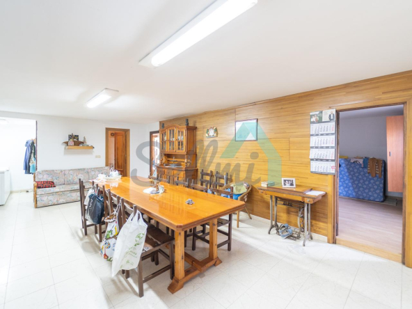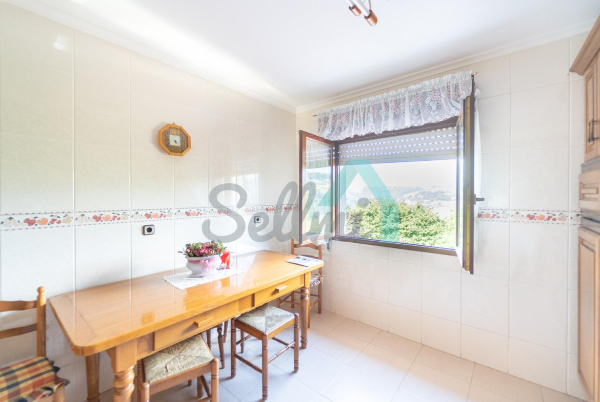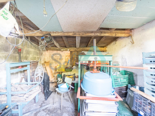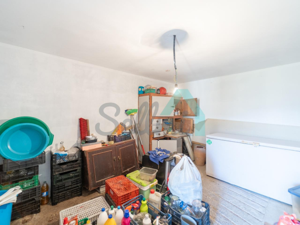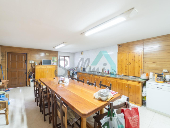 Planta baja: un gran salón con cocina amueblada (cocina de carbón y vitrocerámica funcionando), una habitación, un baño completo y tres espacios destinados a trastero y cuarto de caldera con suelo de hormigón.
