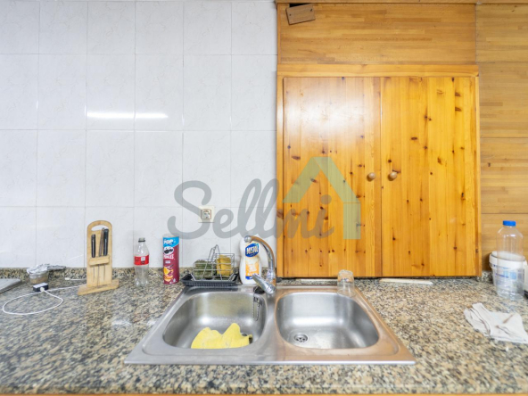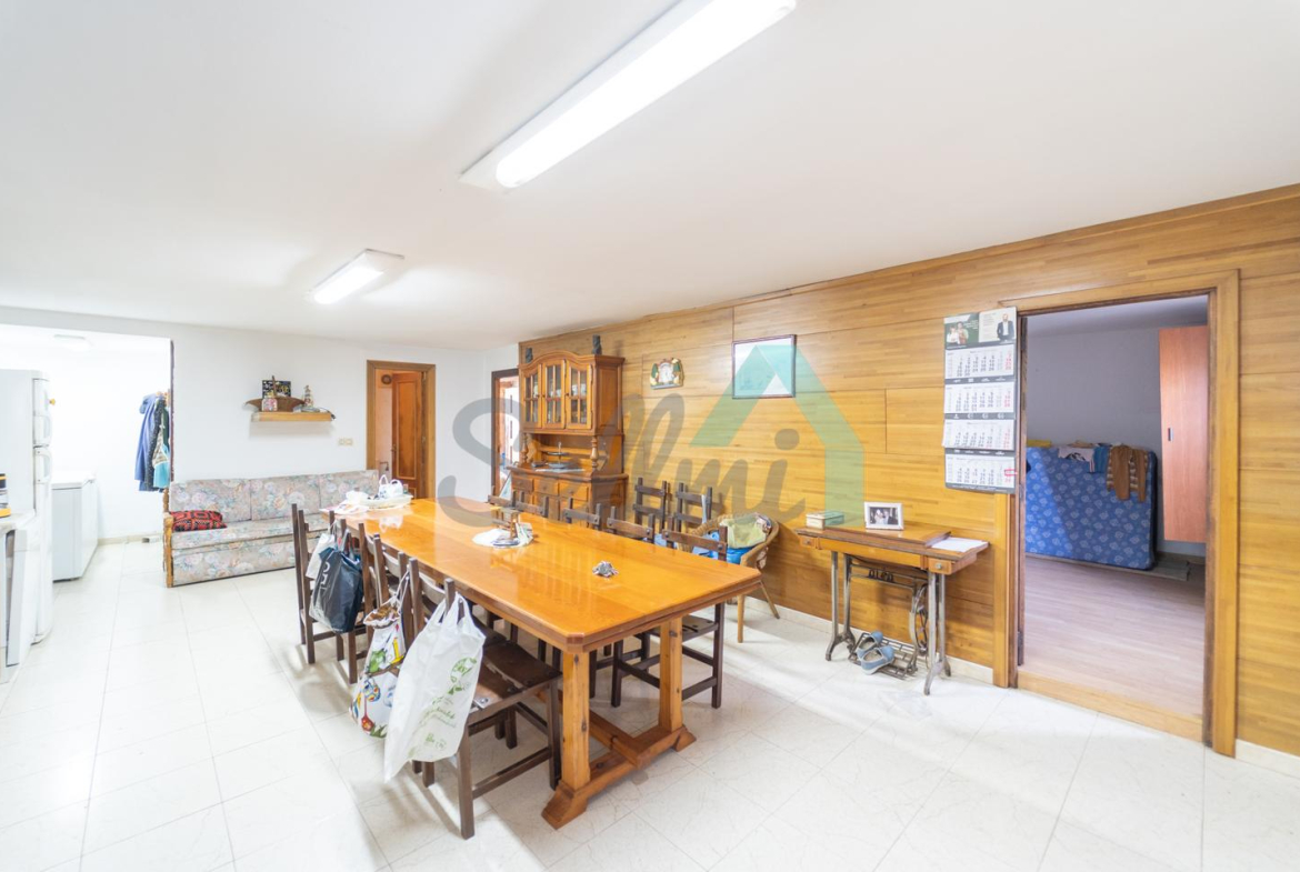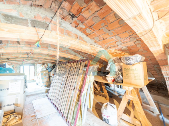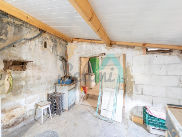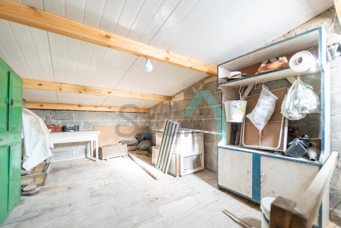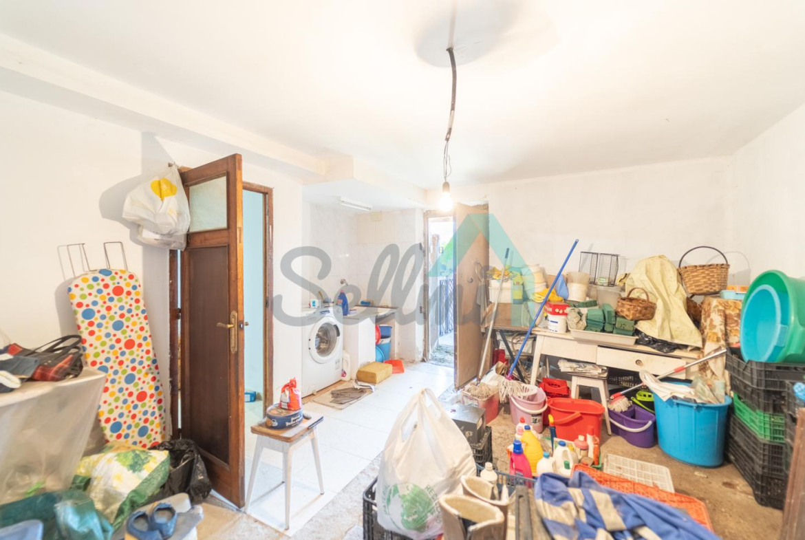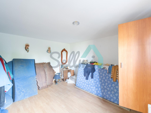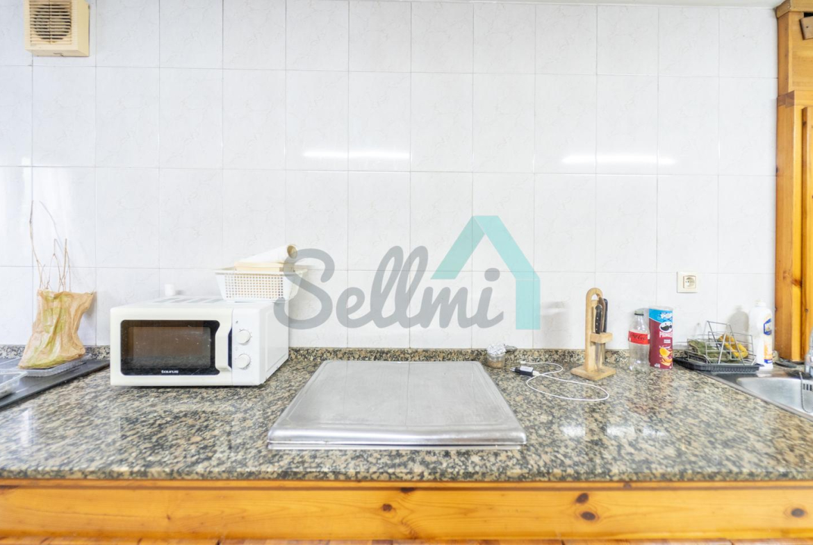 Planta baja: un gran salón con cocina amueblada (cocina de carbón y vitrocerámica funcionando), una habitación, un baño completo y tres espacios destinados a trastero y cuarto de caldera con suelo de hormigón.
