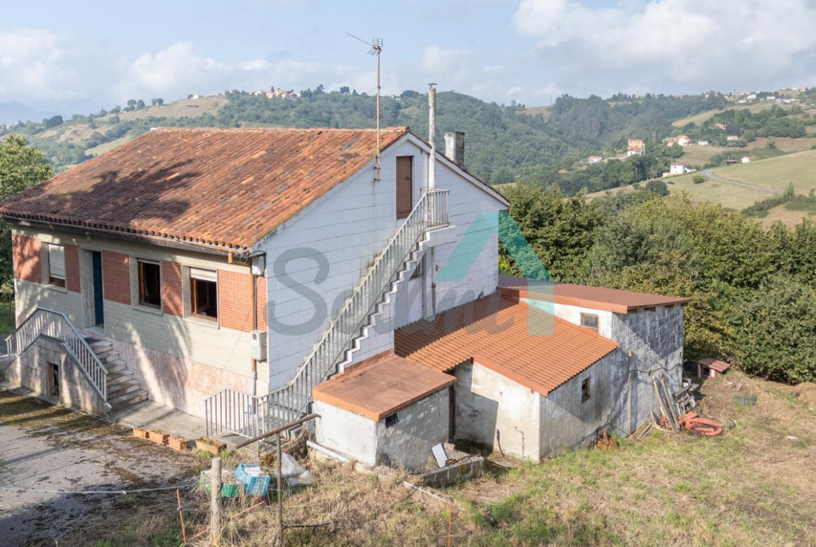 Casa independiente en venta en La Cabaña, una pequeña localidad perteneciente a Oviedo. Se ubica sobre una parcela de 5.222 m2 con frutales (manzanos, avellanos, etc.) y cuenta con otra finca de unos 15.000 m2 , (parte para pasto y otra parte monte) en la que hay varias edificaciones: un hórreo, una casa en ruinas, una caseta de obra y tres estructuras de invernaderos de gran tamaño. El hórreo tiene cerrada la parte de abajo, destinada a almacén, y al lado está el depósito de agua. Ideal para explotación ganadera o agrícola.