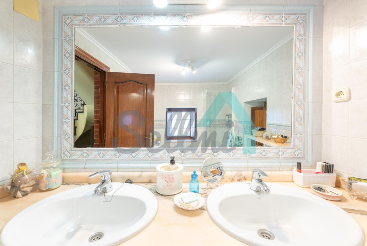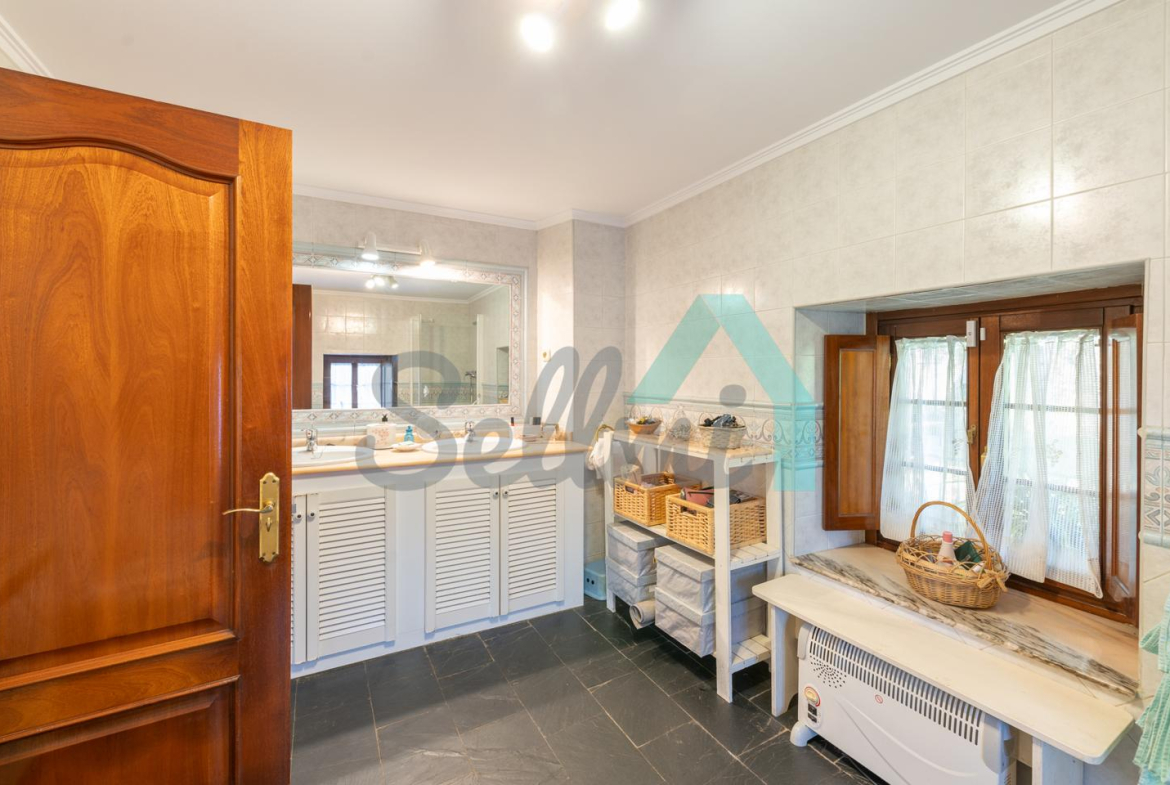 Planta primera: distribuidor, cuatro habitaciones (una de ellas se usa como segundo salón con galería) y un baño completo.