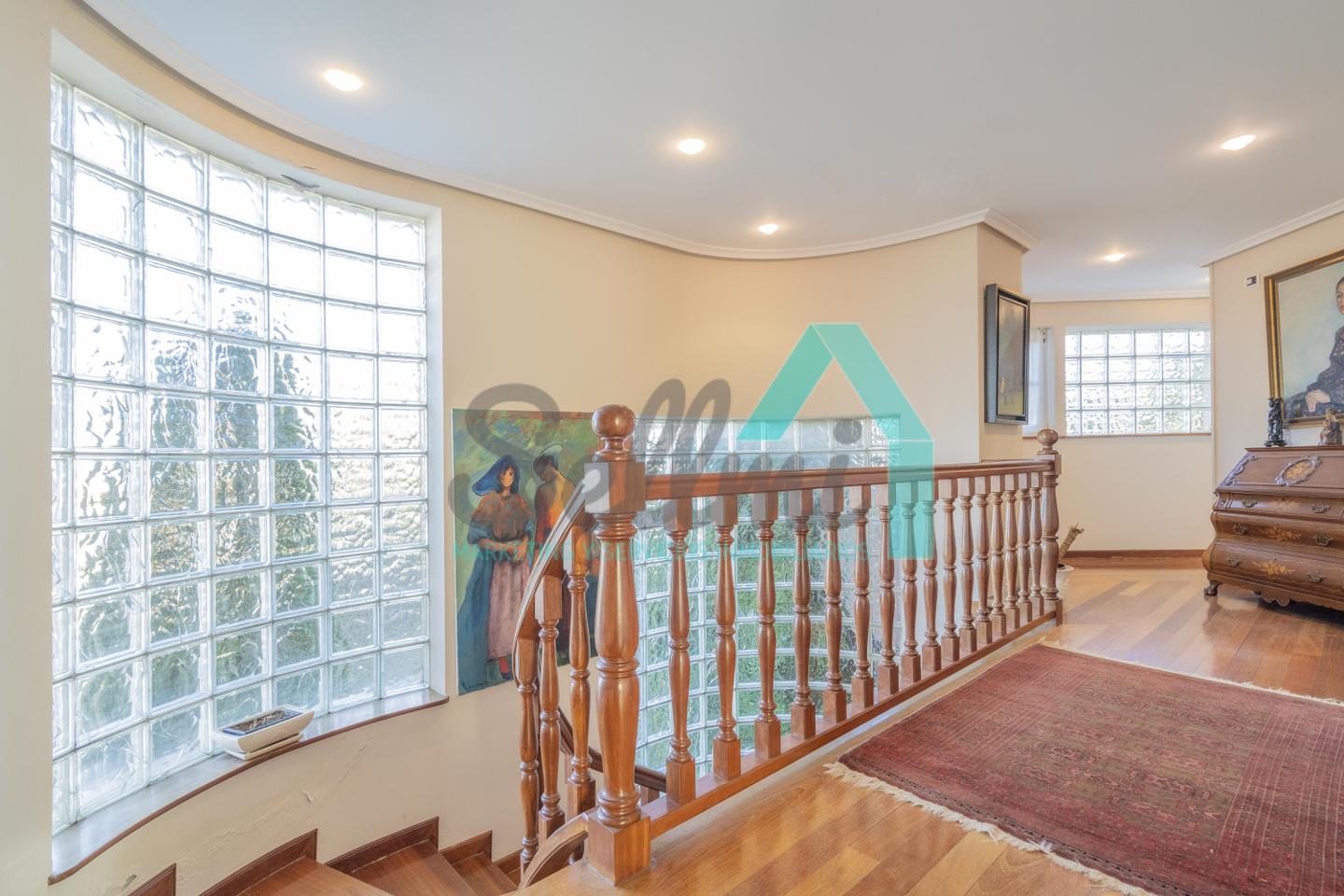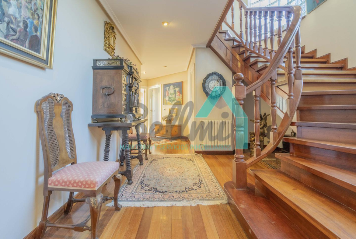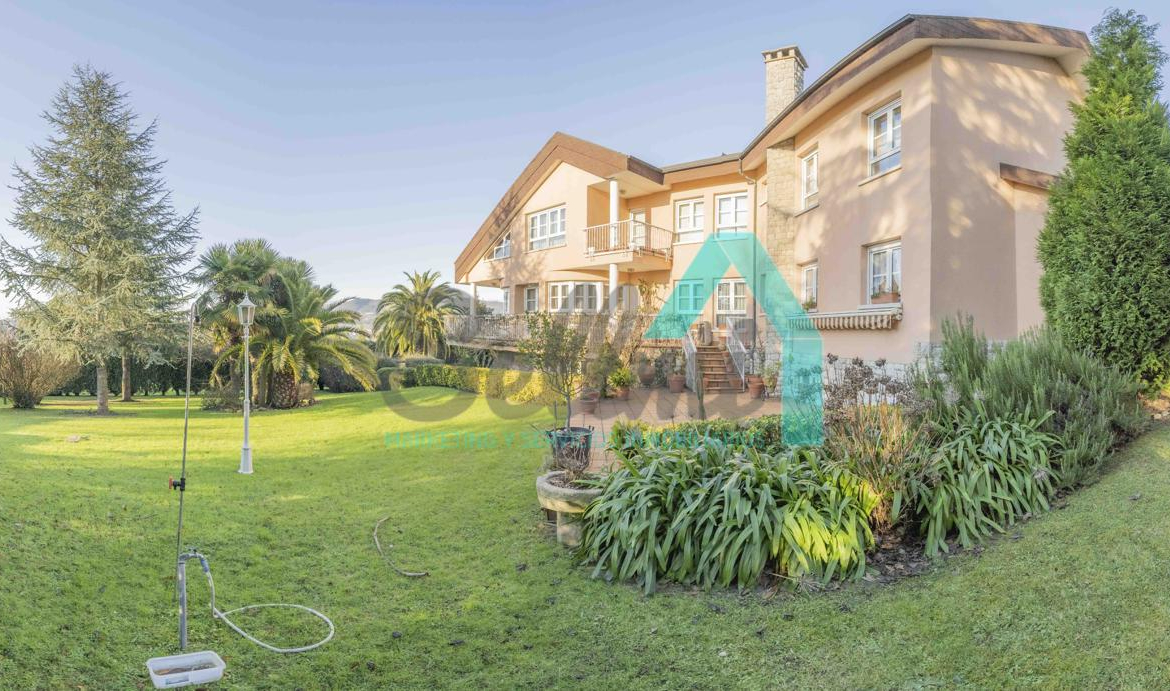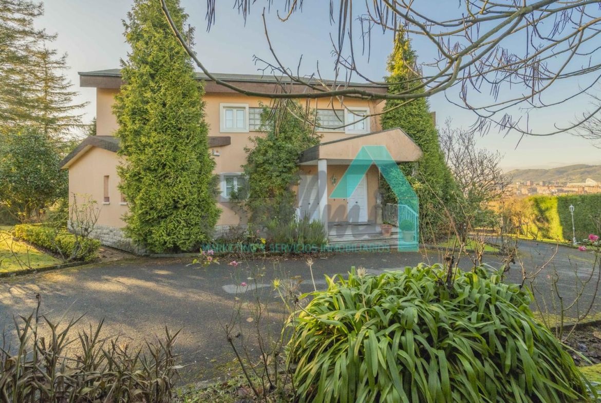 Chalet independiente en venta situado en La Manjoya, a dos kilómetros de Oviedo. Ubicado sobre una parcela de 2.550 m², con un maravilloso jardín y espectaculares vistas sobre la ciudad y la Sierra del Aramo, cuenta con una superficie de 595 m².