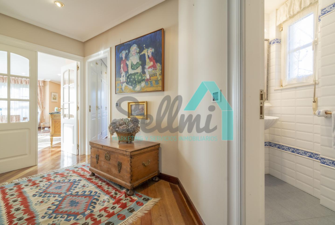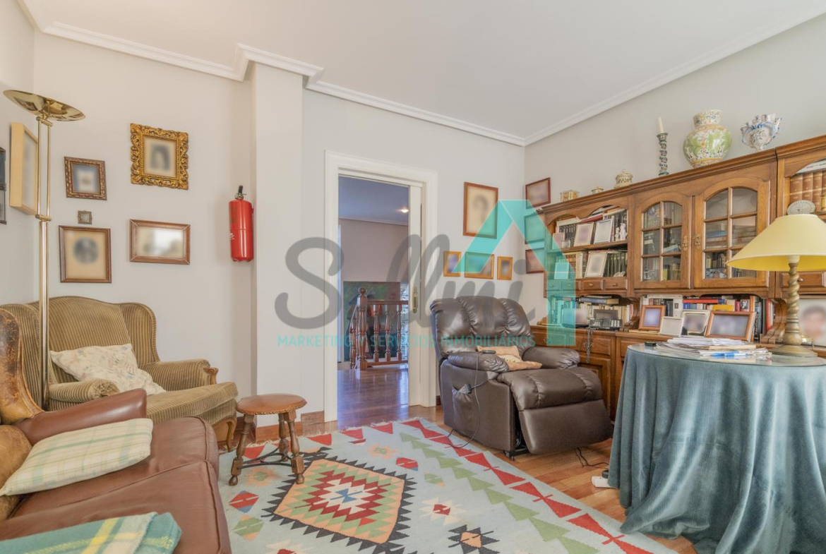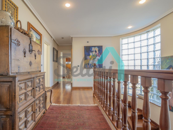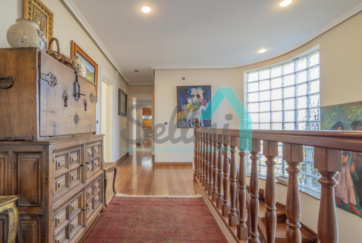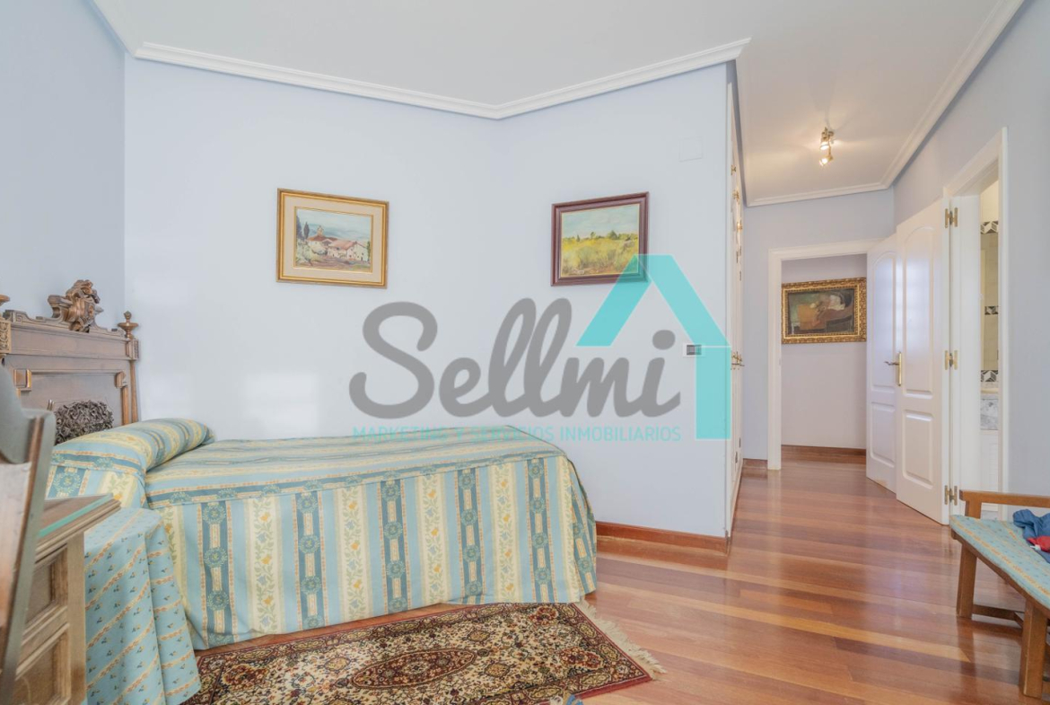 Chalet independiente en venta situado en La Manjoya, a dos kilómetros de Oviedo. Ubicado sobre una parcela de 2.550 m², con un maravilloso jardín y espectaculares vistas sobre la ciudad y la Sierra del Aramo, cuenta con una superficie de 595 m².
