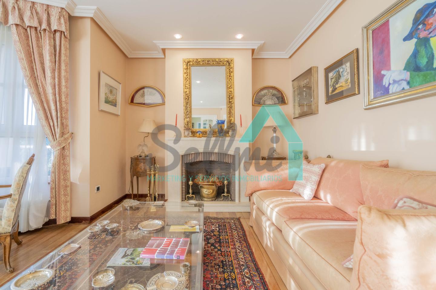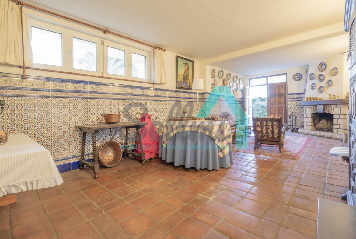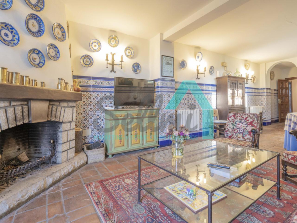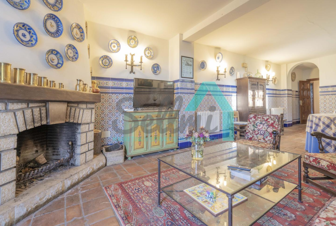 •Gran salón con chimenea y acceso a la terraza.