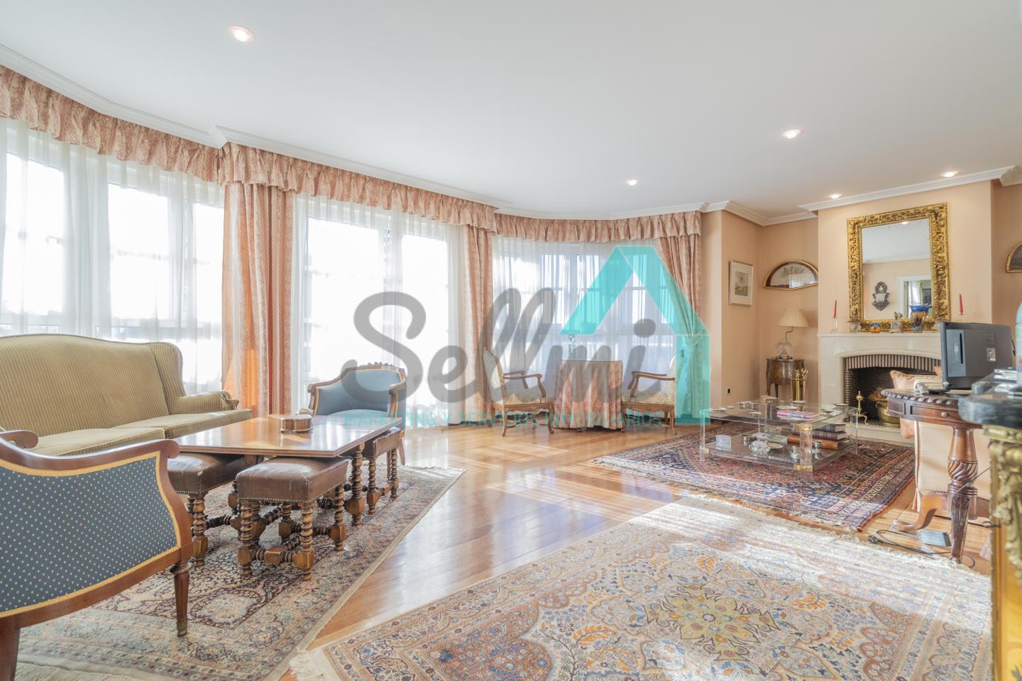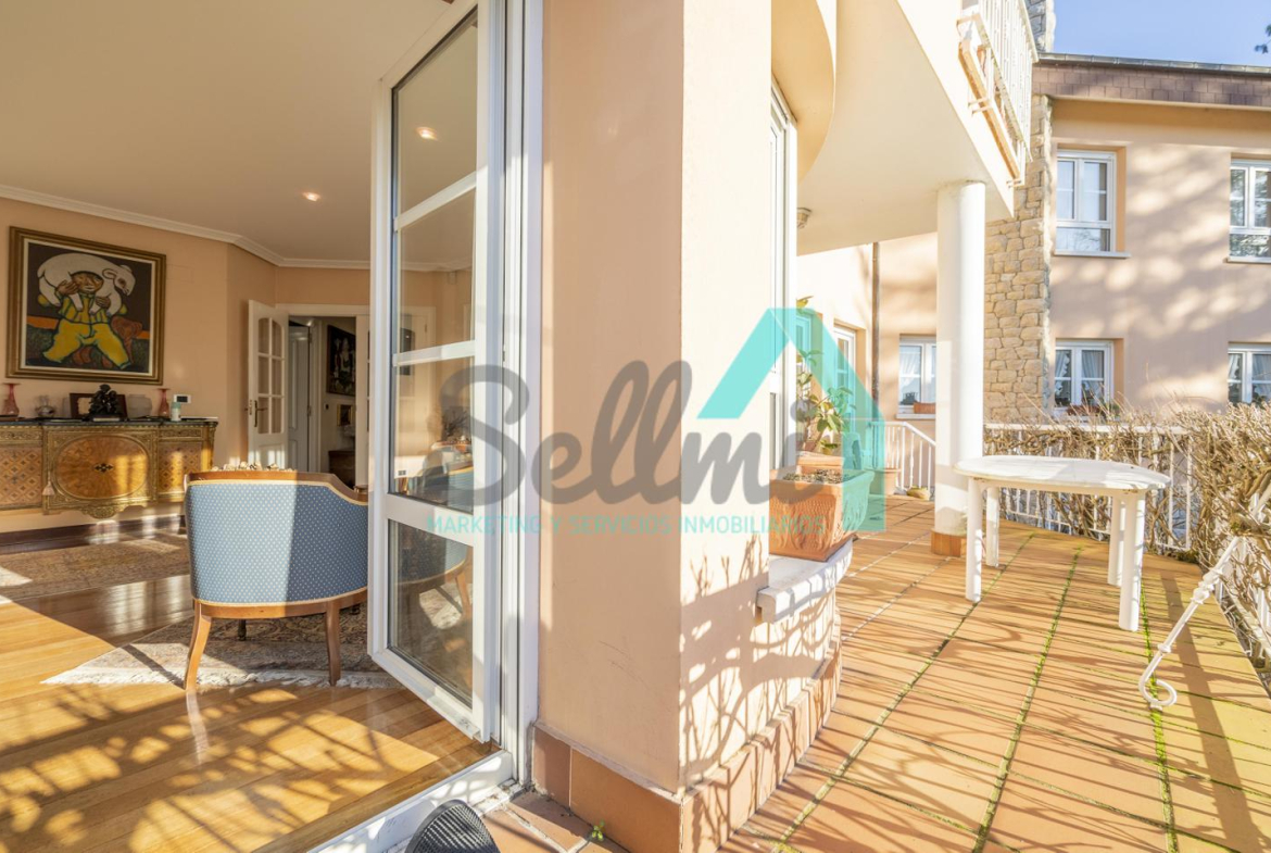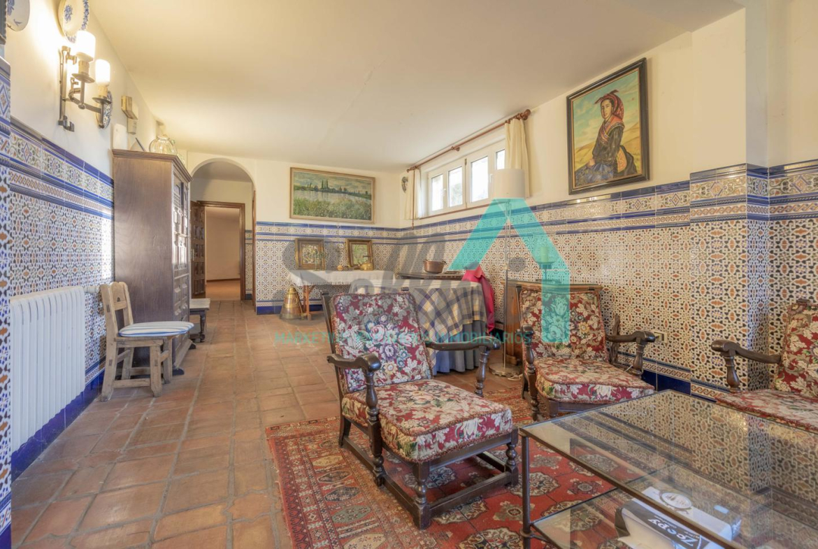 •Gran salón con chimenea y acceso a la terraza.