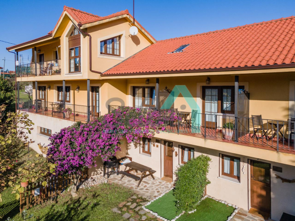 Construida con primeras calidades, dispone de suelos de tarima de roble y gres, ventanas de doble acristalamiento (carpintería exterior Kömmerling), calefacción de gasoil en la vivienda principal y eléctrica (con contadores individuales) en cada apartamento, etc. Orientación sur.
