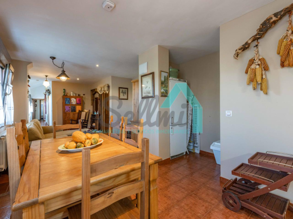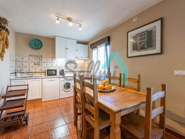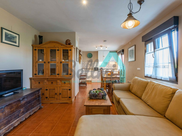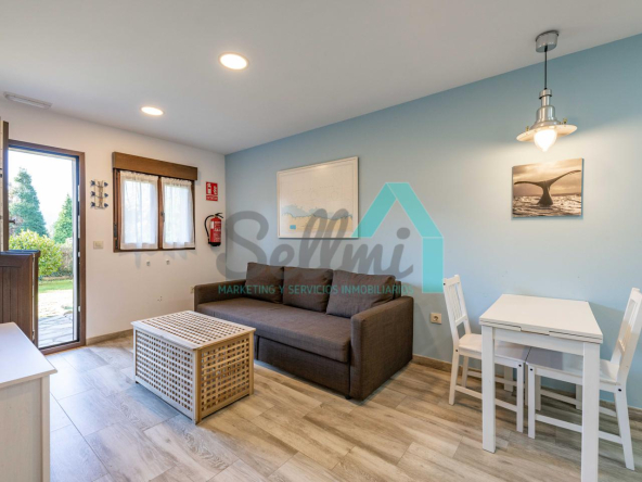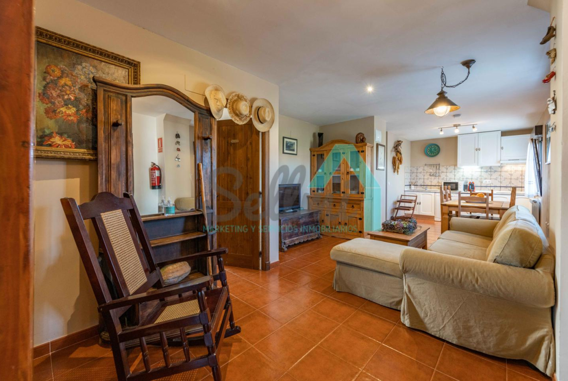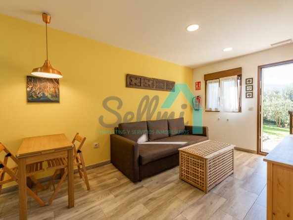 Zona de apartamentos: en la planta baja se encuentran dos apartamentos totalmente independientes y con la misma superficie y distribución. Cuenta cada uno de ellos con salón comedor, cocina amueblada y equipada, una habitación y un baño completo. En el exterior cuentan con porche y jardín. Actualmente están funcionando como apartamentos turístico rurales dados de alta en Turismo.