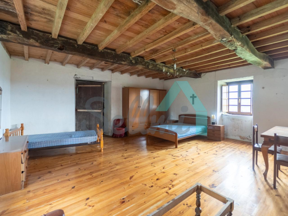 Cuenta con muros de piedra de 90 cm de grosor, vigas de castaño, tejado reparado (de pizarra y madera de castaño), ventanas de madera de Iroko con doble acristalamiento y contraventanas (cambiadas hace seis años), etc. Luz y agua dados de alta.