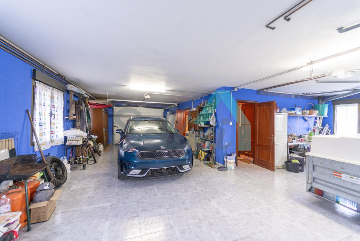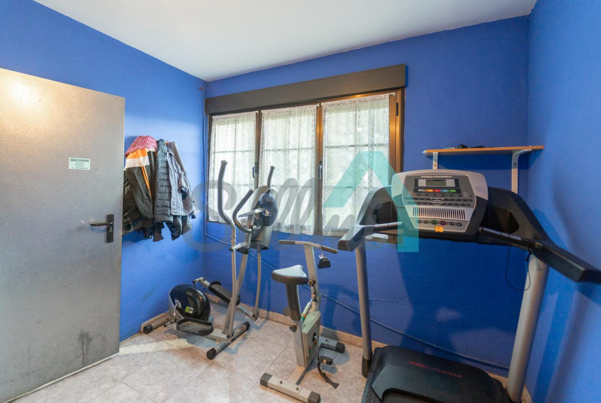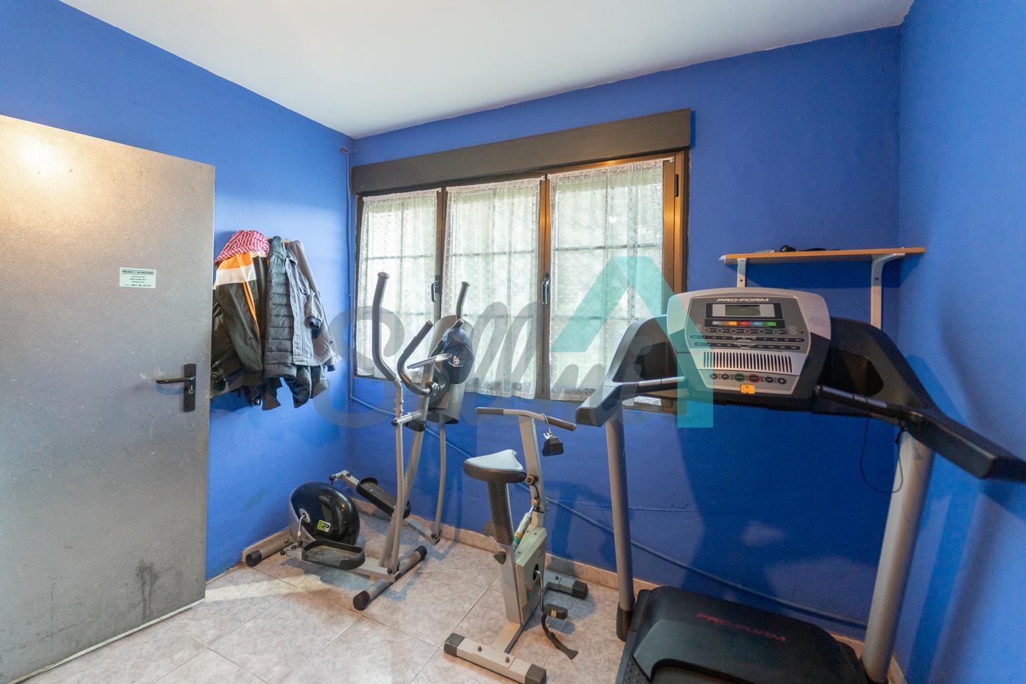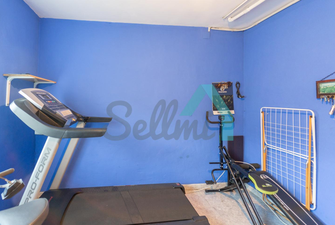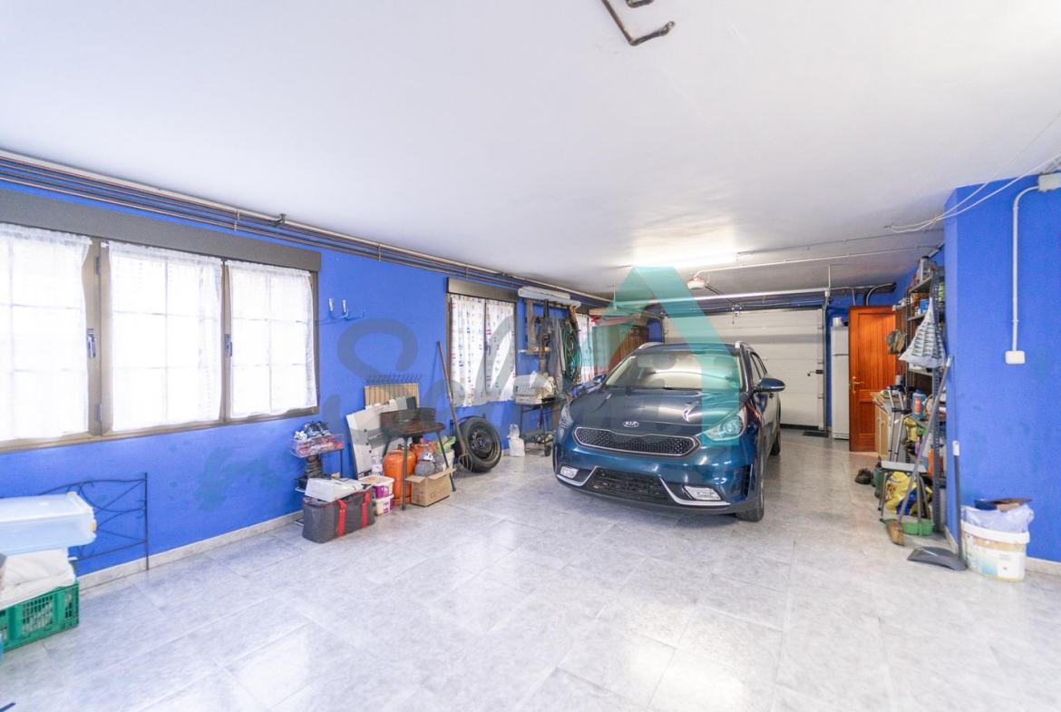 Planta baja: amplio garaje con portón automático, cuarto de caldera y gimnasio/lavandería.