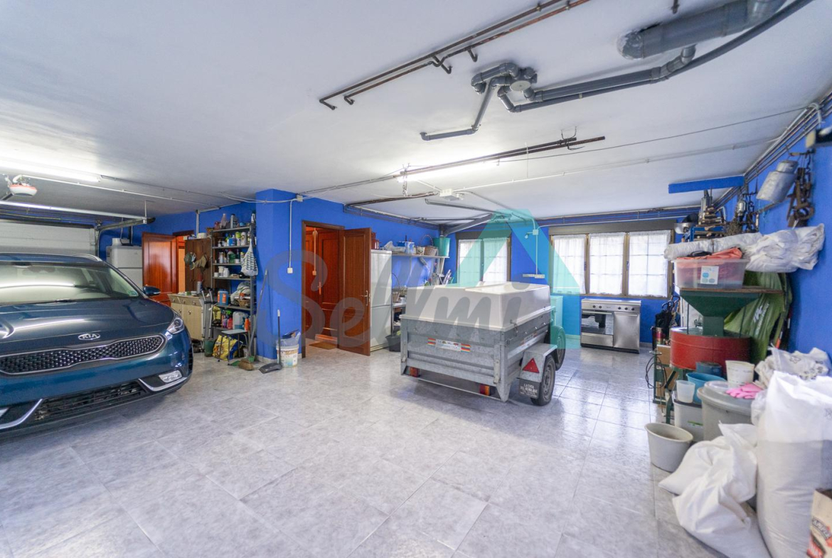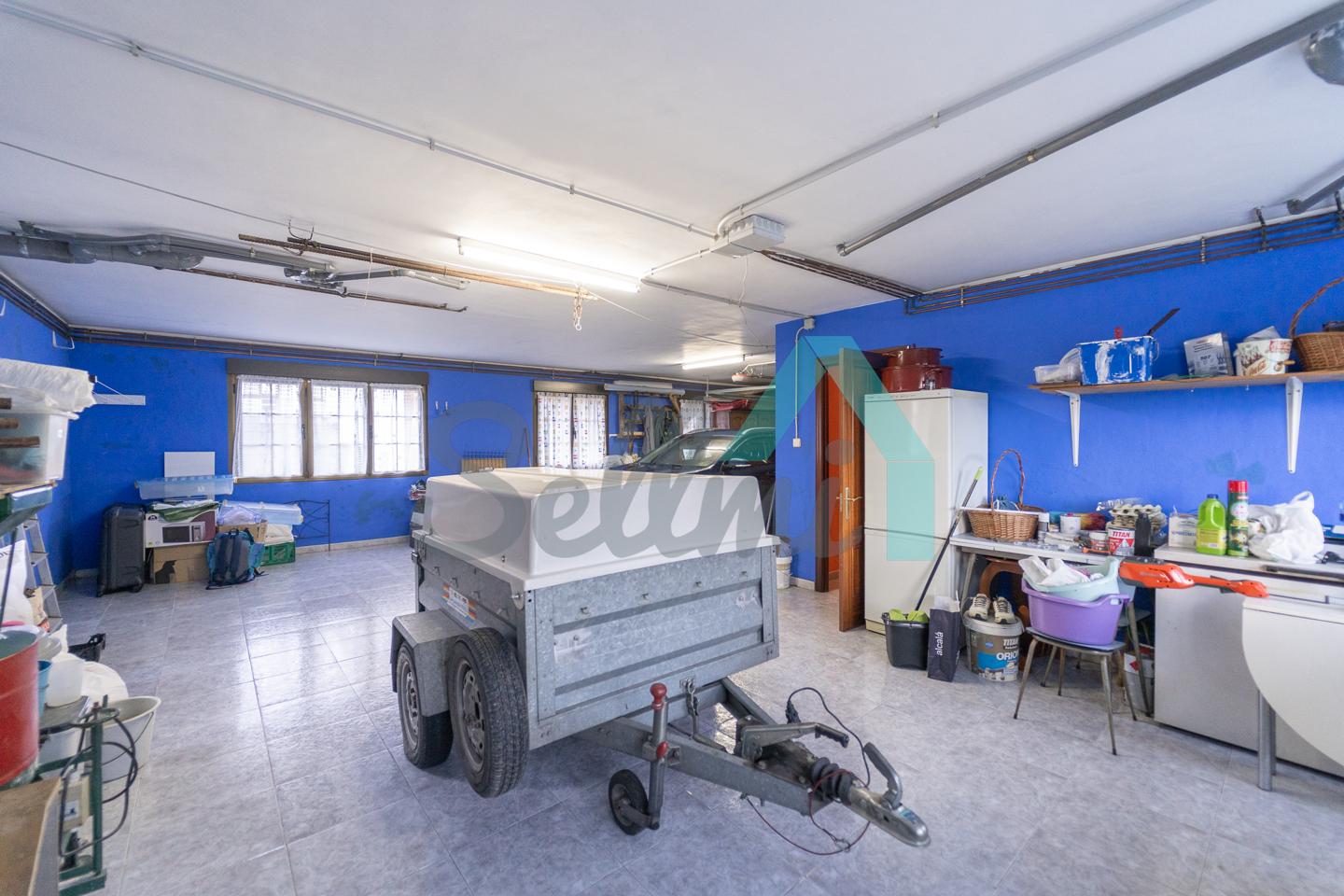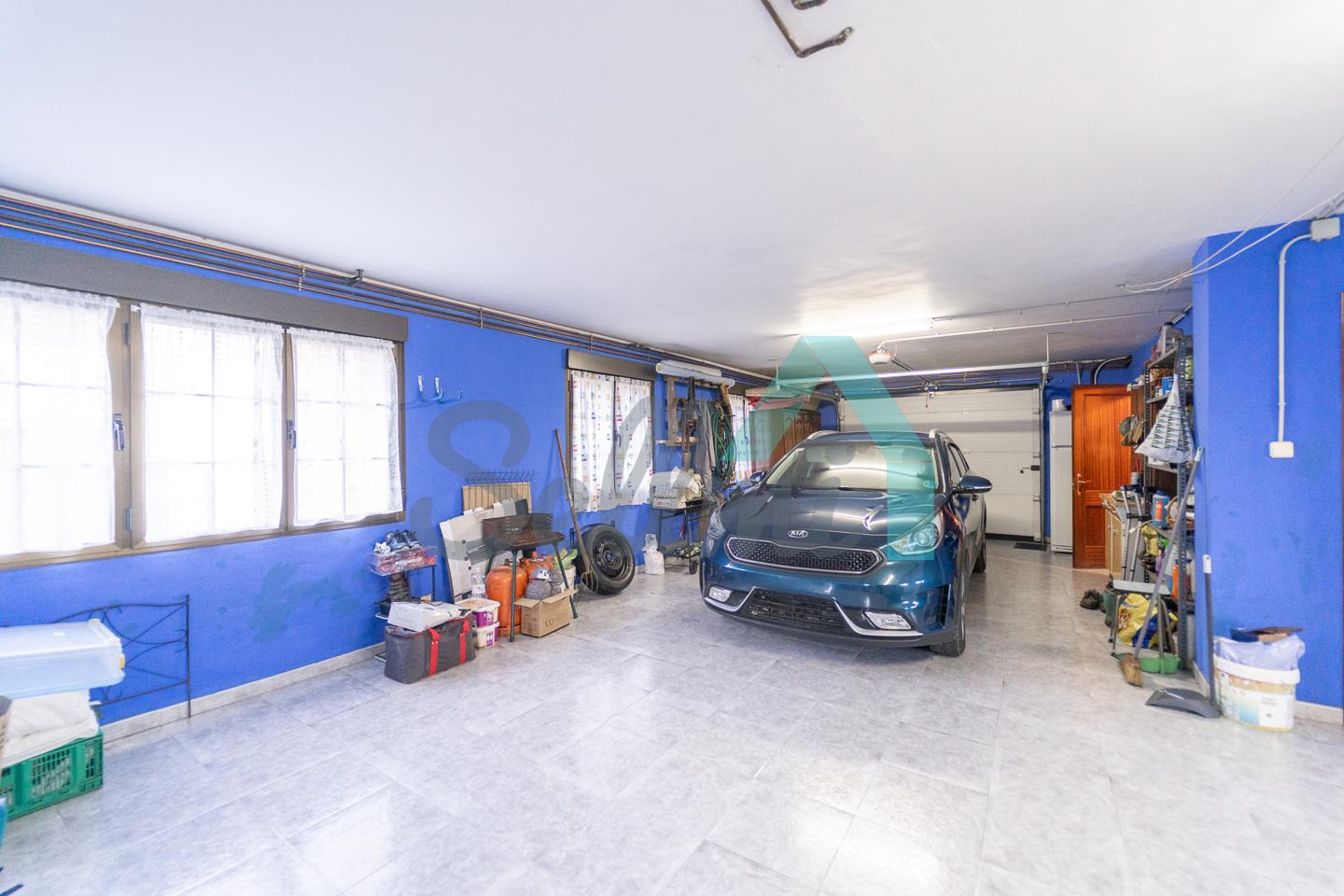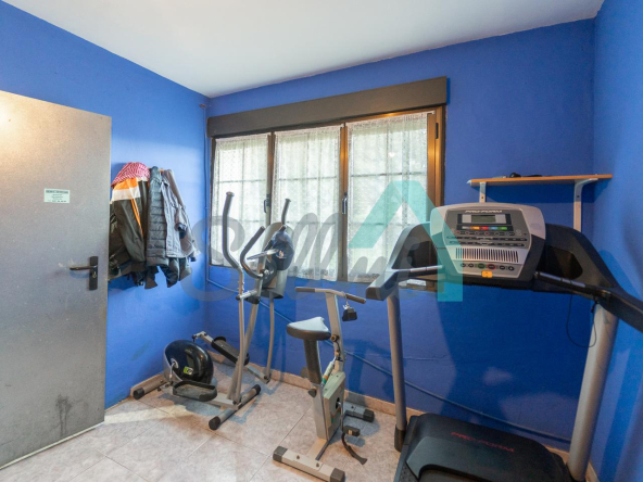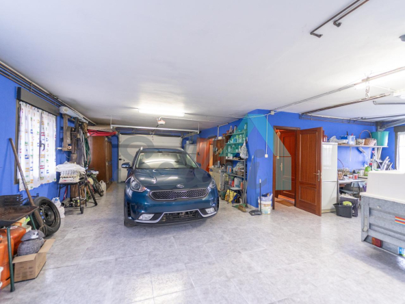 Planta baja: amplio garaje con portón automático, cuarto de caldera y gimnasio/lavandería.