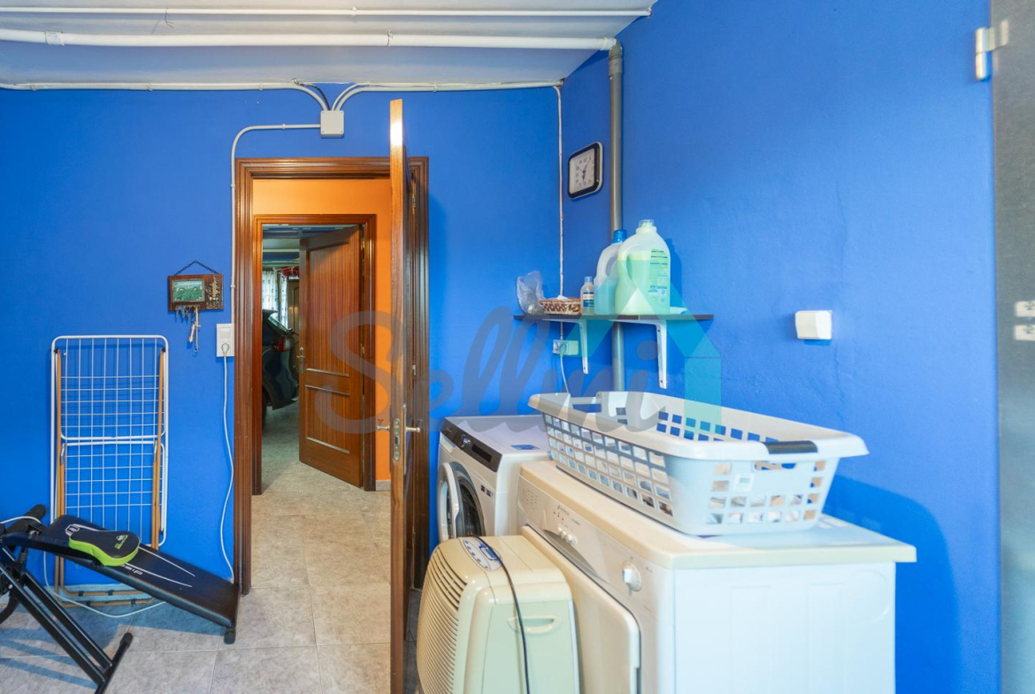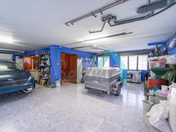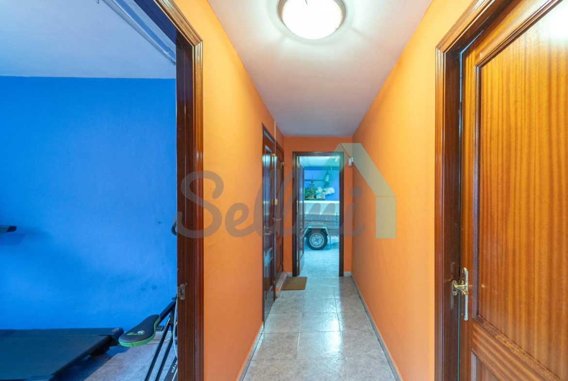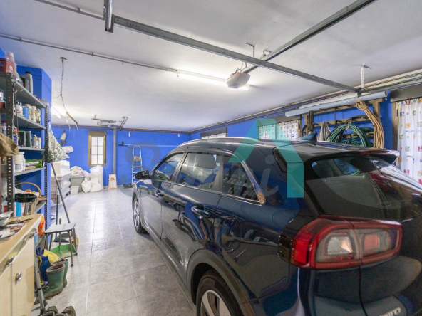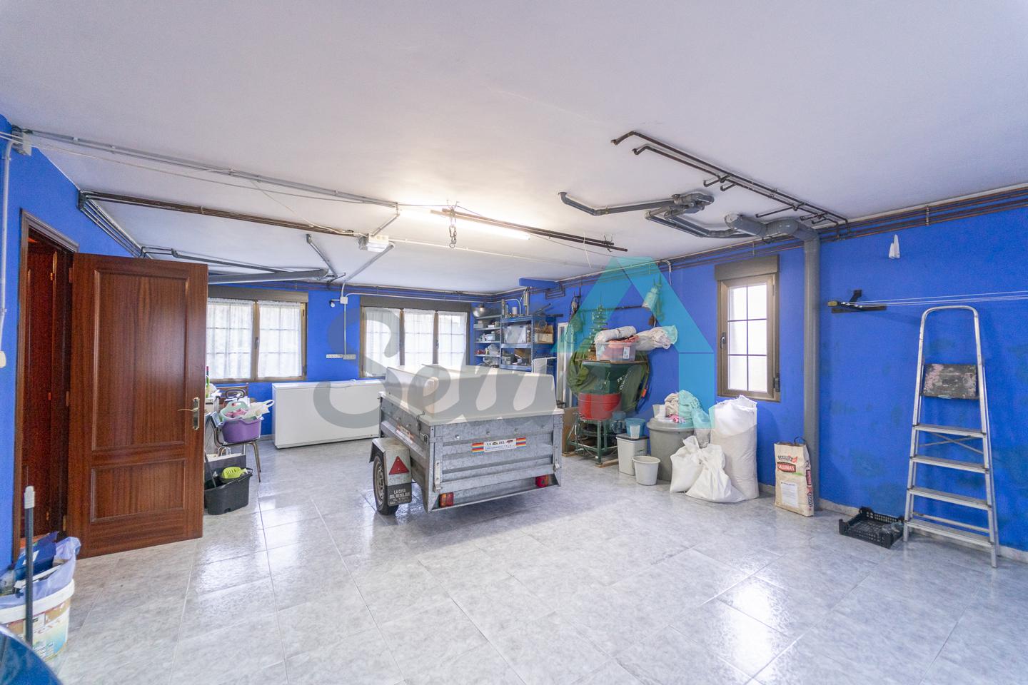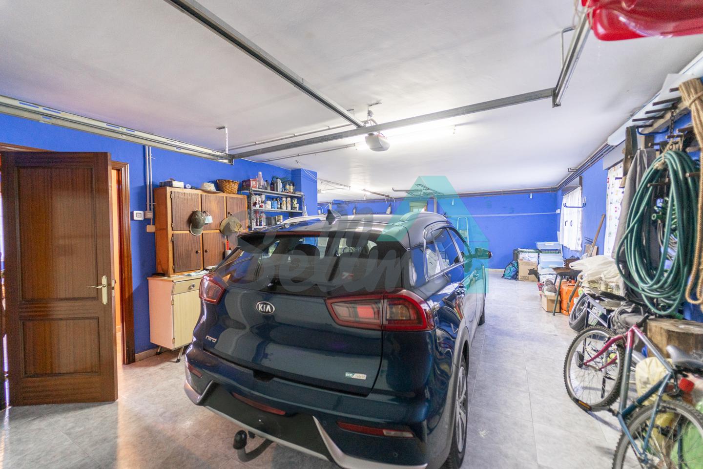 Planta baja: amplio garaje con portón automático, cuarto de caldera y gimnasio/lavandería.