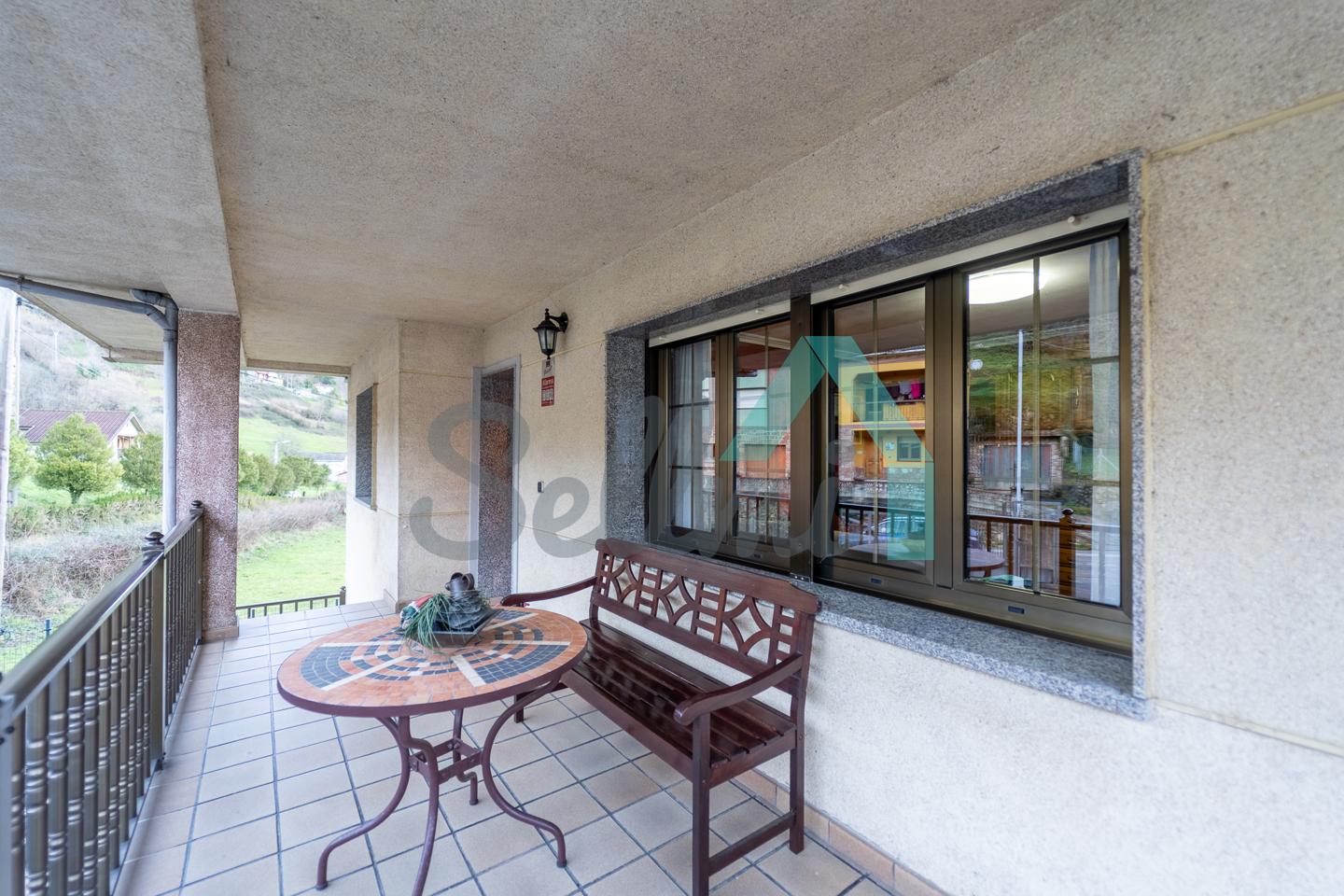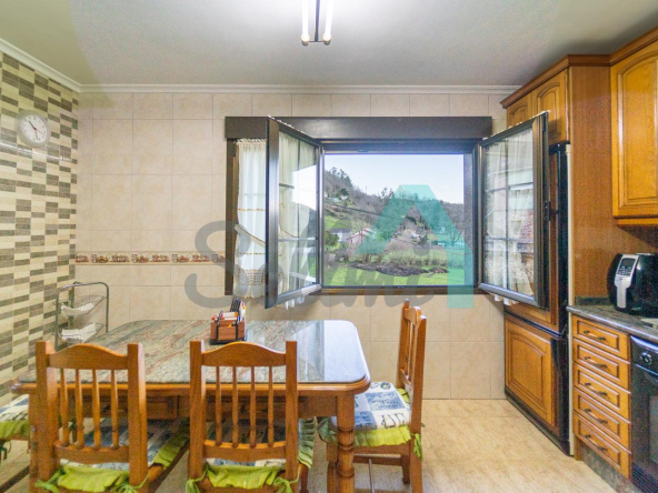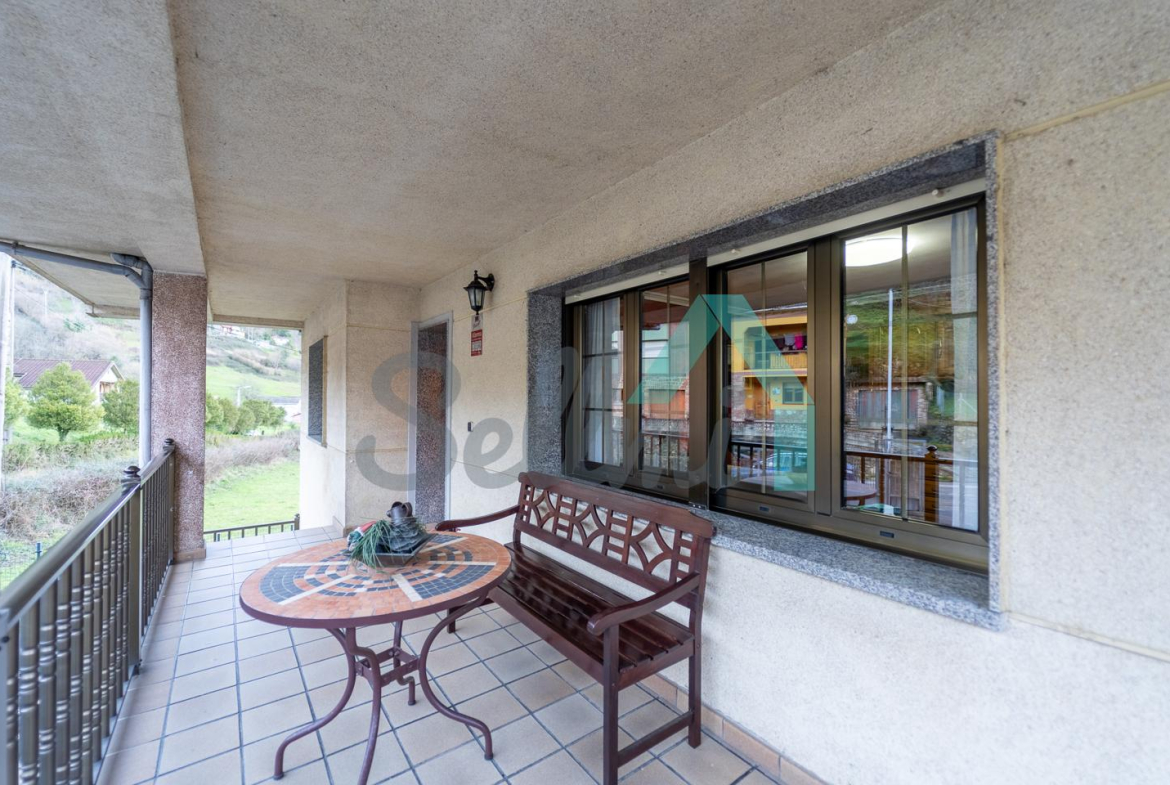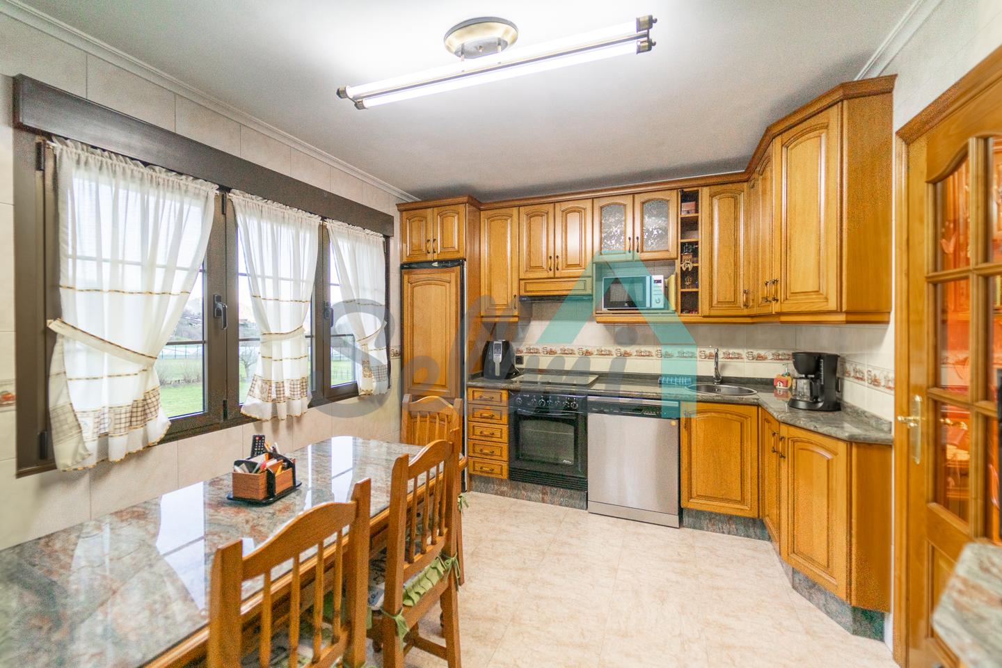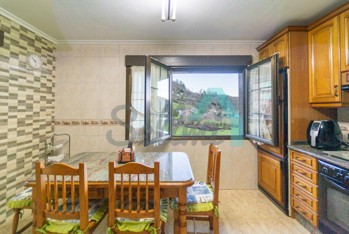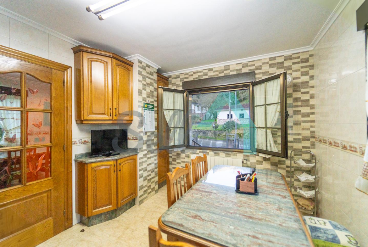 La casa se vende totalmente amueblada y equipada y dispone de suelos de tarima y gres, ventanas de doble acristalamiento, calefacción individual de gasoil, puerta de seguridad, etc.