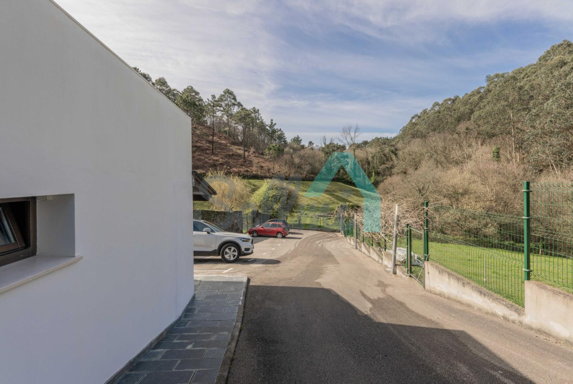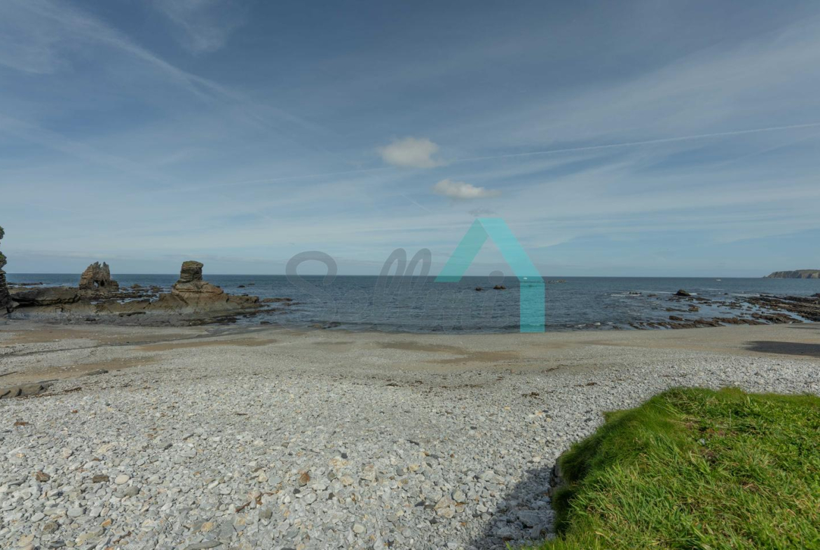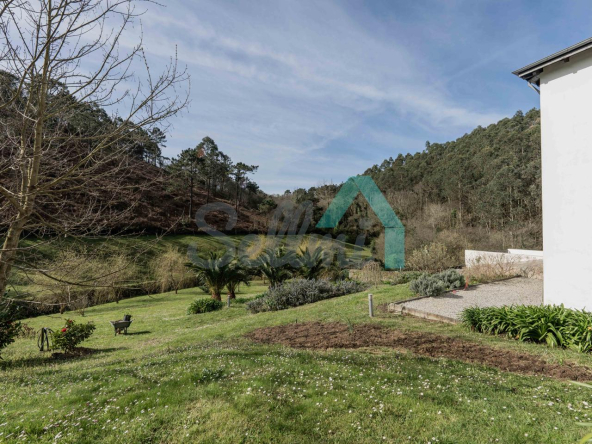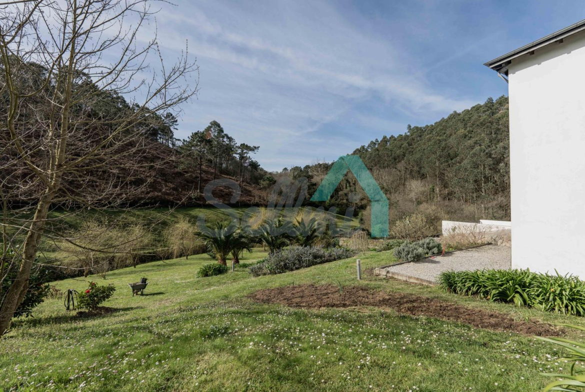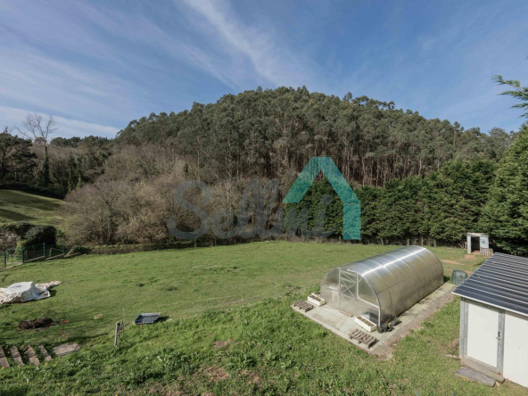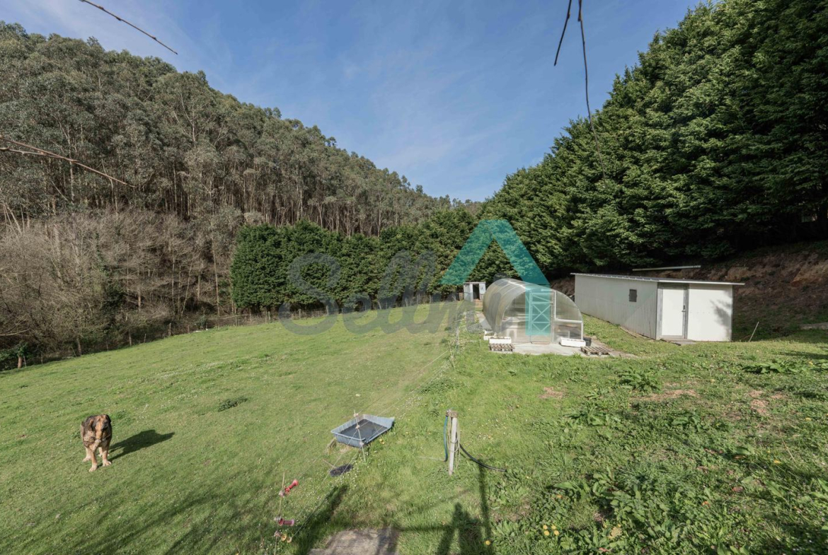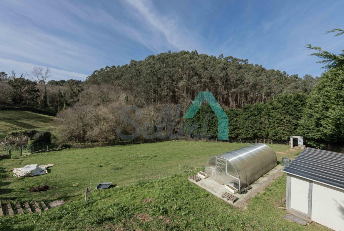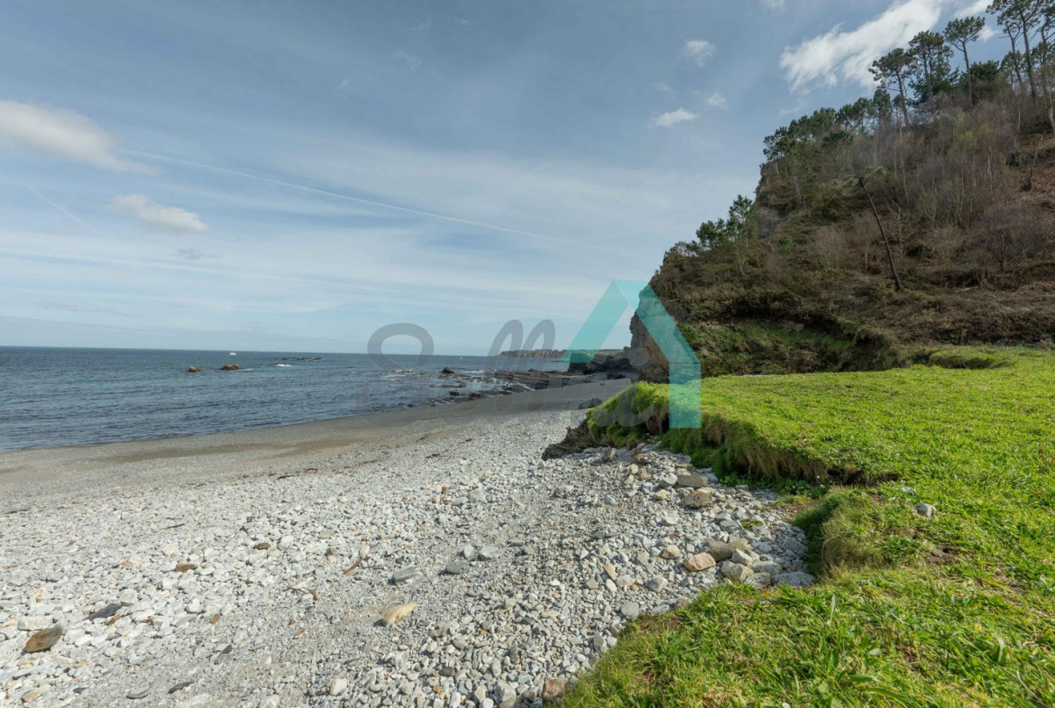 Fuera de la parcela amurallada, en un prado y una franja de monte que totalizan unos 8.000 m2, dos arroyos surcan el terreno de la propiedad y convergen junto a las ruinas de un antiguo molino, desde donde descienden hasta la Playa de Portizuelo.