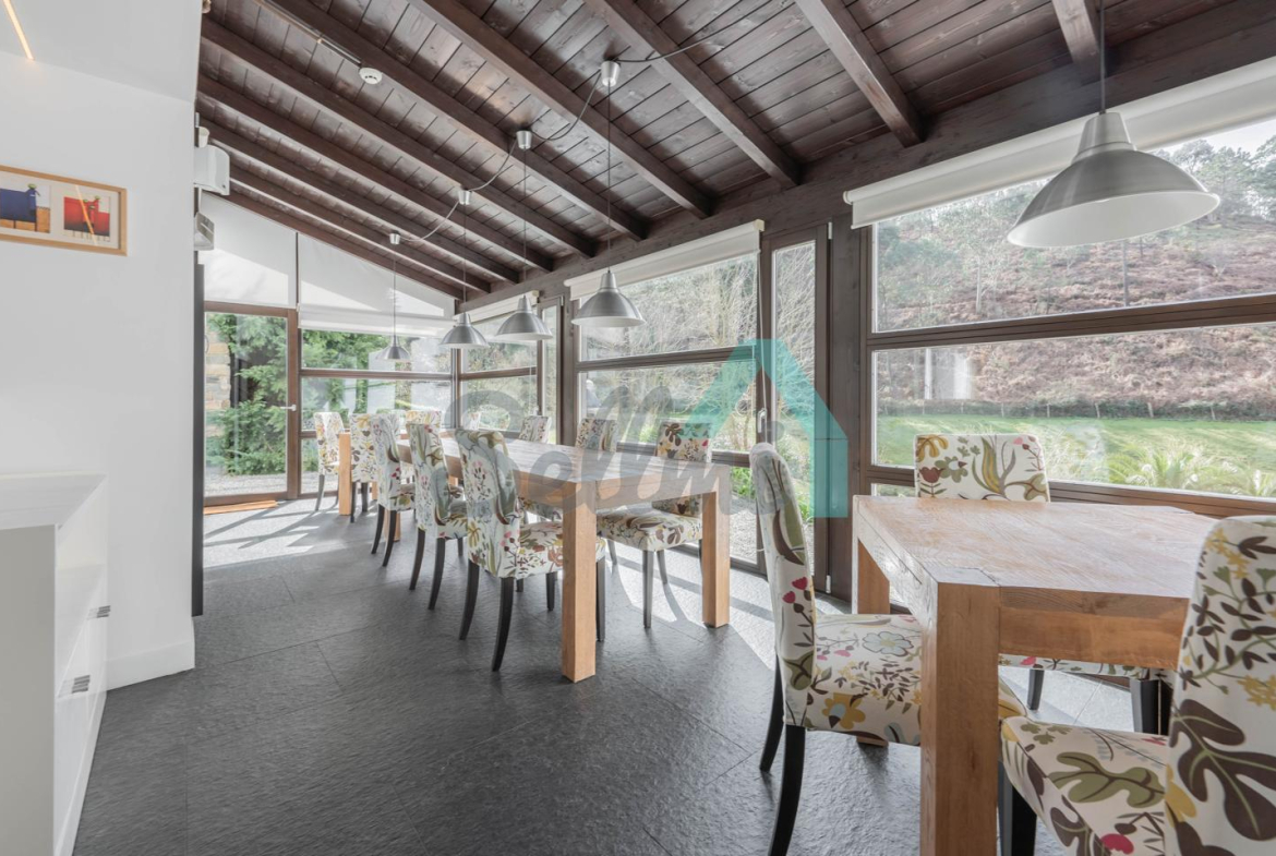 Dispone de ascensor, calefacción y ACS con bomba de calor por geotermia, ventanas de madera de iroko de doble acristalamiento y cámara de gas argón, suelos porcelánicos en salón y comedor, suelos de mármol en todas las habitaciones, escaleras y rellanos, iluminación led, etc.
