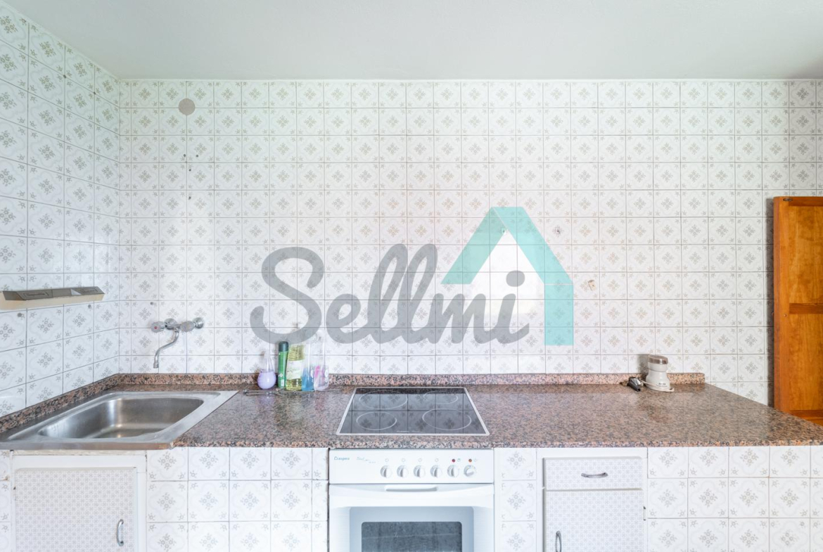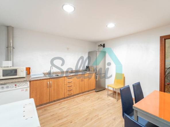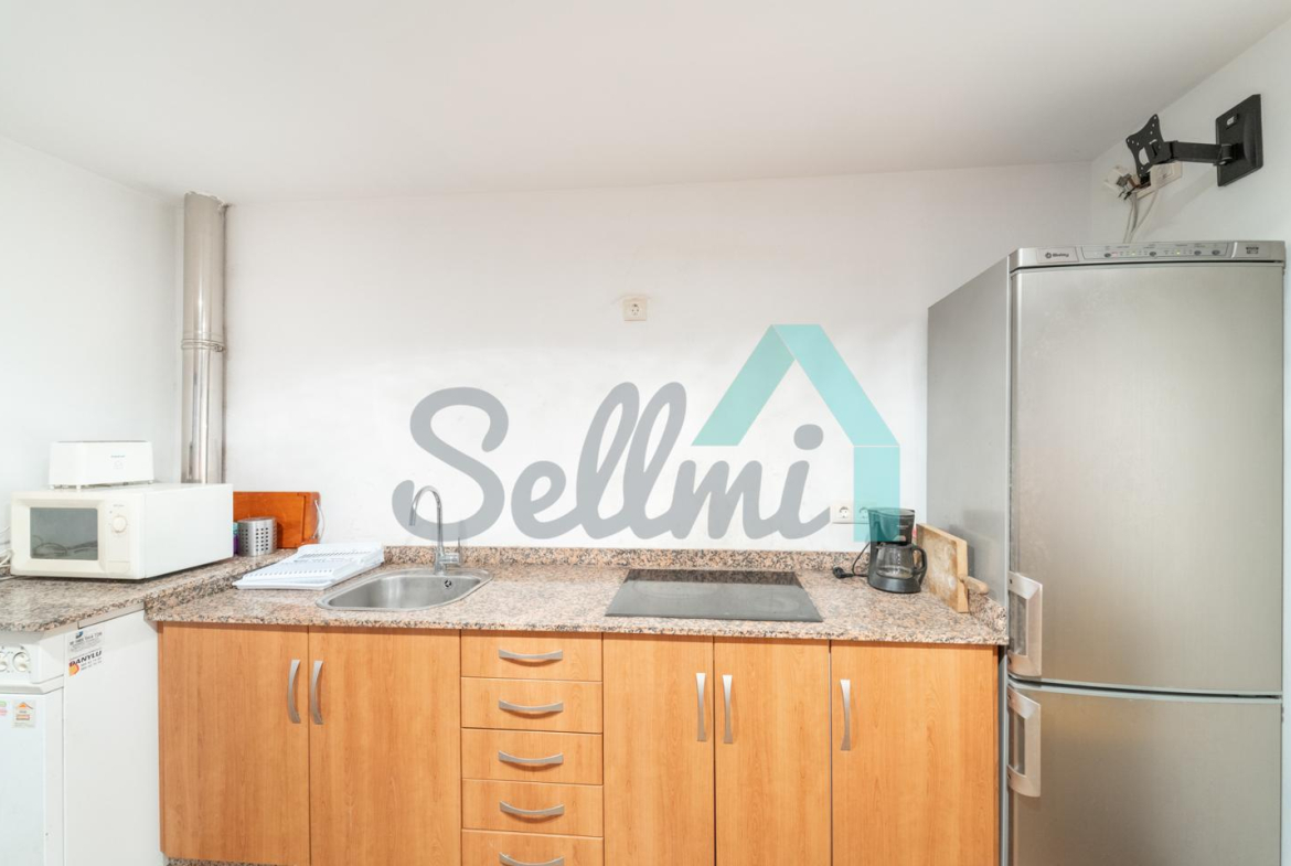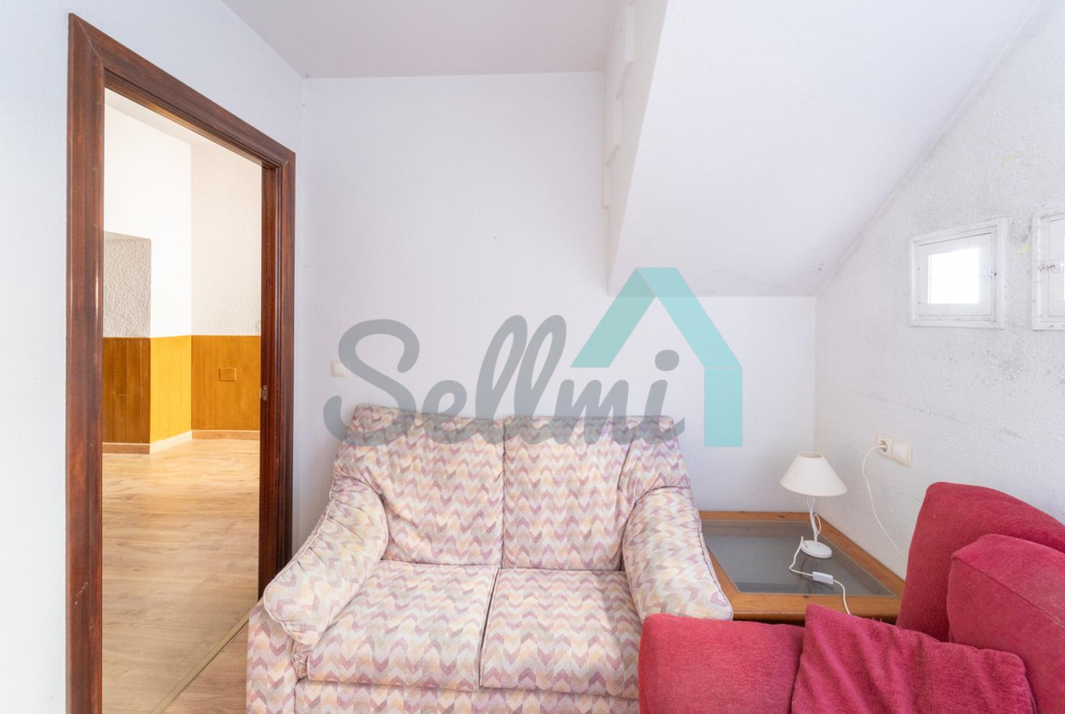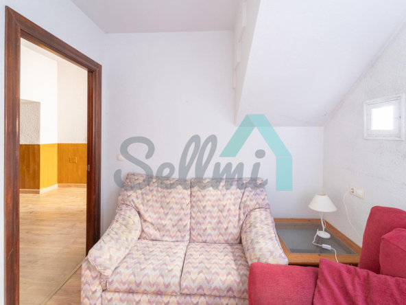 Planta alta: salón, cocina amueblada, dos habitaciones y un baño completo.