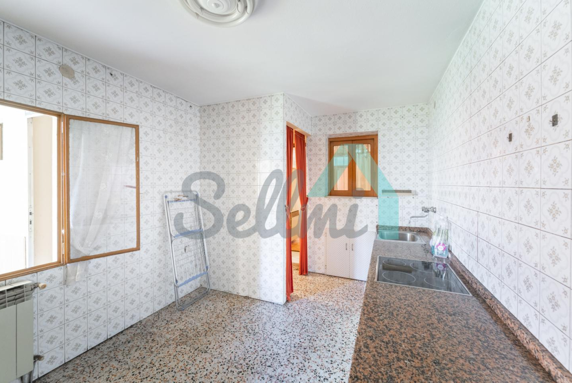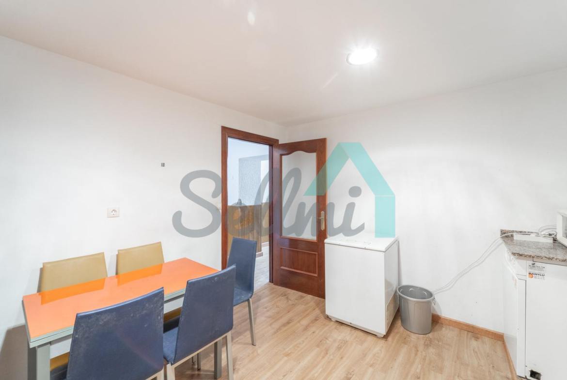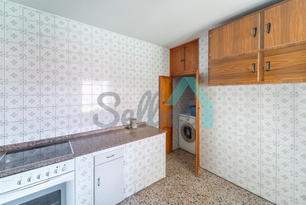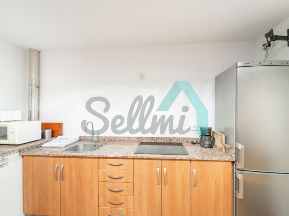 Planta alta: salón, cocina amueblada, dos habitaciones y un baño completo.