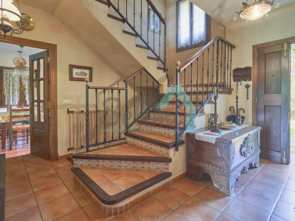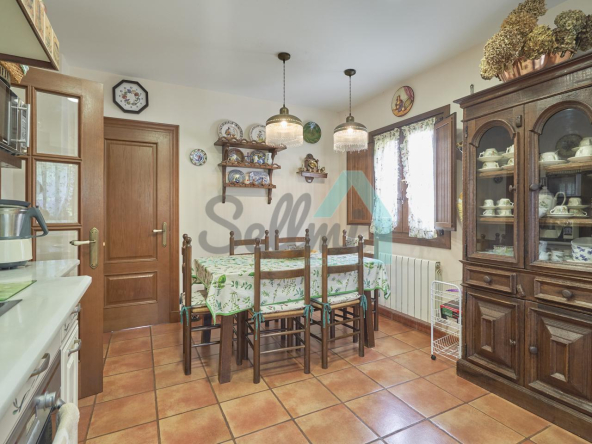 Cuenta con hall de entrada, tres luminosos salones (uno de ellos con un espectacular mirador y otro con chimenea), cocina amueblada y totalmente equipada, siete habitaciones (tres de ellas en suite), cinco baños, bodega, despensa, cuarto de lavadora, trastero y cuarto independiente para la calefacción.